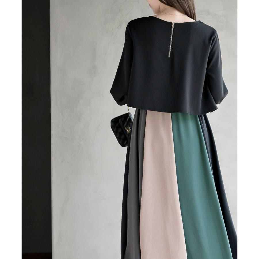カラフルパッチワークドッキングワンピース