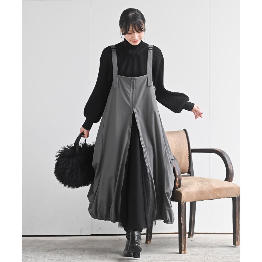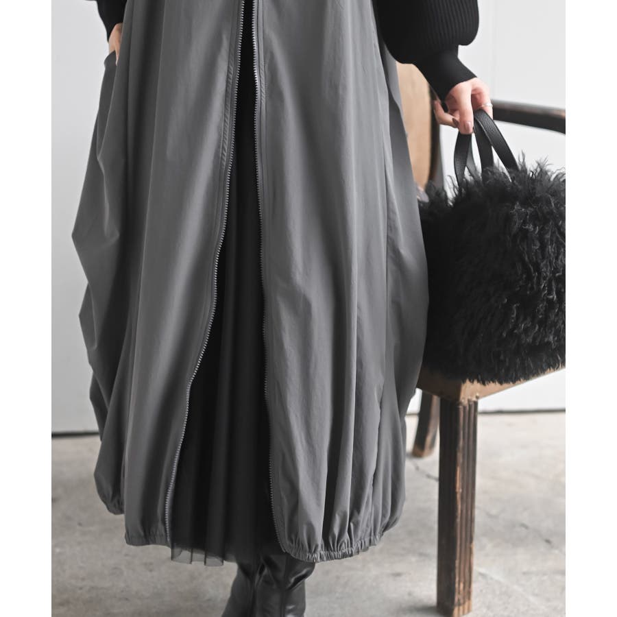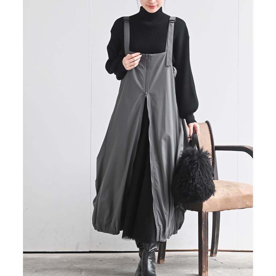 フロントZIPナイロンコクーンジャンスカ