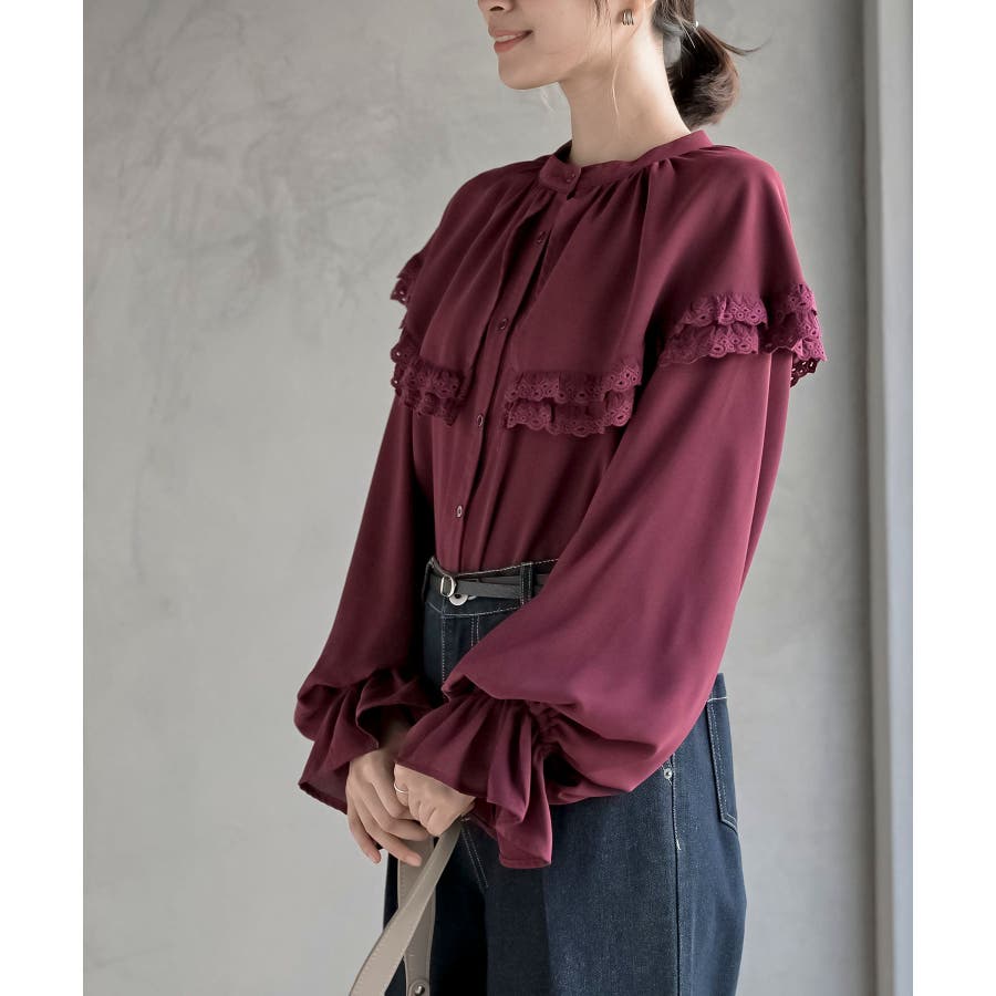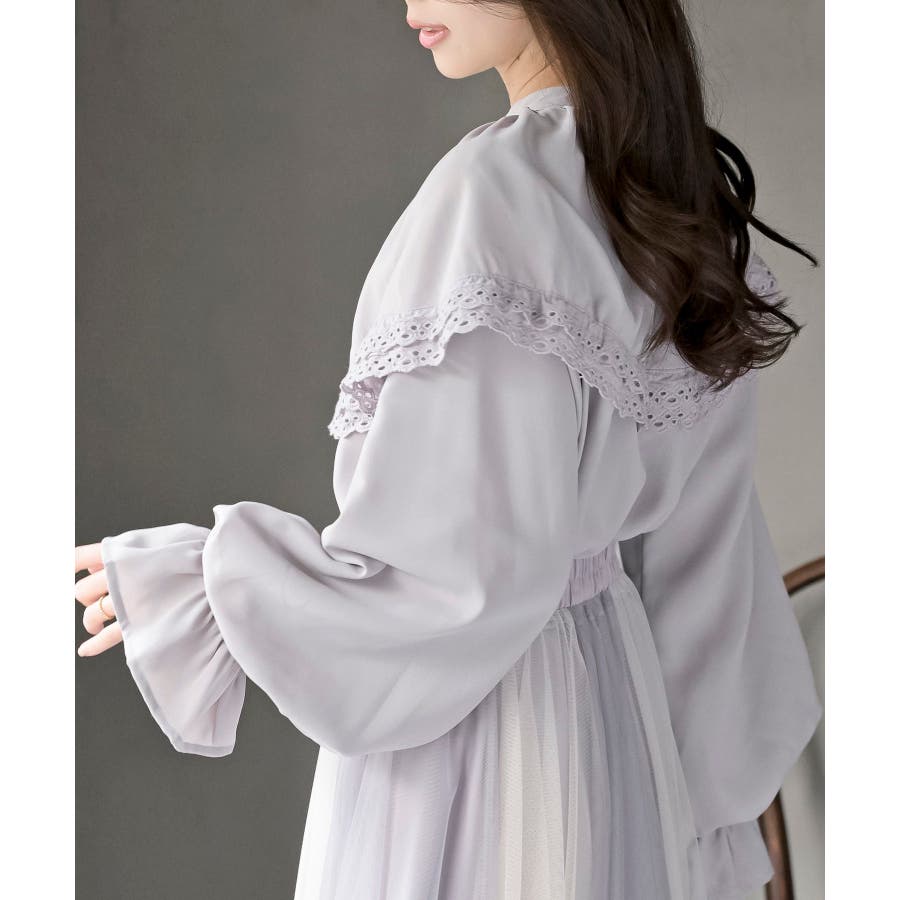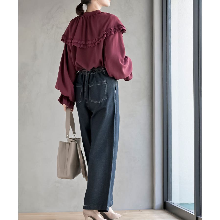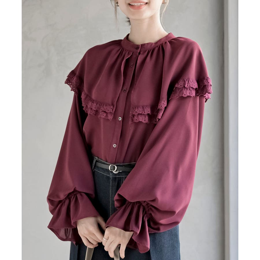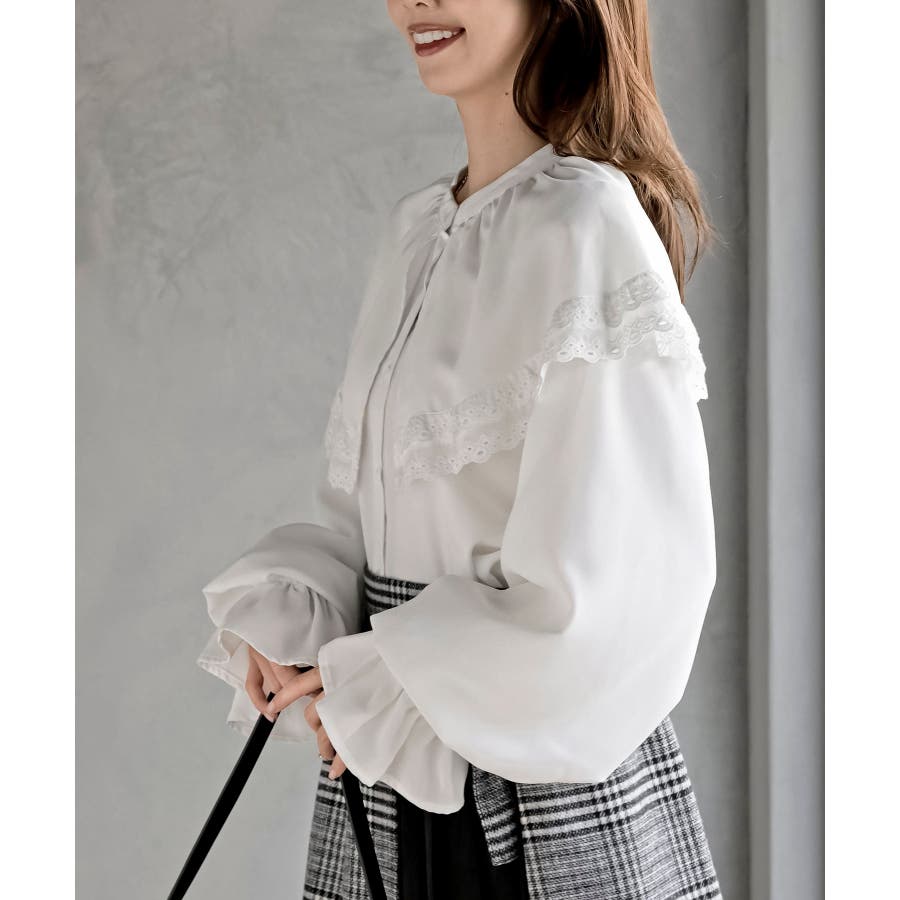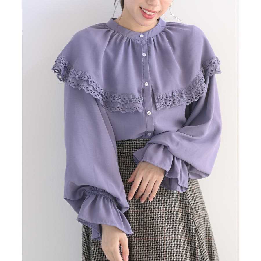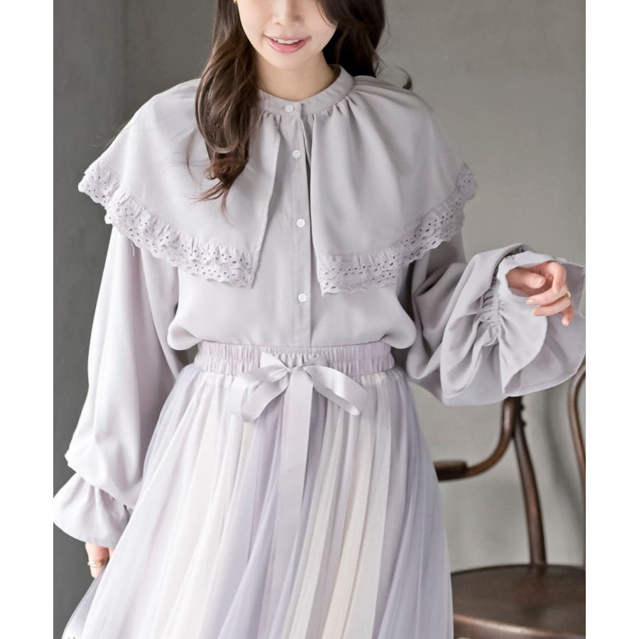大きな襟とボリュームのある袖が可愛く、着るだけで華やか!