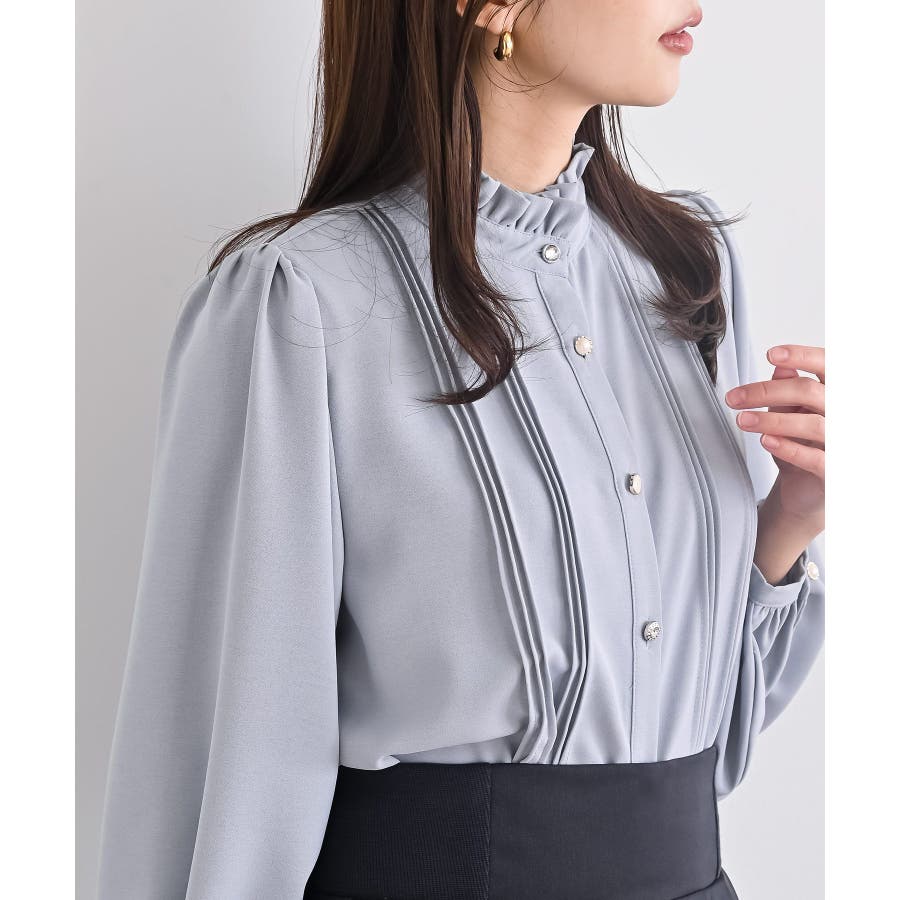 多釦ハイネックブラウス