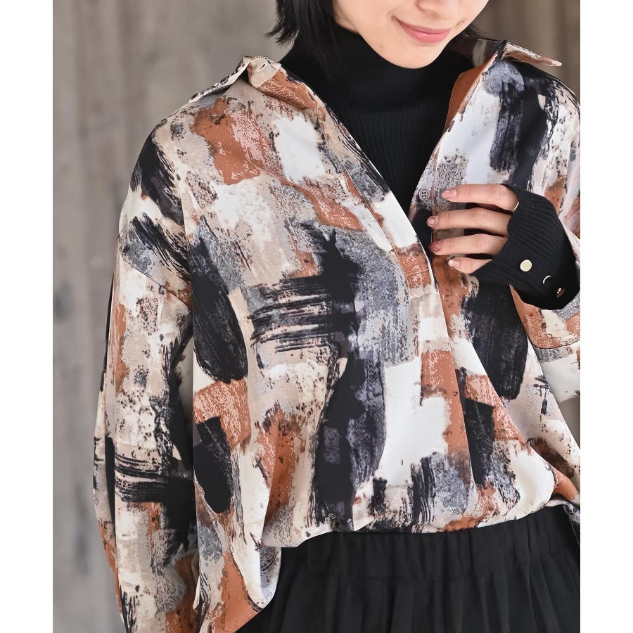 アソートプリントタックブラウス