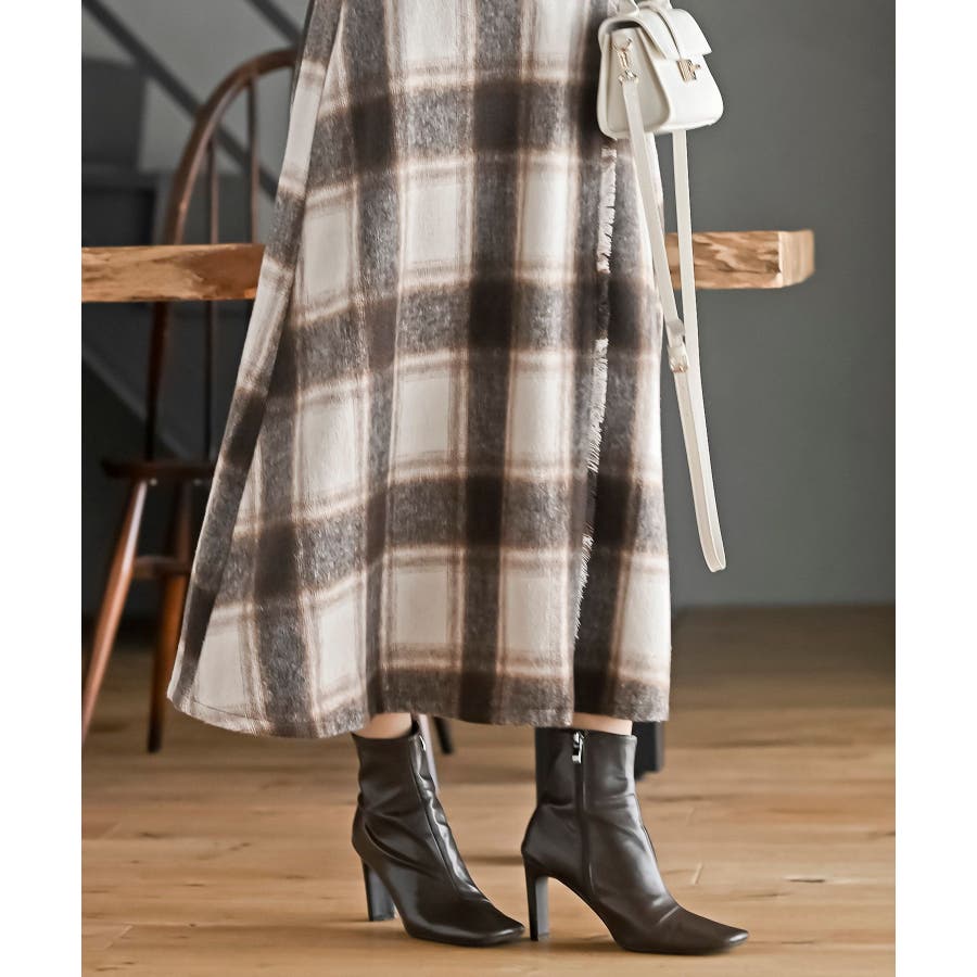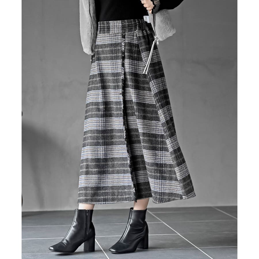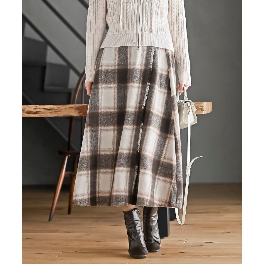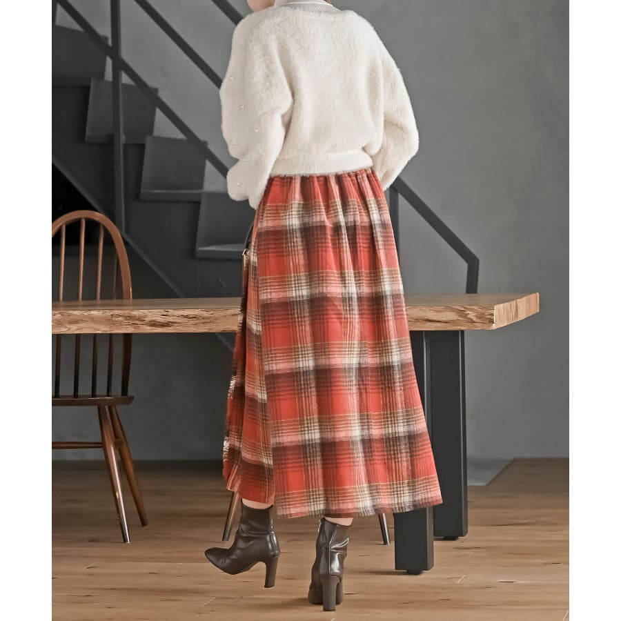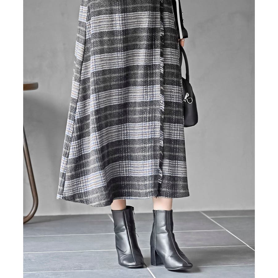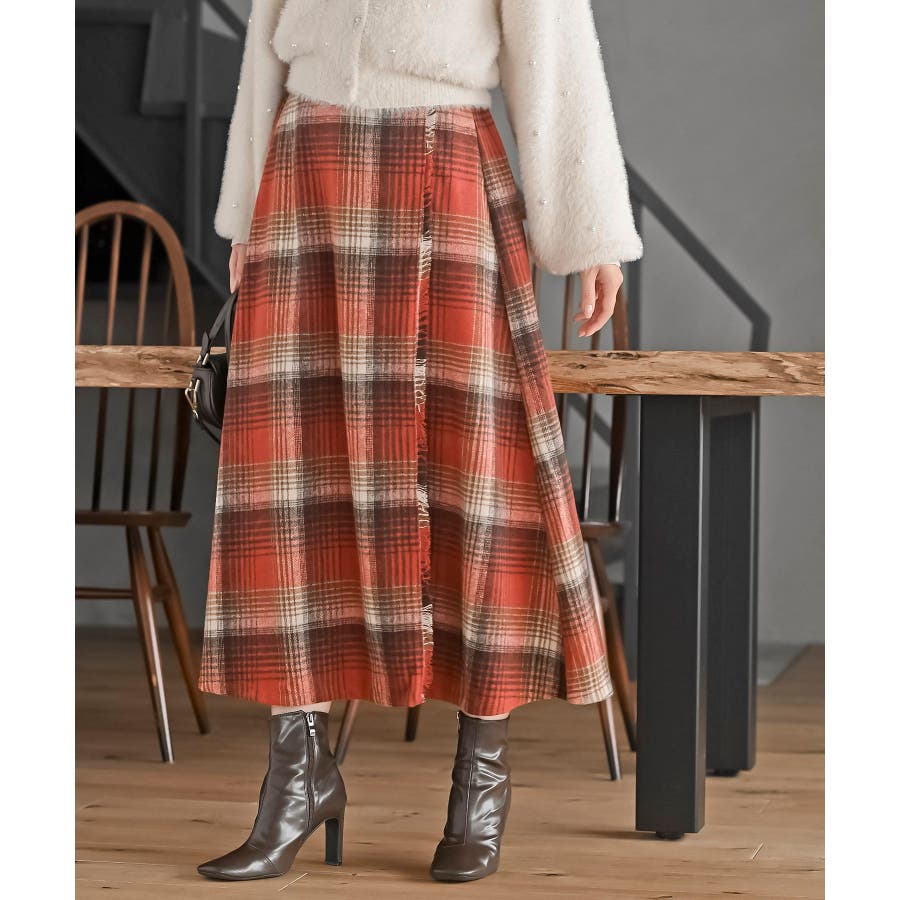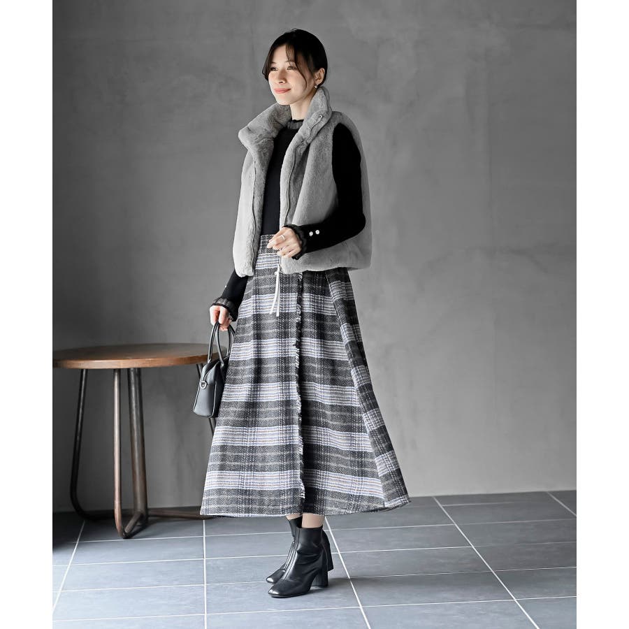 チェックツイードフリンジスカート