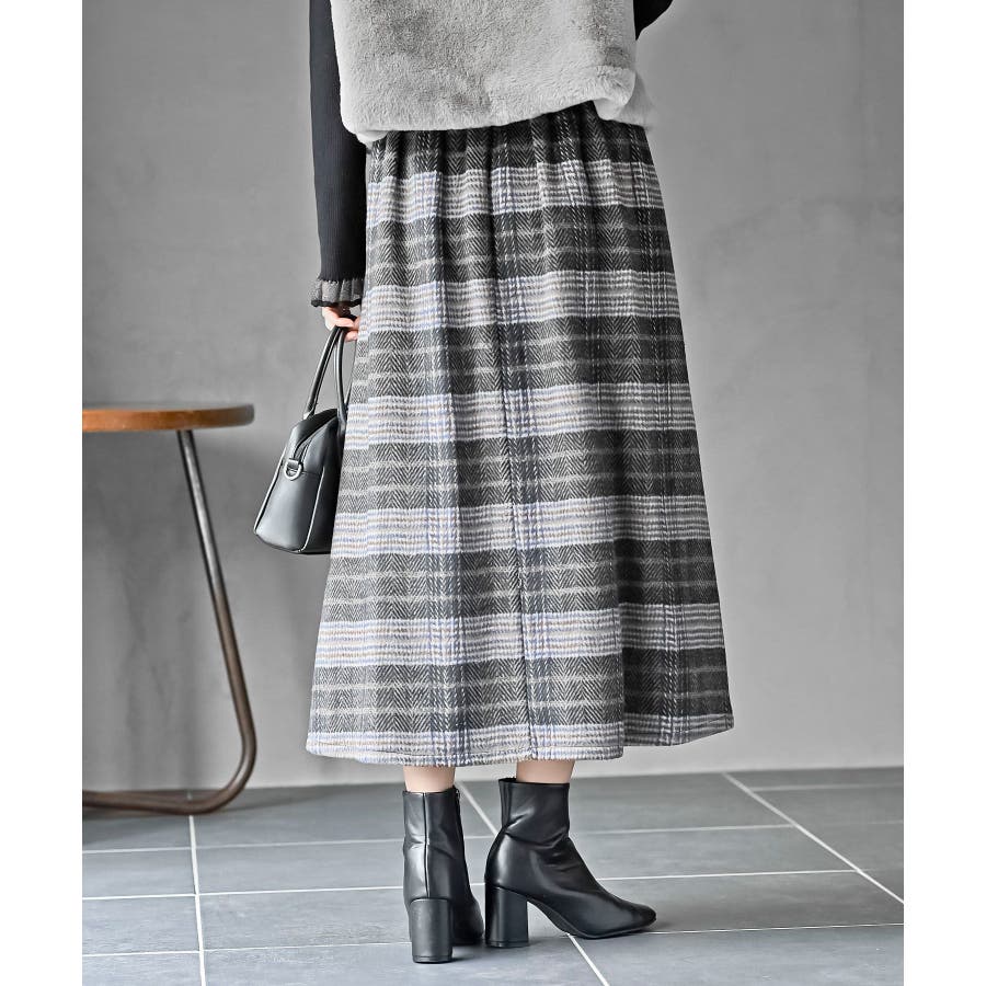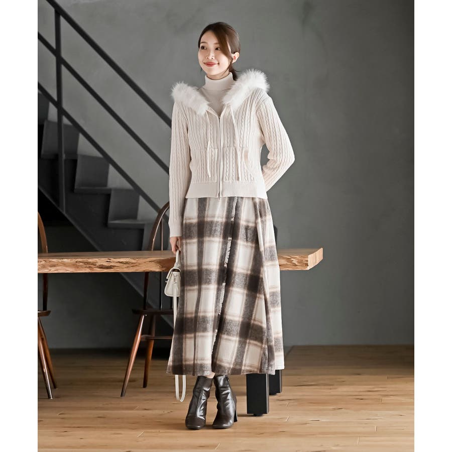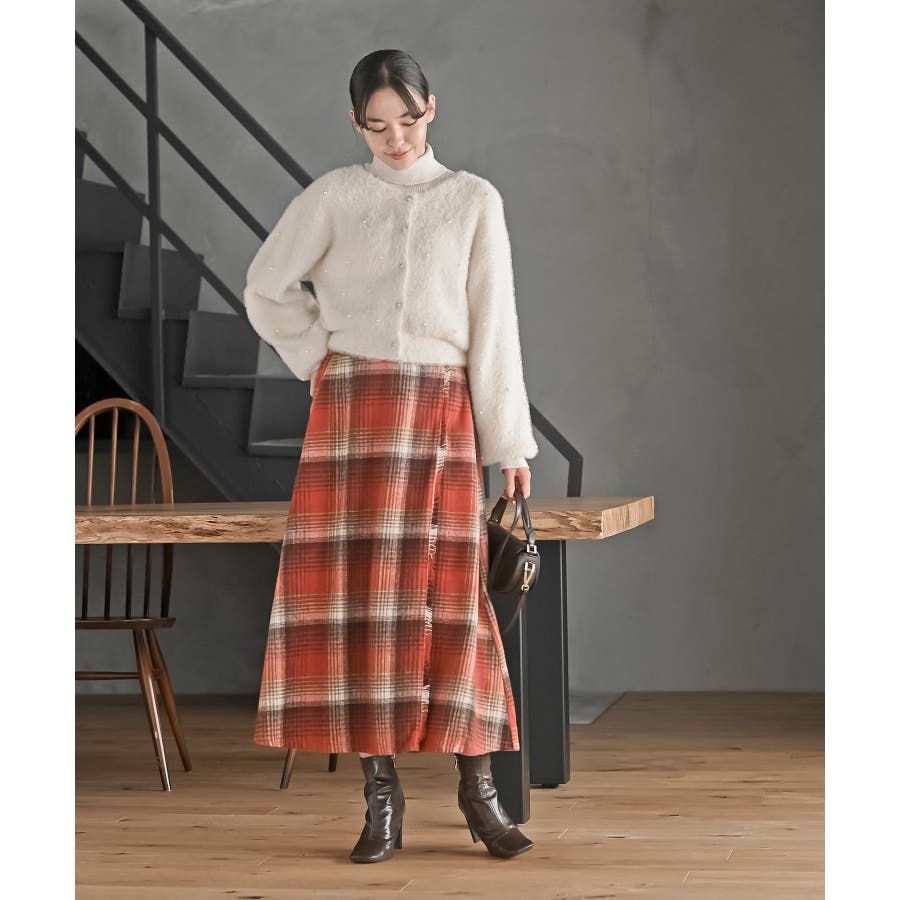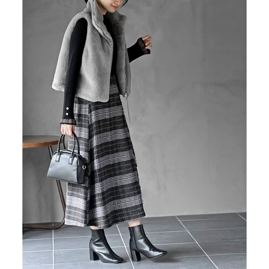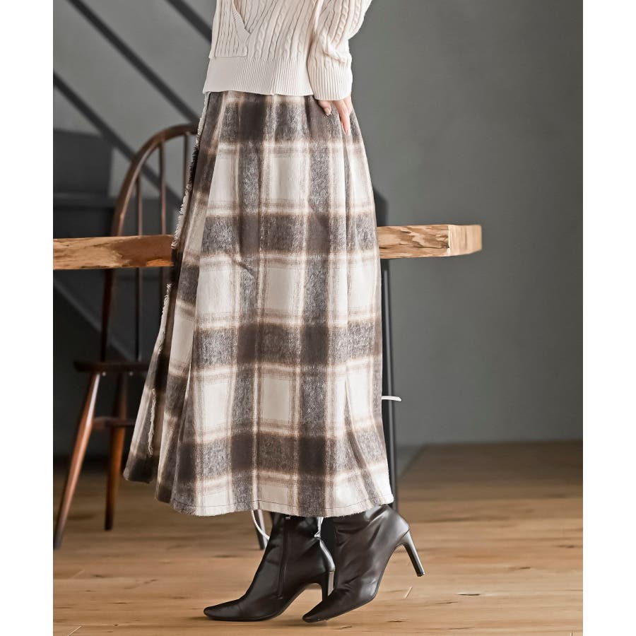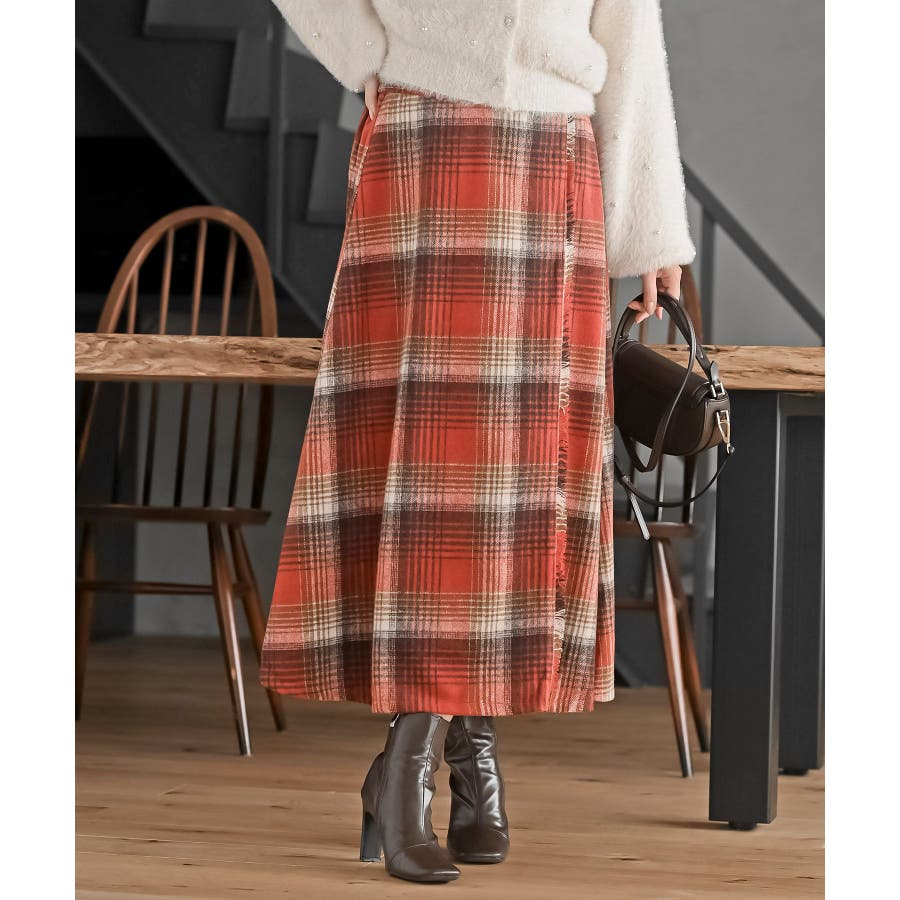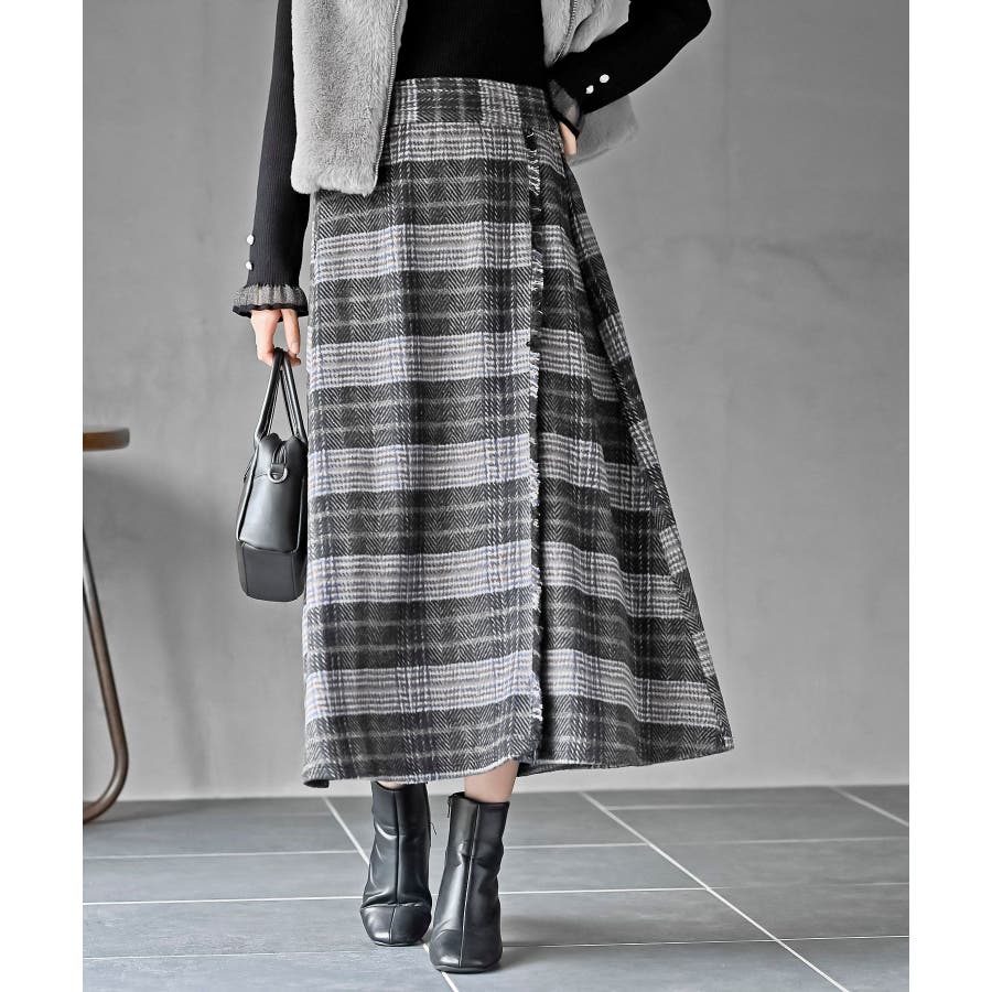 チェックツイードフリンジスカート