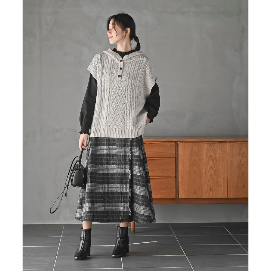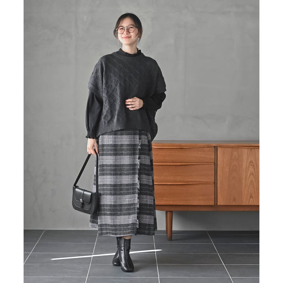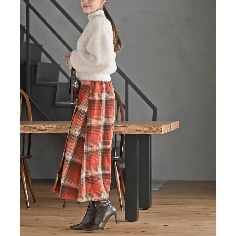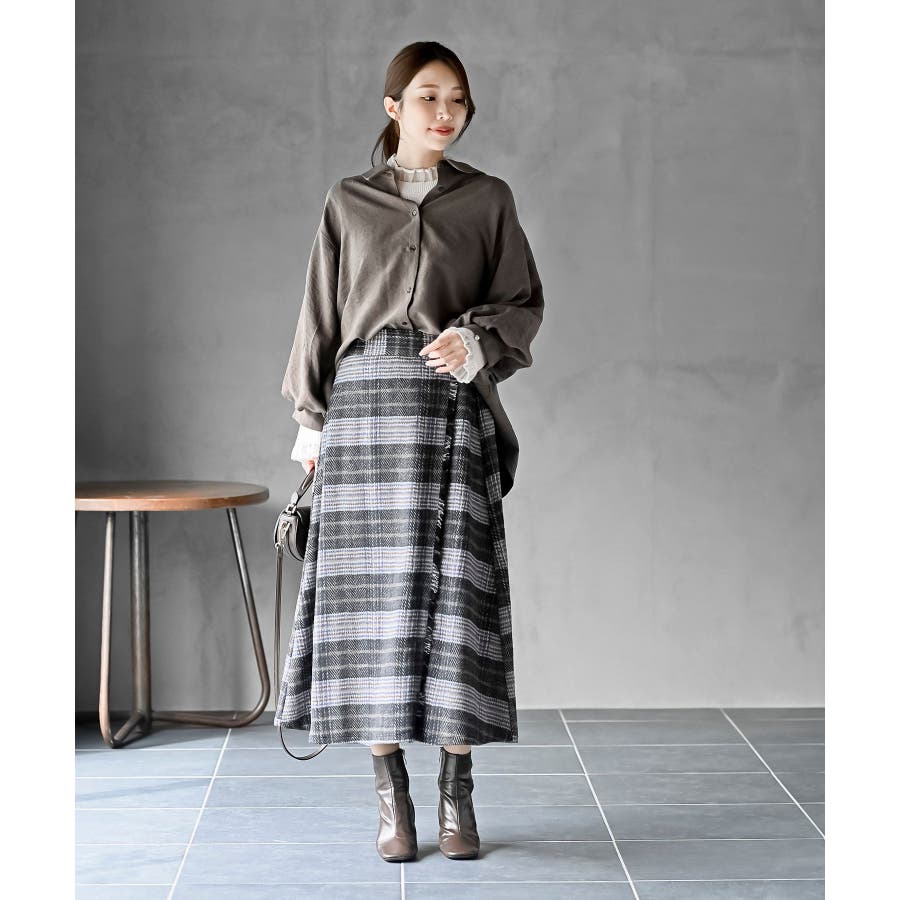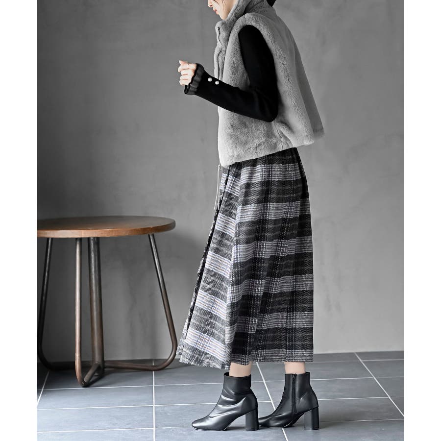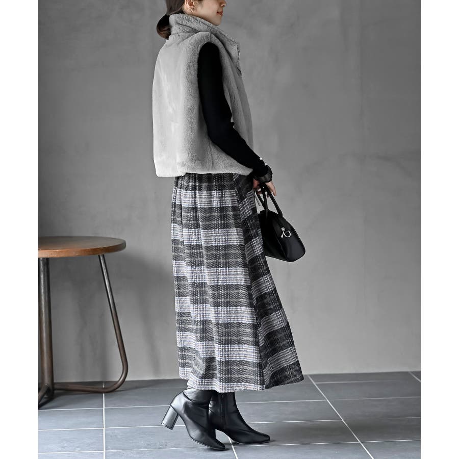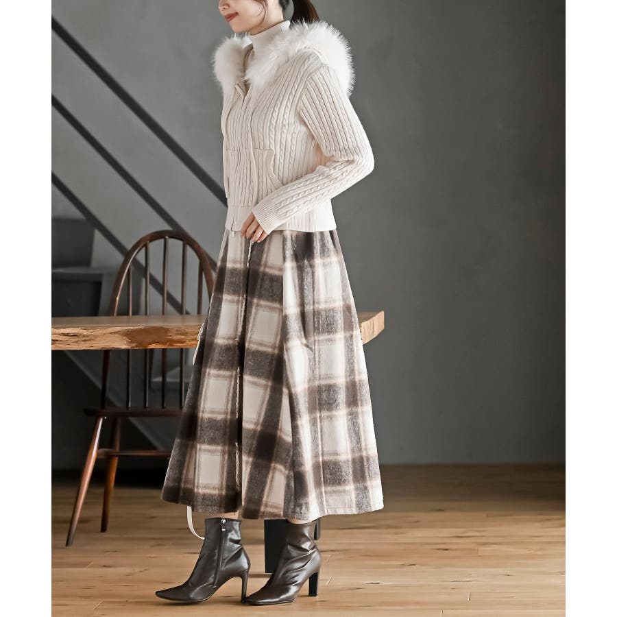 チェックツイードフリンジスカート