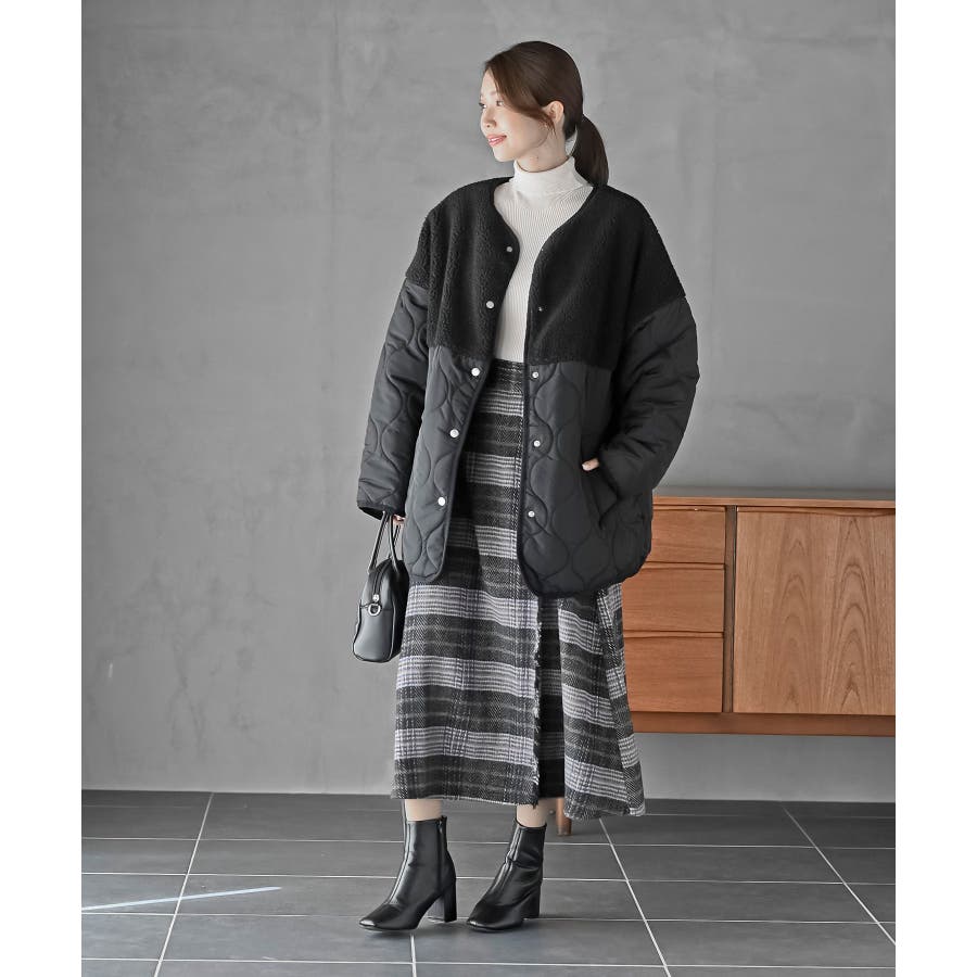素材 | 表地: ポリエステル53%, アクリル20%, 毛12%, レーヨン6%, ナイロン6%, 綿2%, ポリウレタン1%, 裏地: ポリエステル100% |