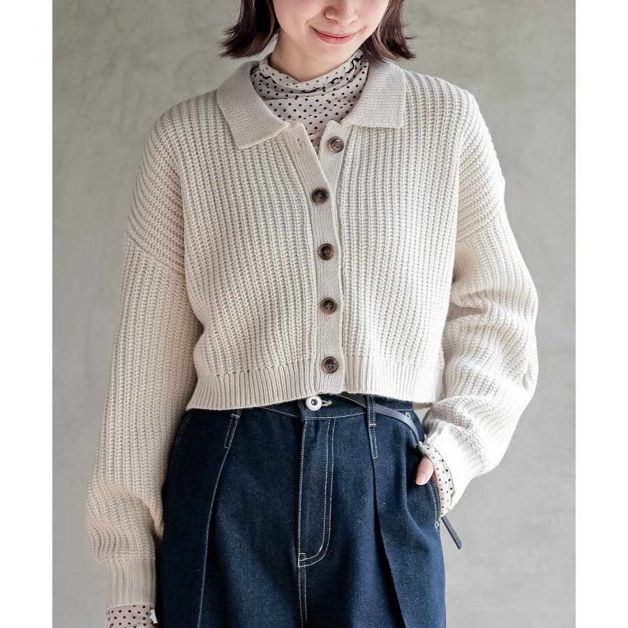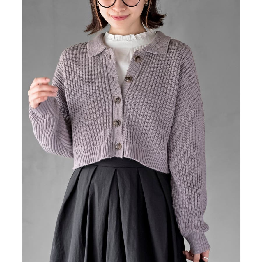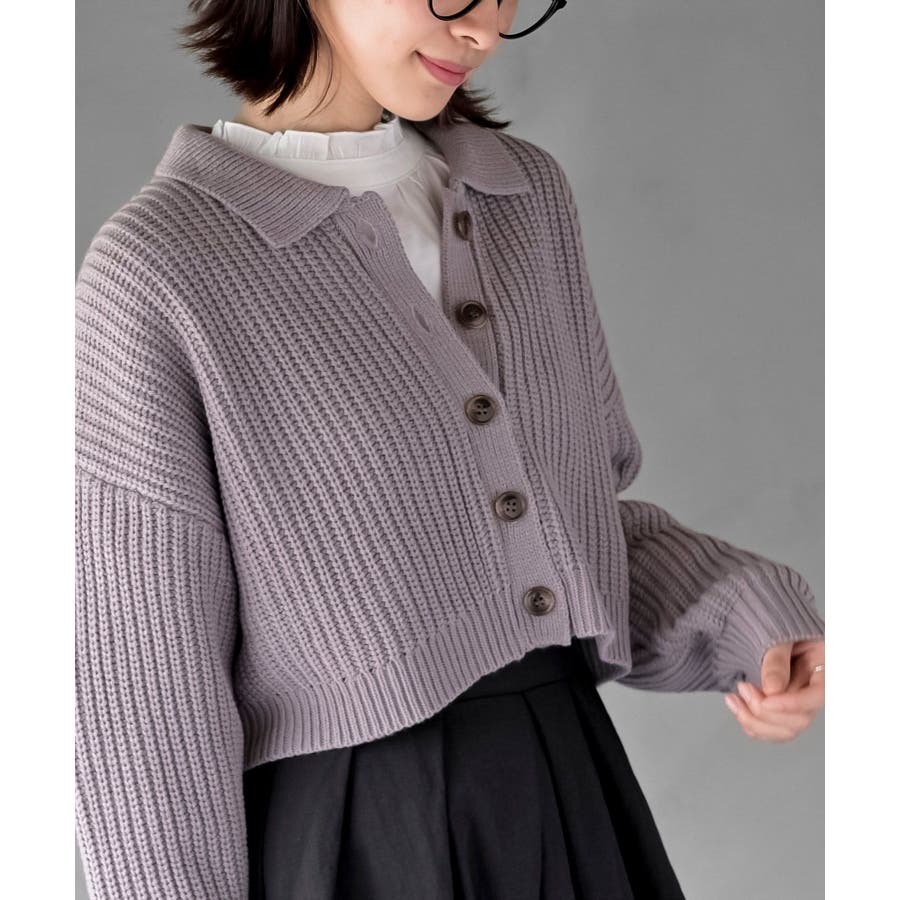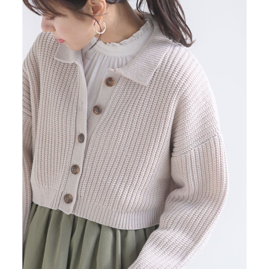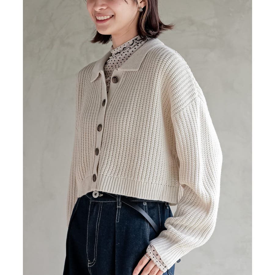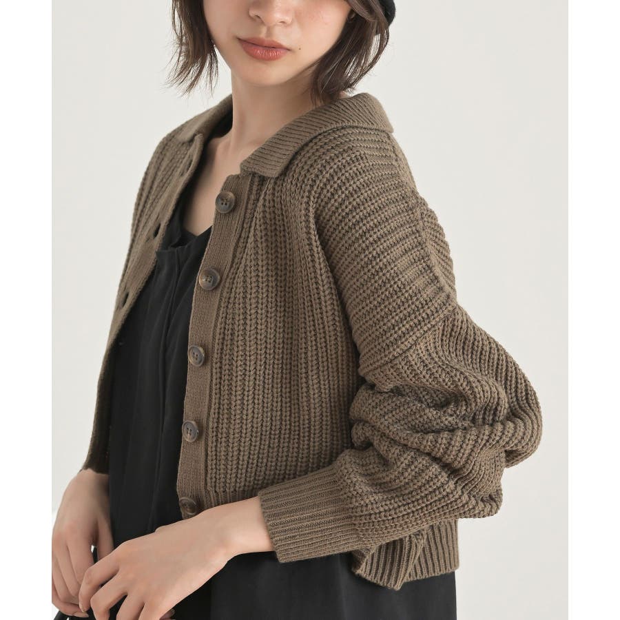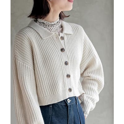 襟付きニットショートカーディガン