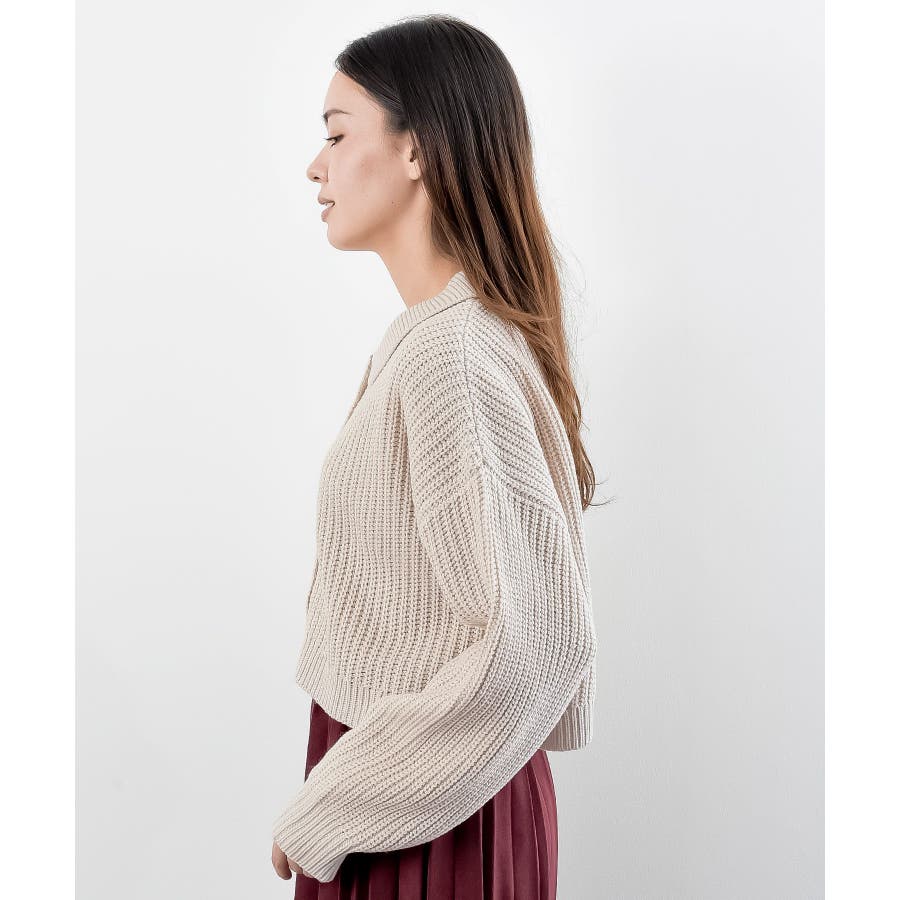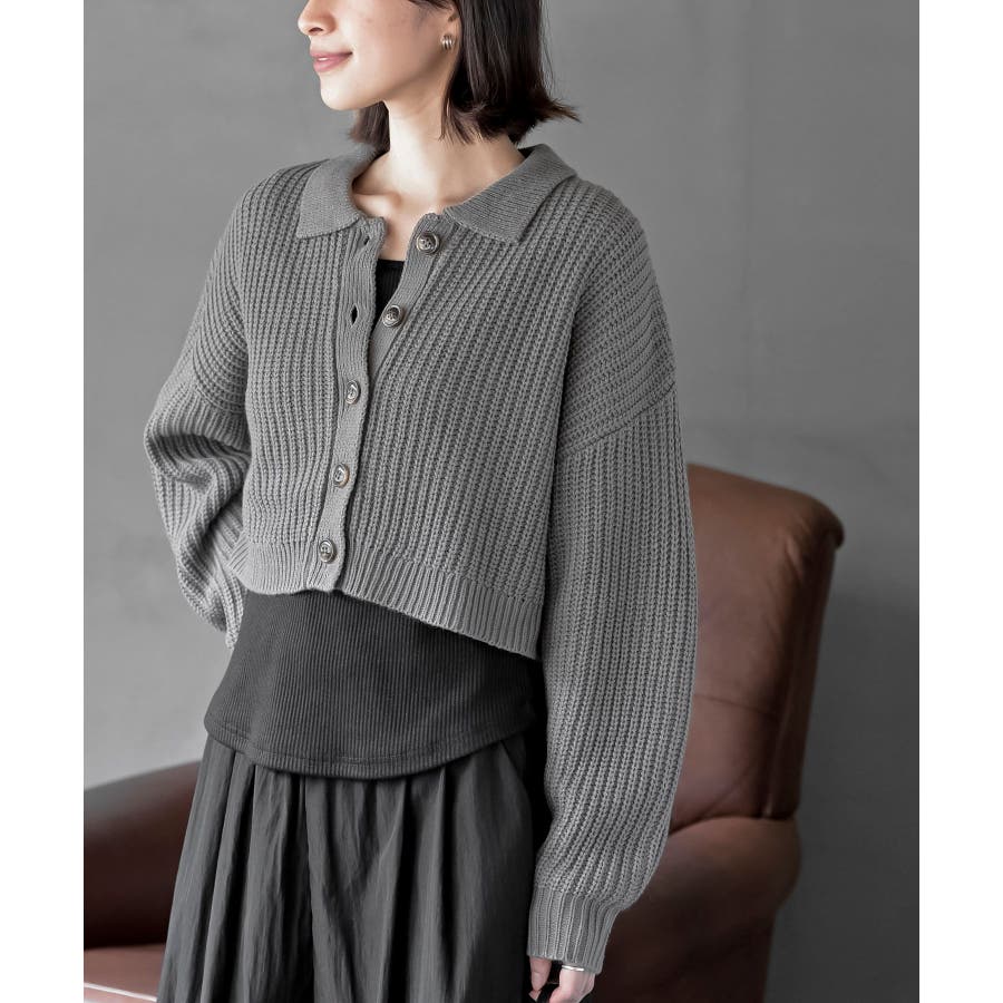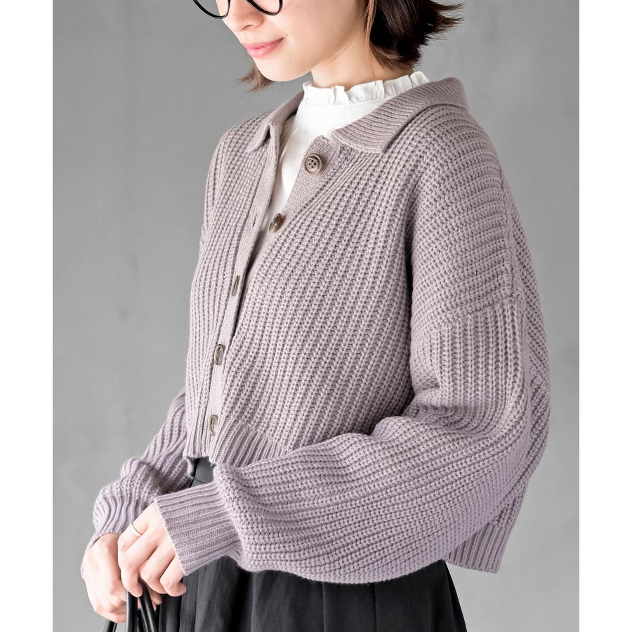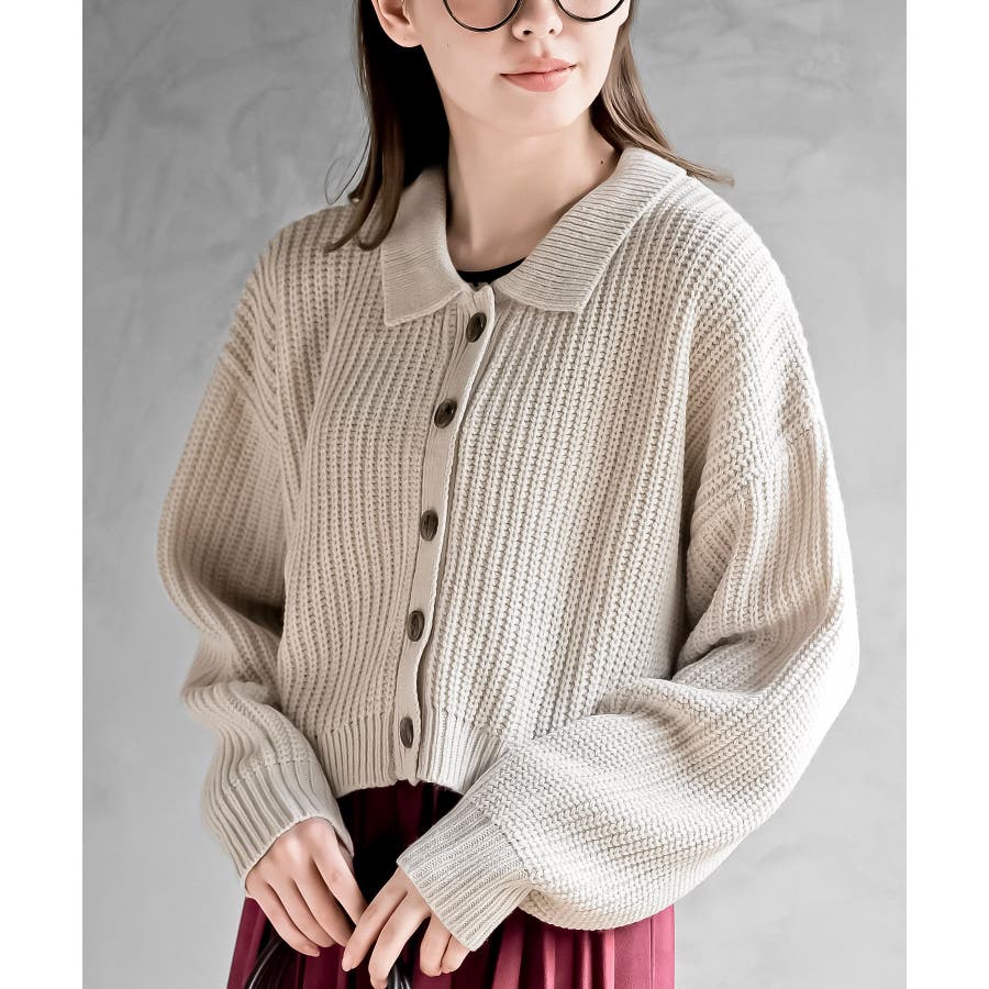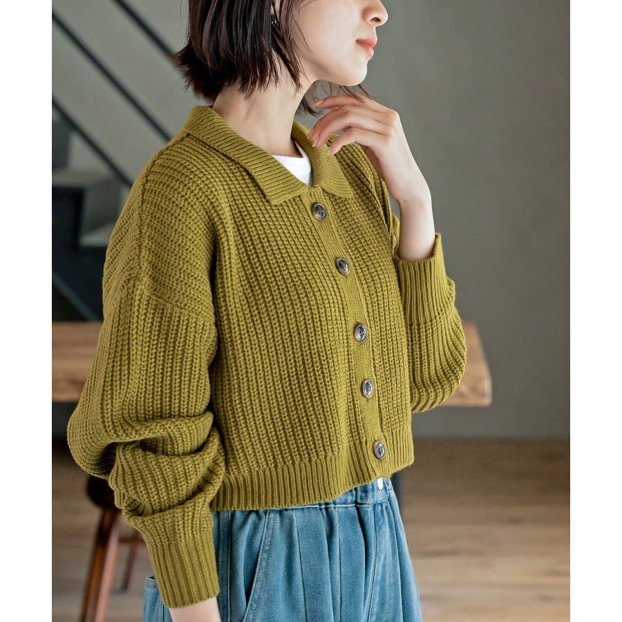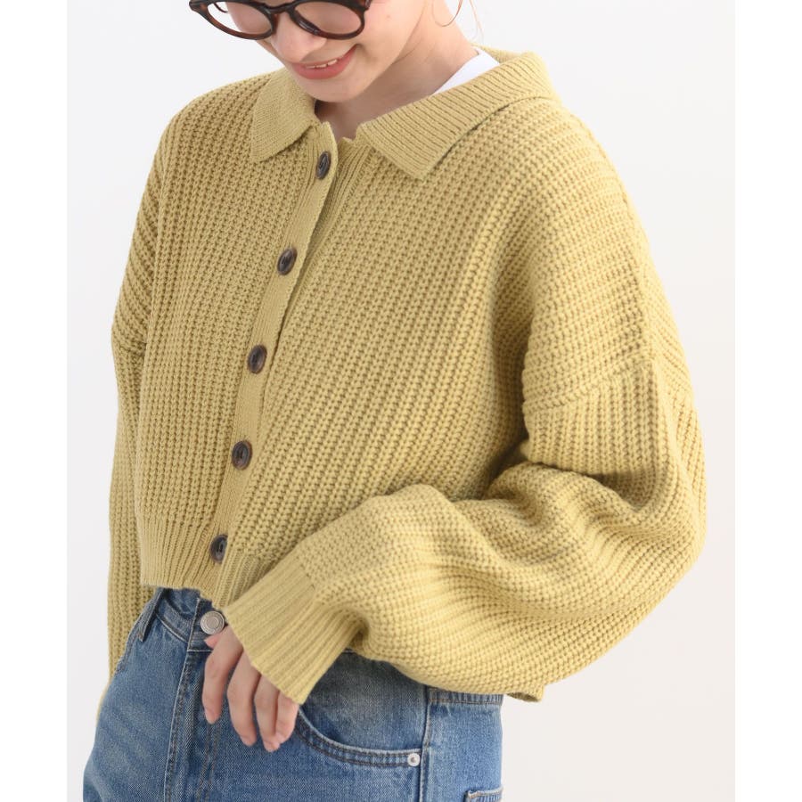 襟付きニットショートカーディガン