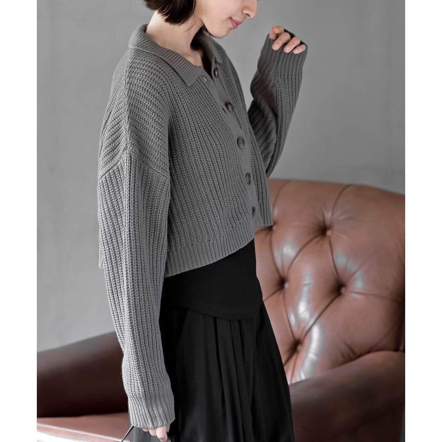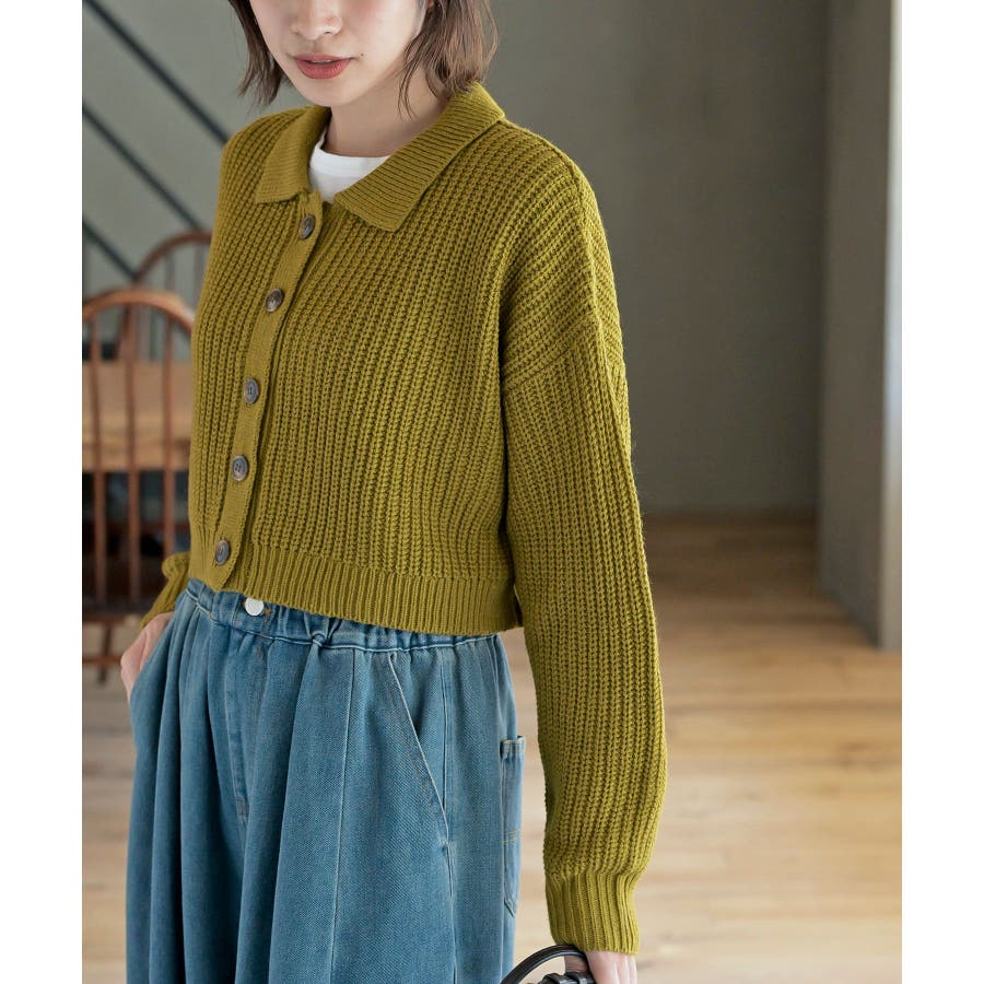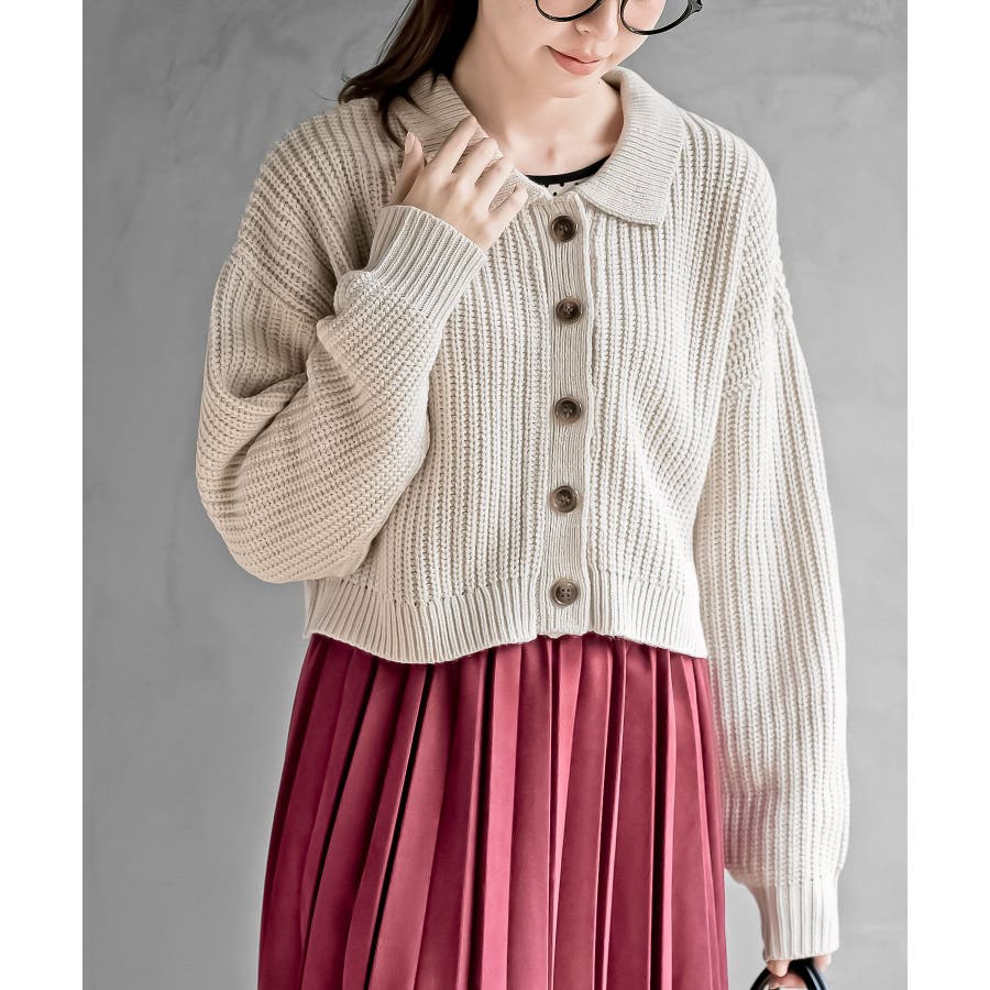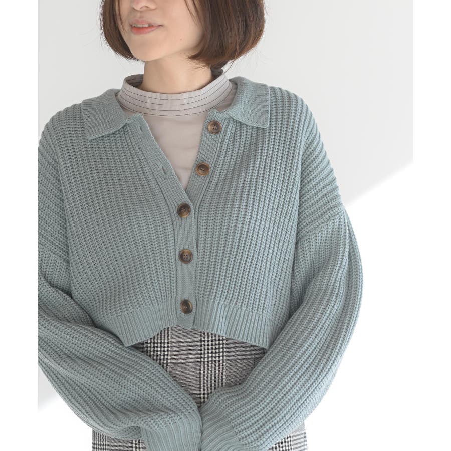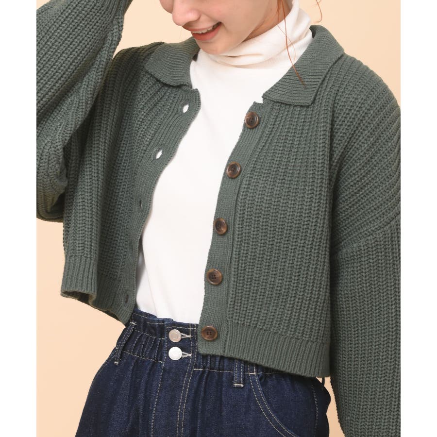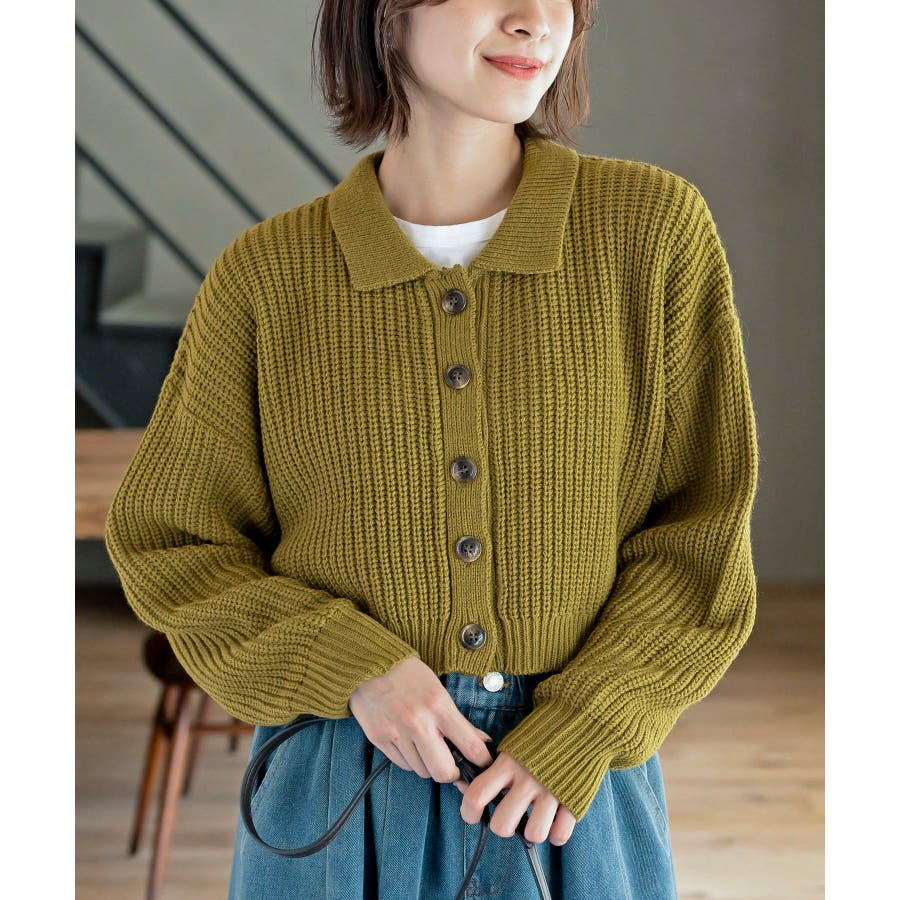 襟付きニットショートカーディガン
