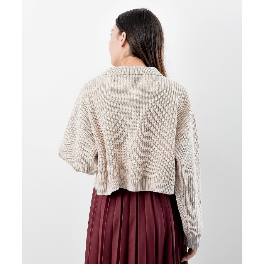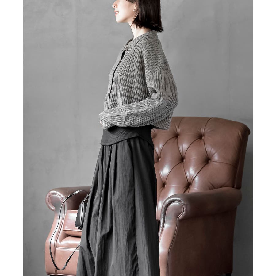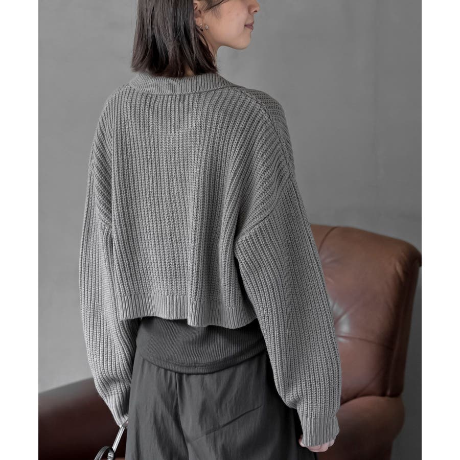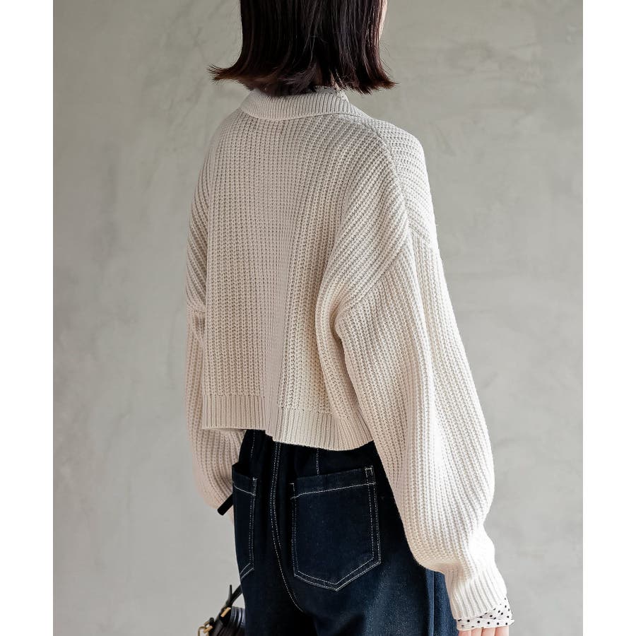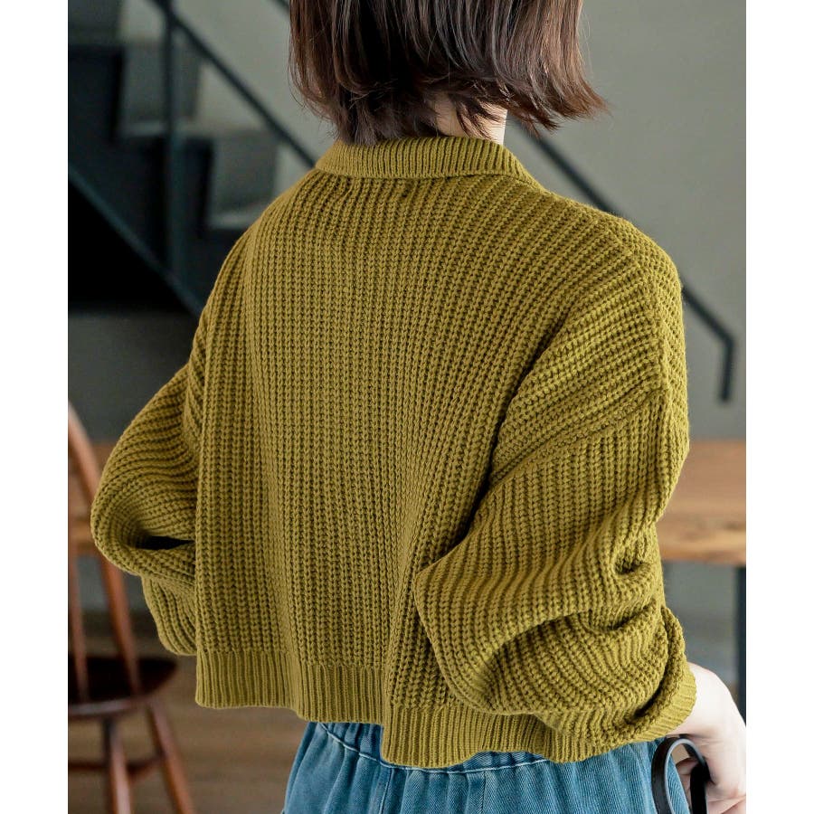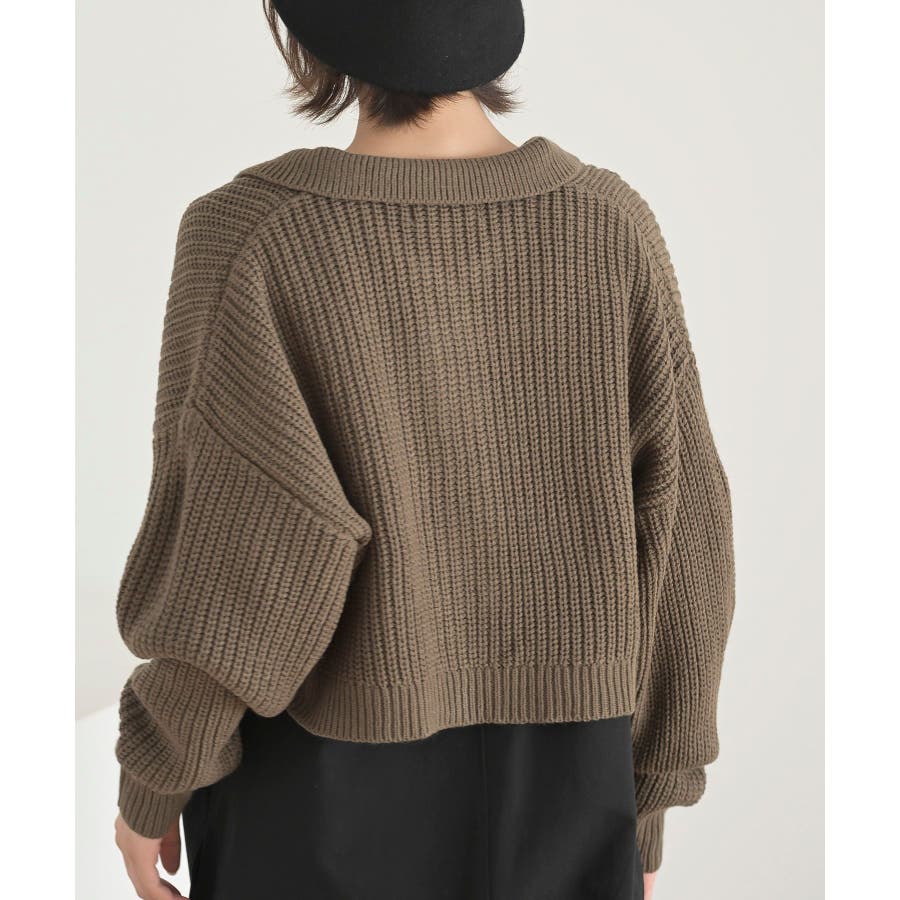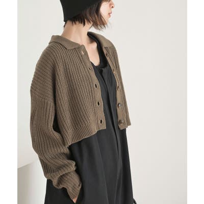 襟付きニットショートカーディガン