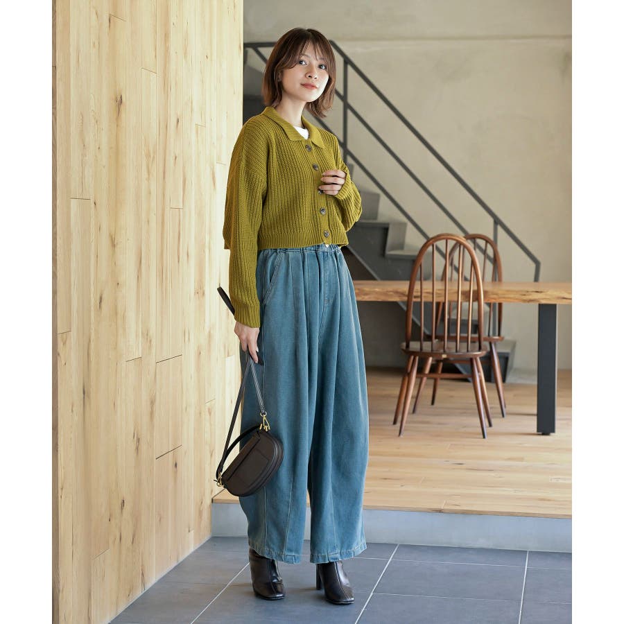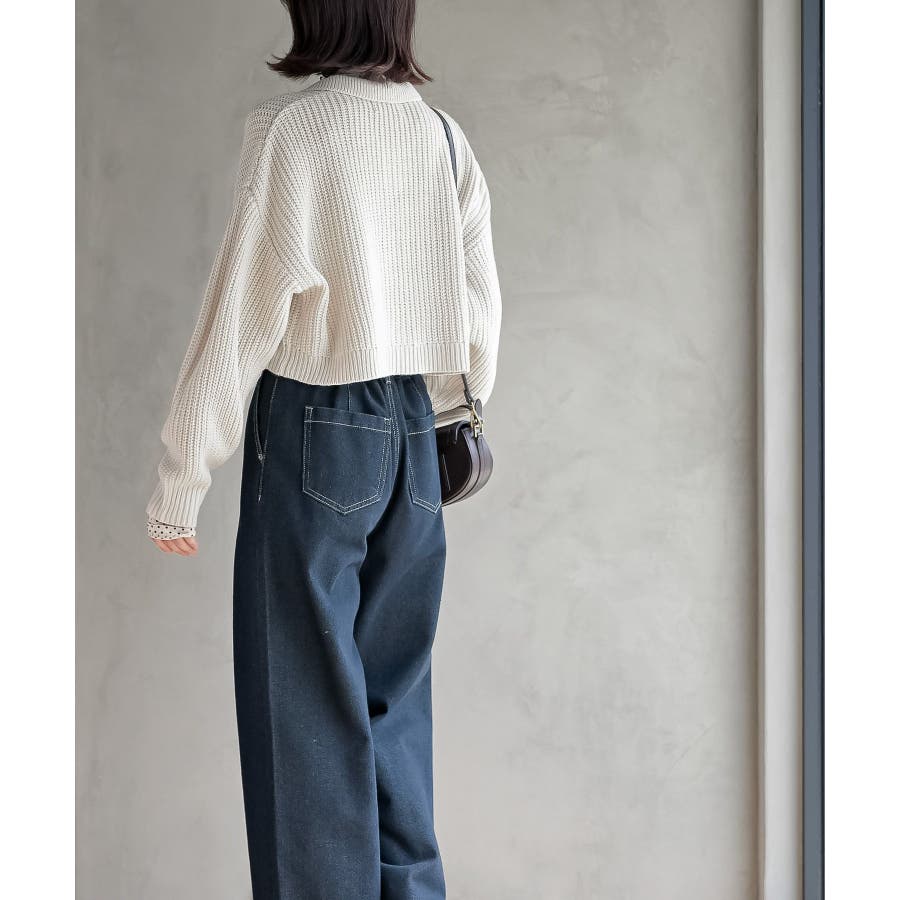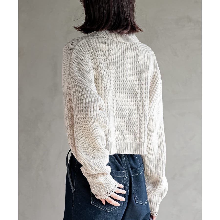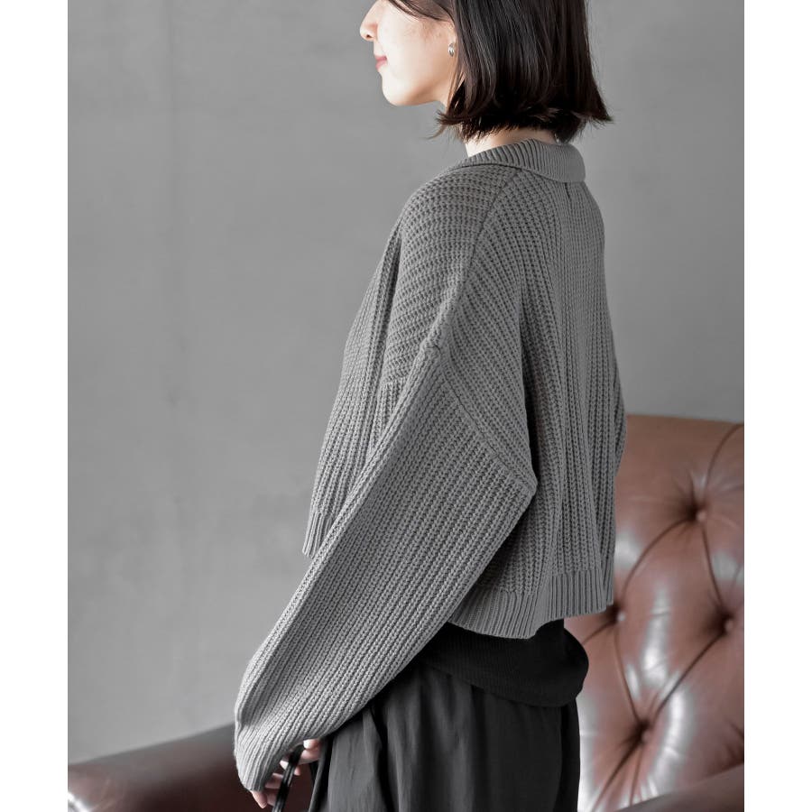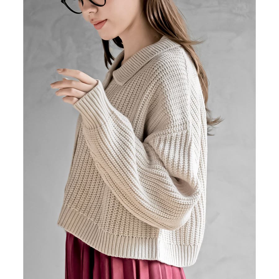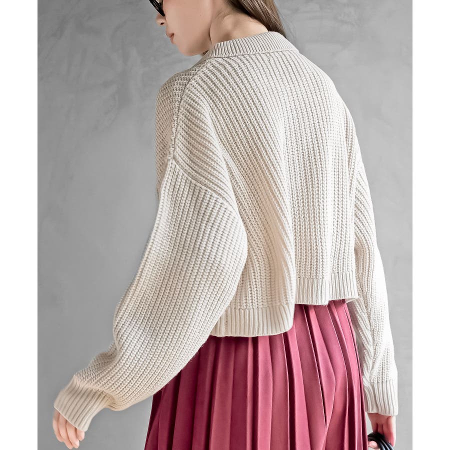 襟付きニットショートカーディガン