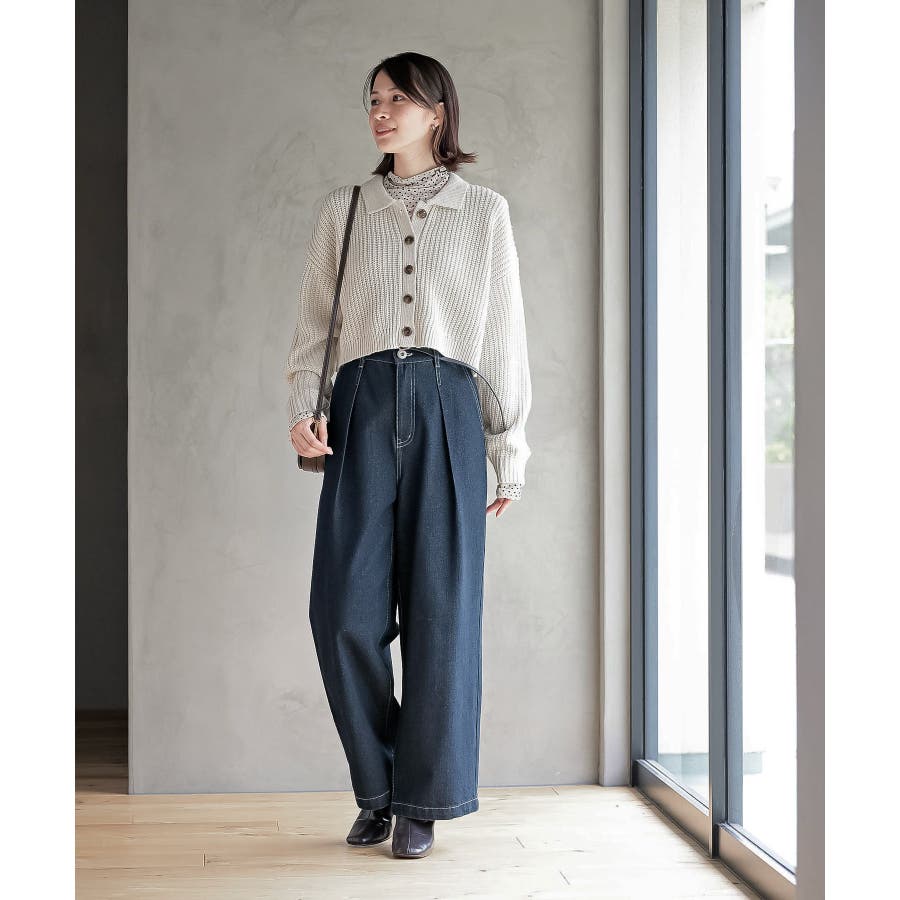 低身長なので、ウエストを見せられるよう1番上のボタンだけを留めて着られる、ショート丈のカーディガンをずっと探していました。本当に理想的な丈で、袖も中に分厚いインナーを着た状態でもゆとりがある一方でダブりすぎないデザインで感動しました。