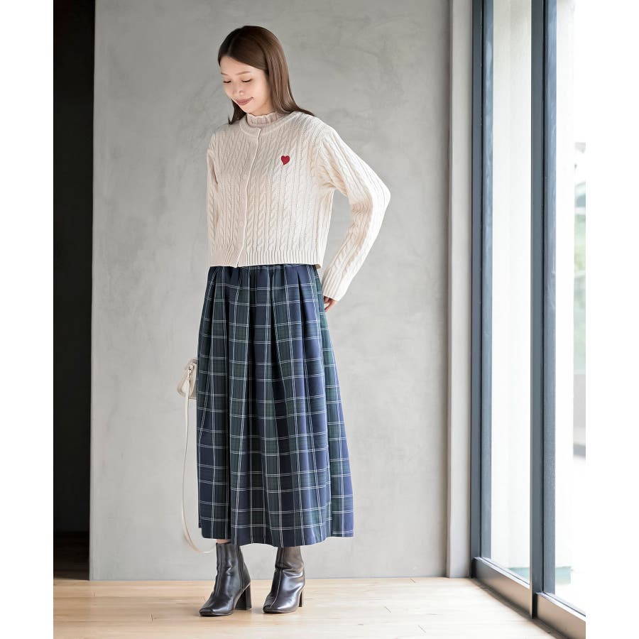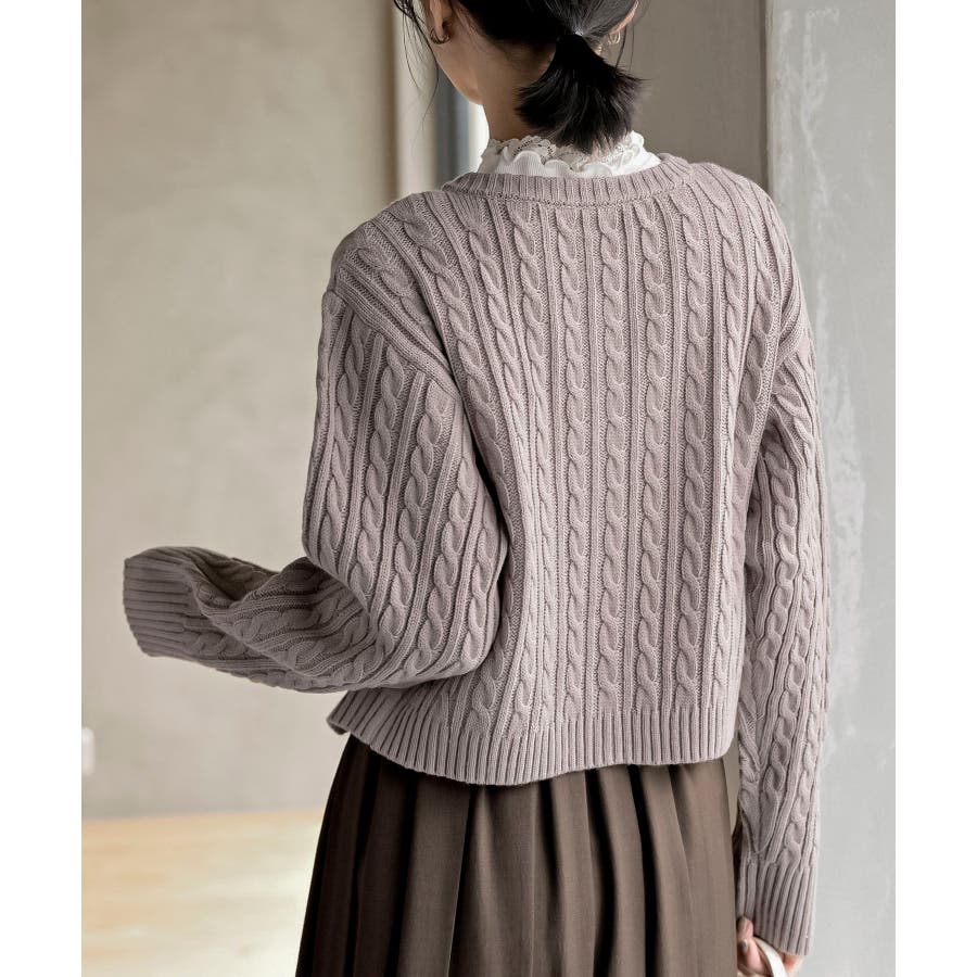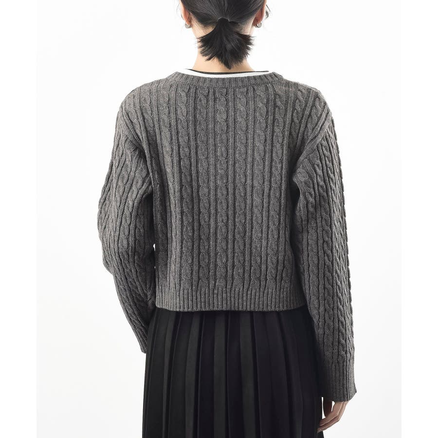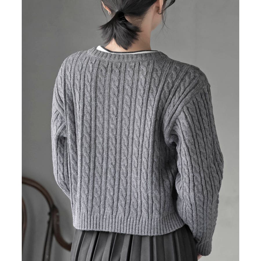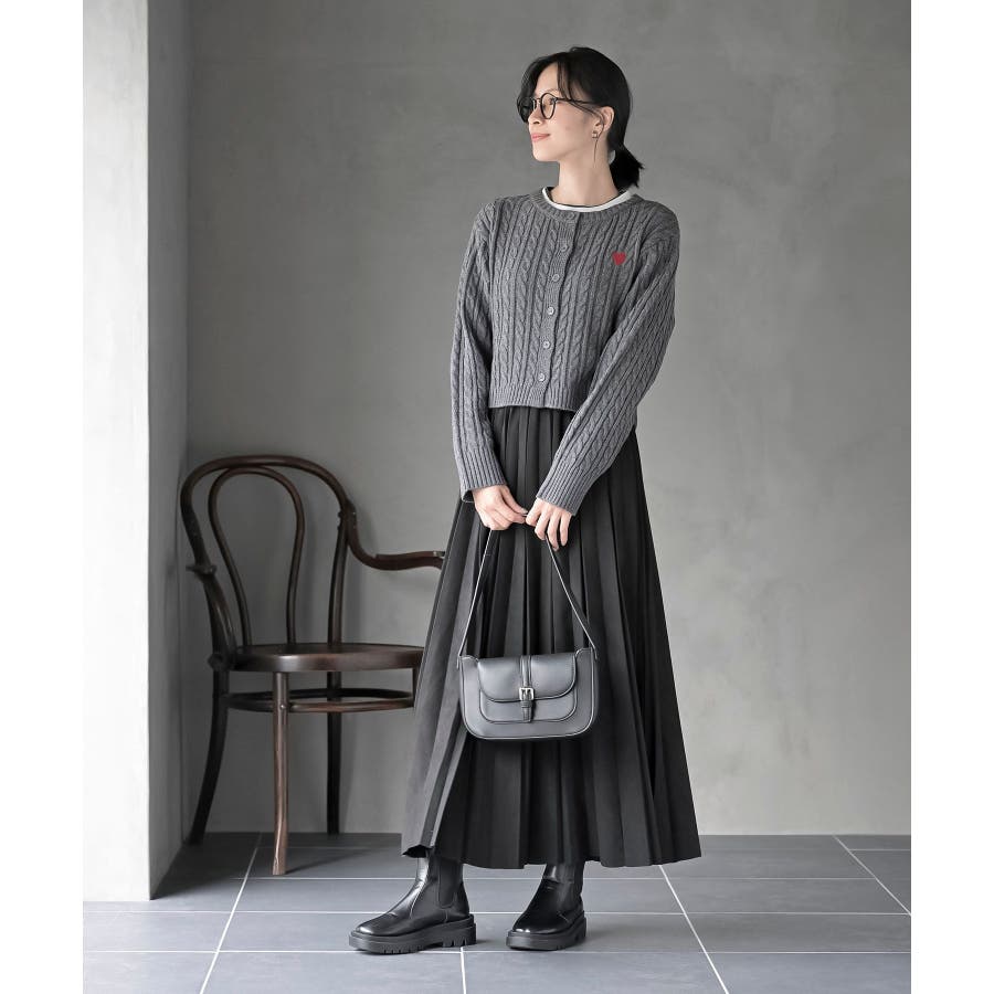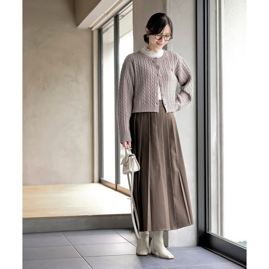 ハート刺繍ケーブルニットクルーネックカーディガン