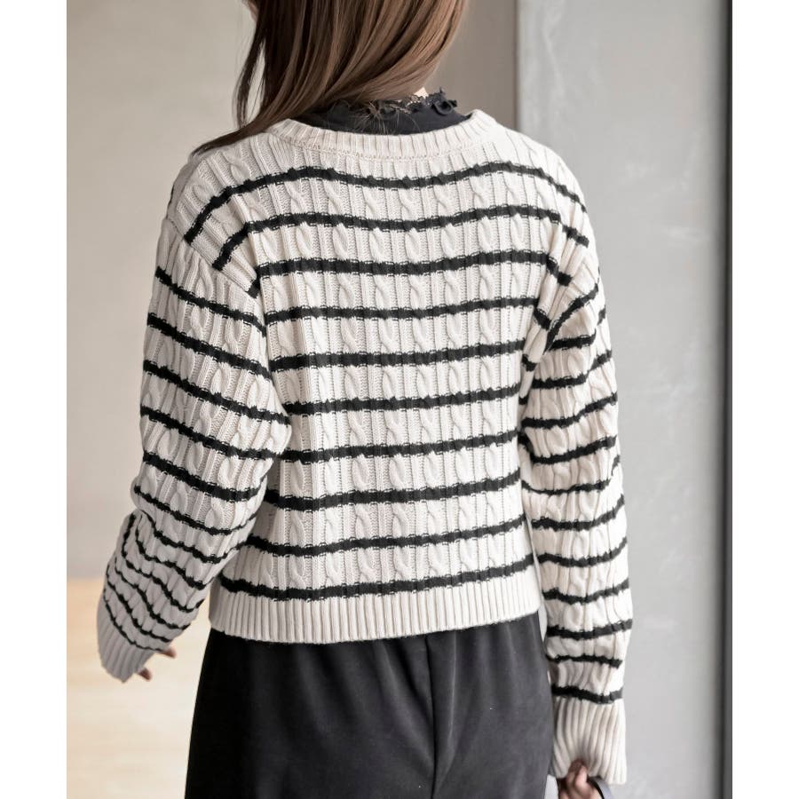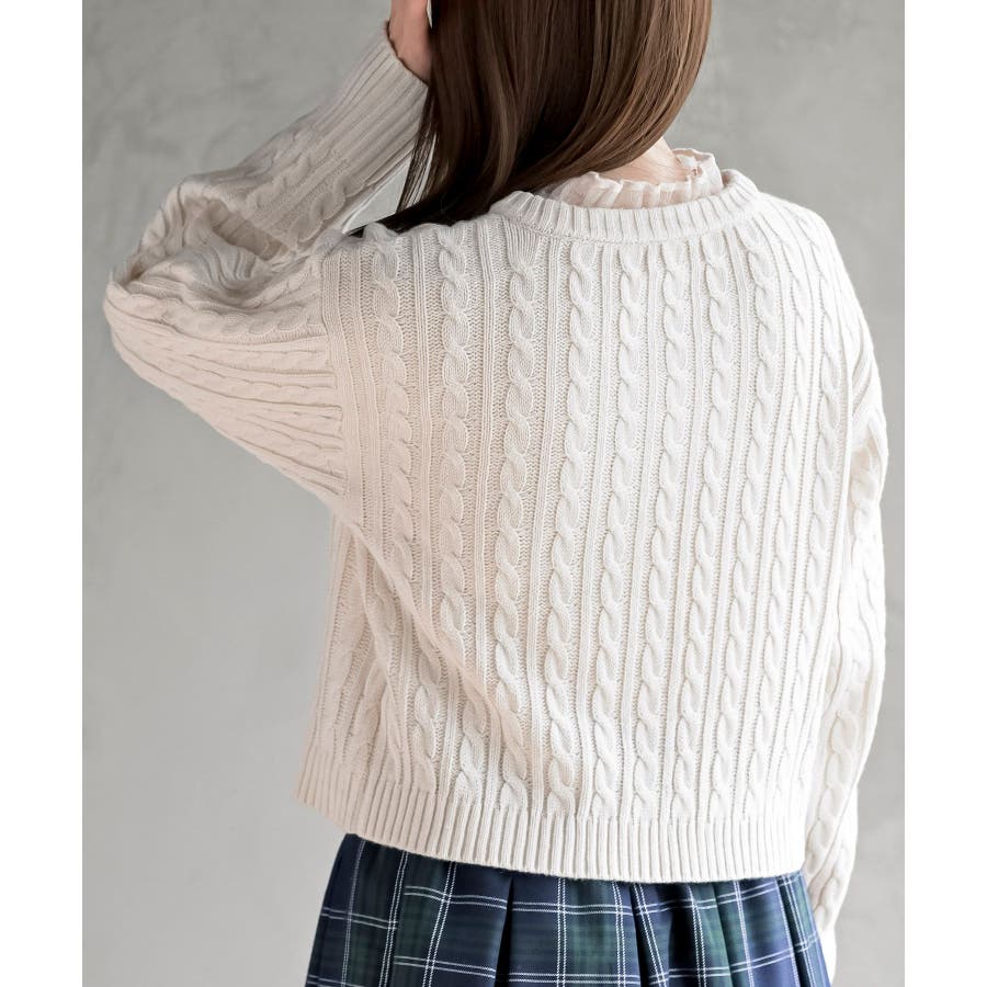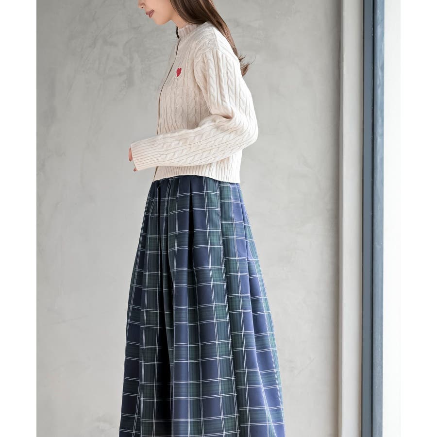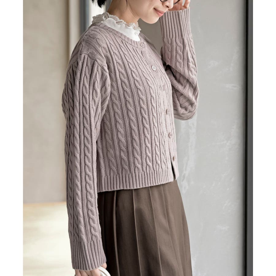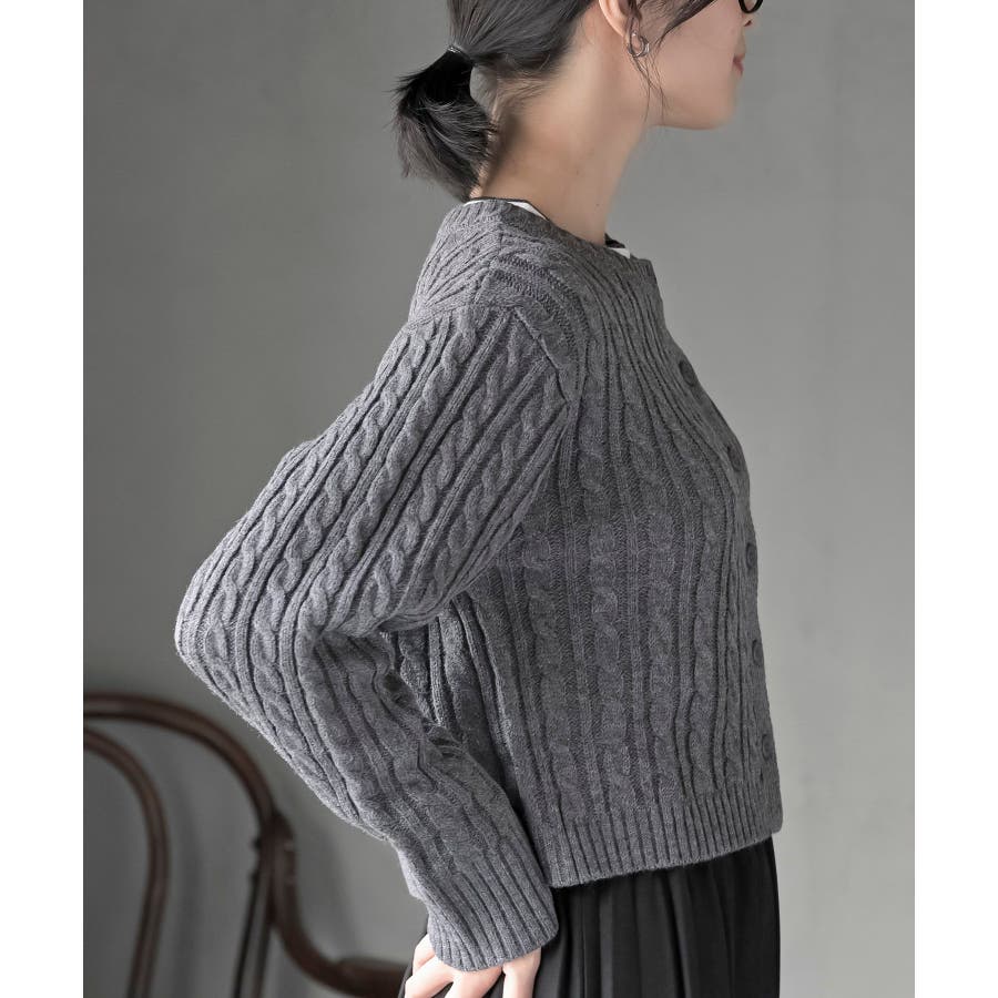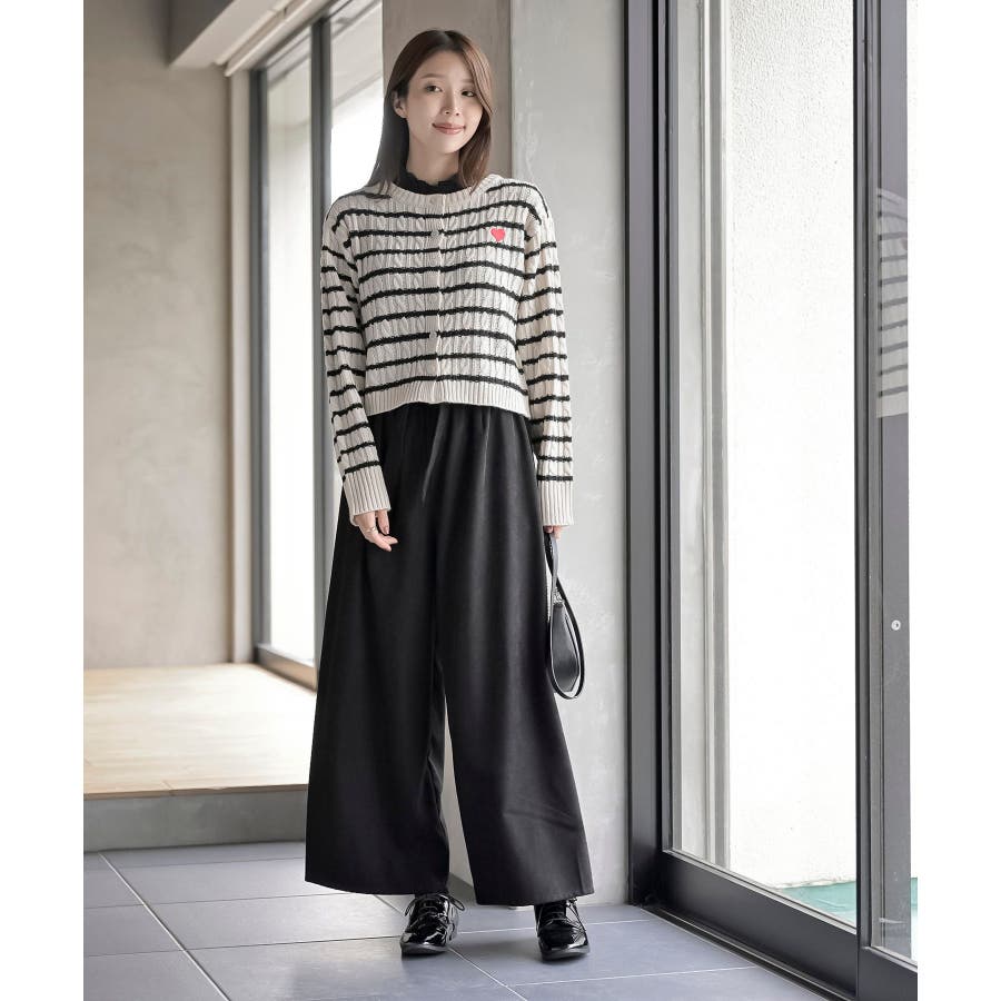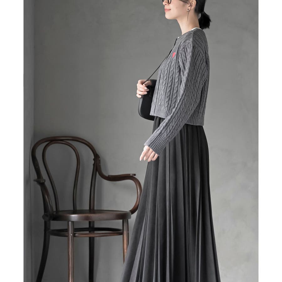 ハート刺繍ケーブルニットクルーネックカーディガン