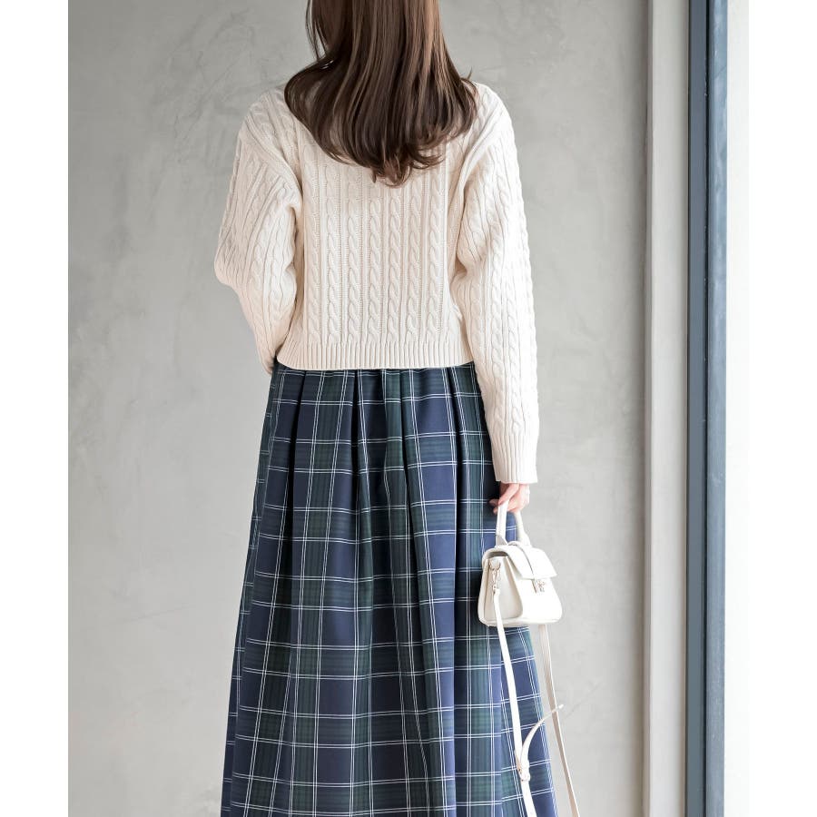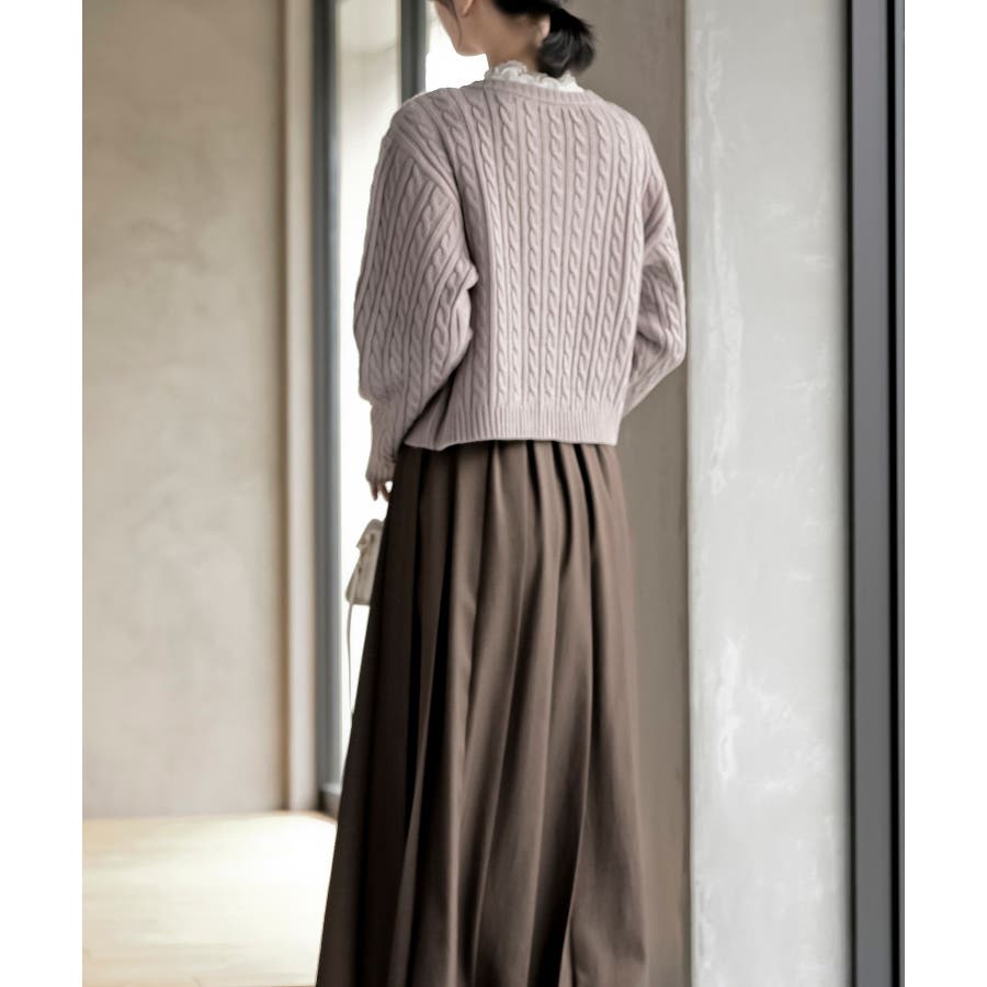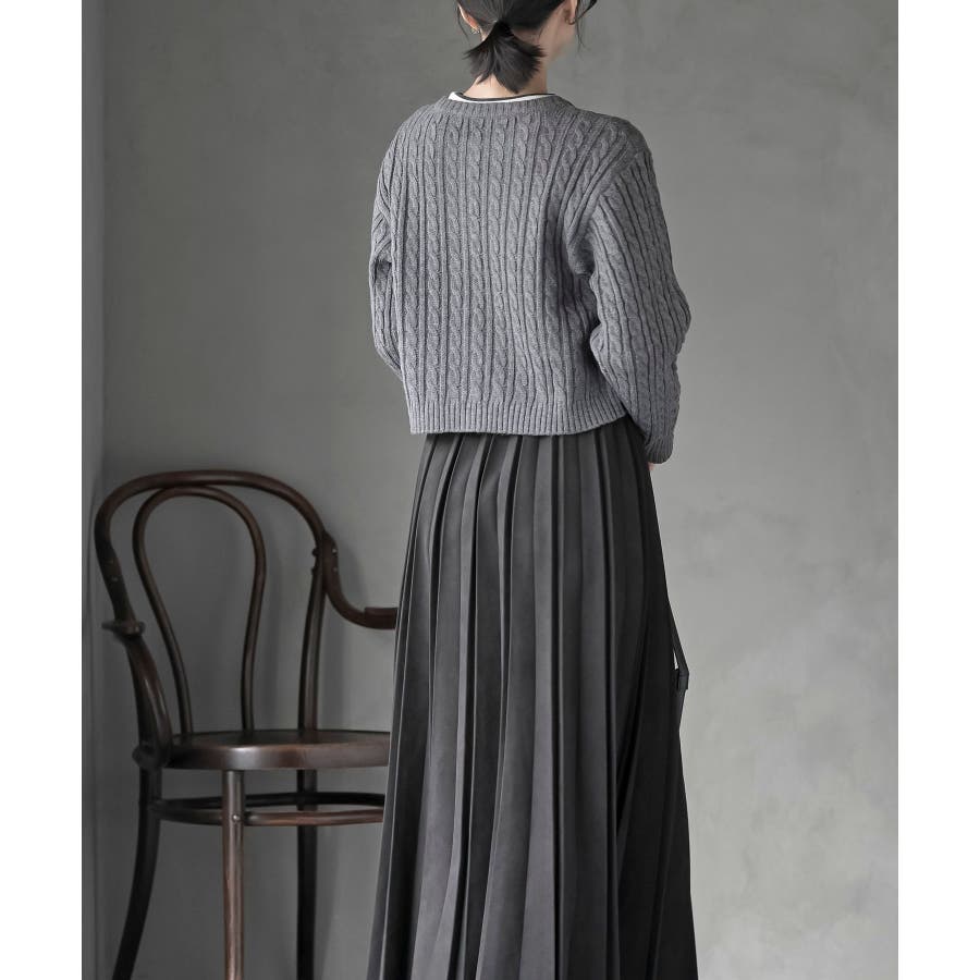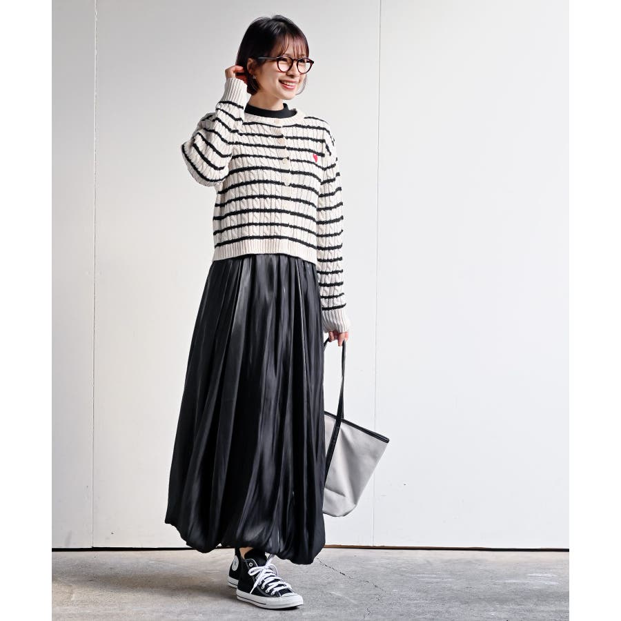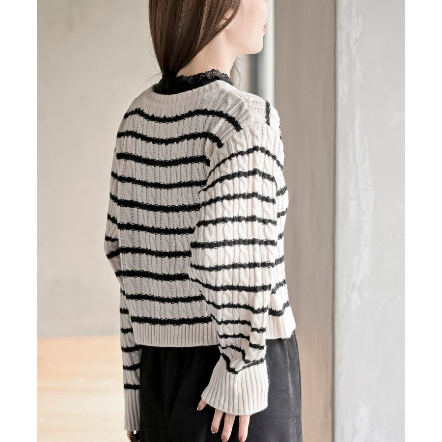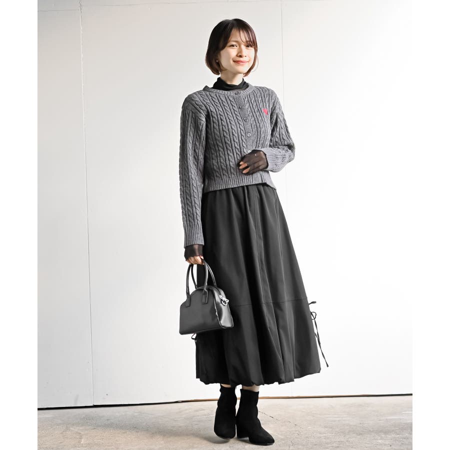 ハート刺繍ケーブルニットクルーネックカーディガン