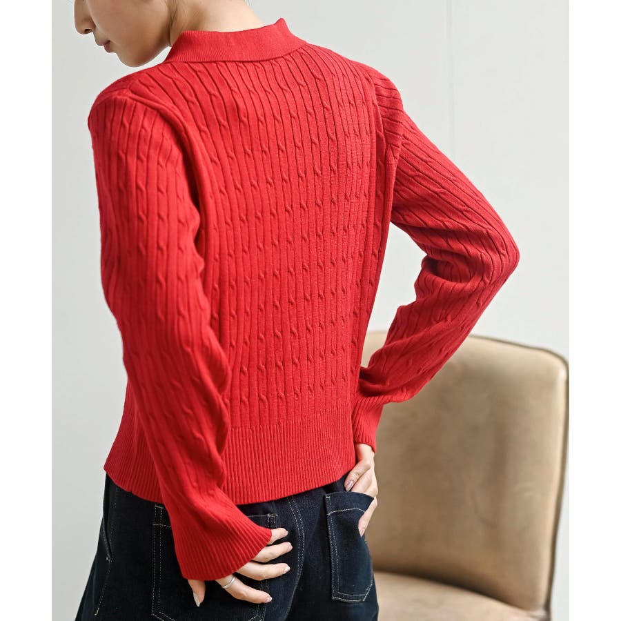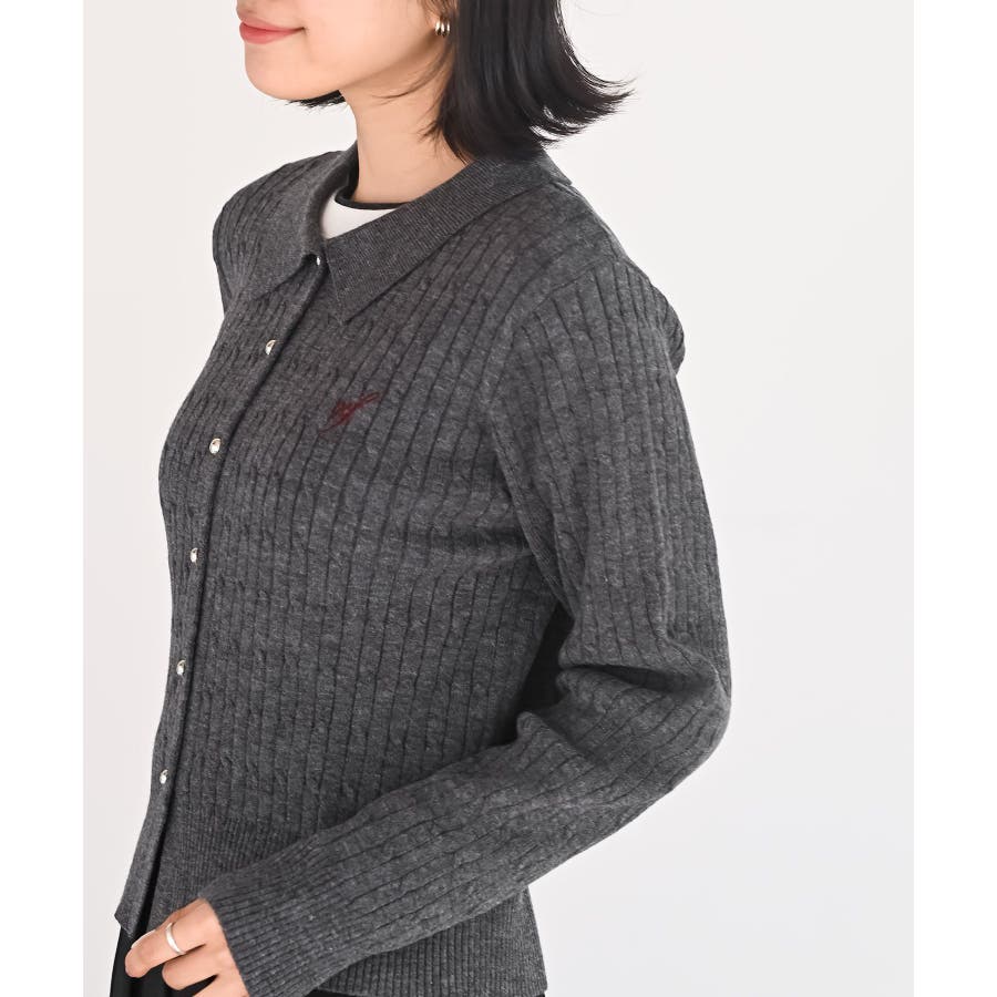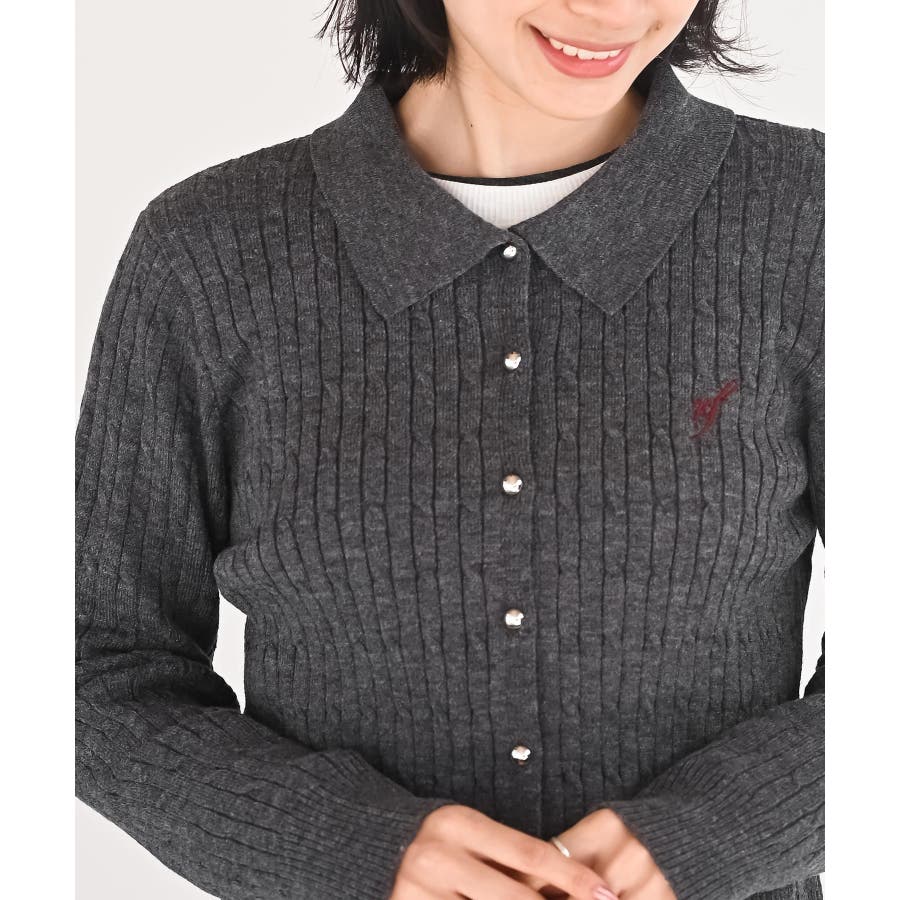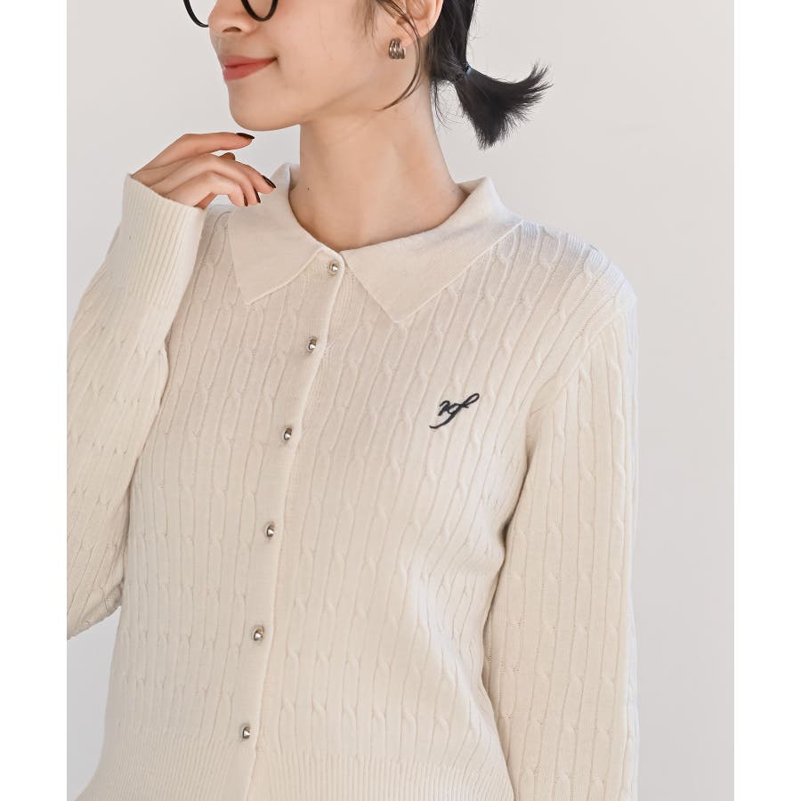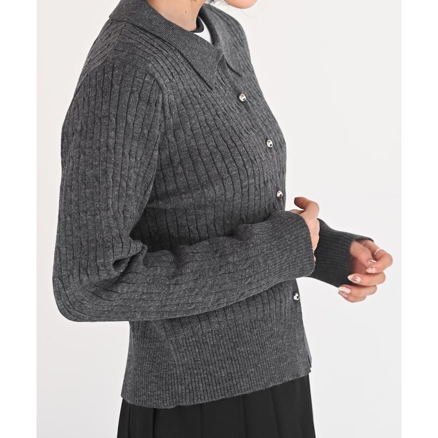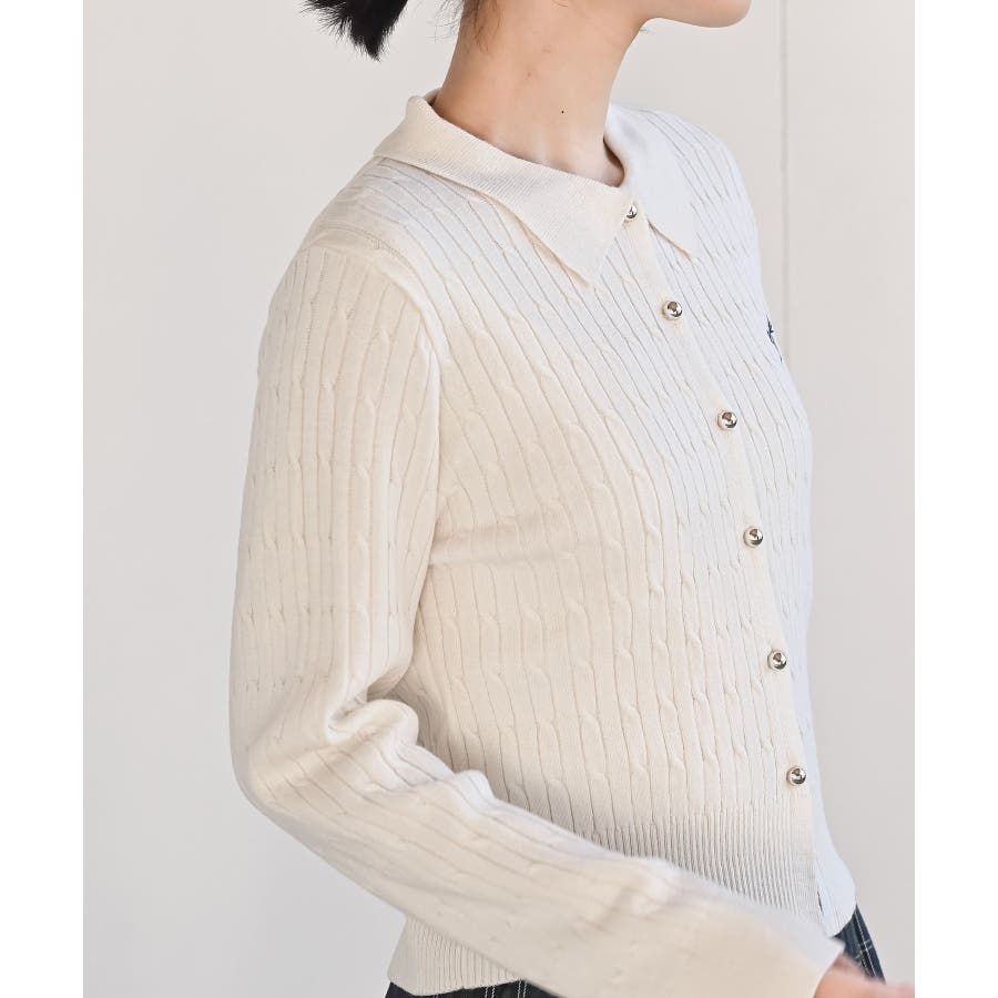 ケーブルポロニットカーディガン