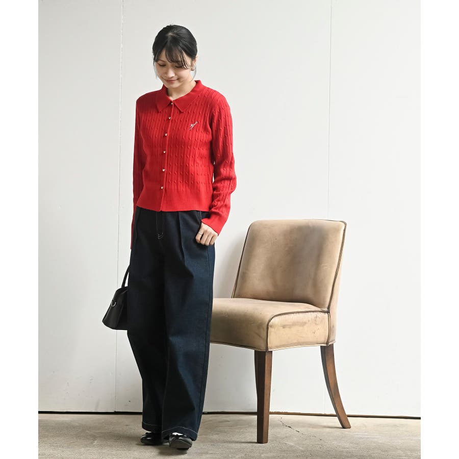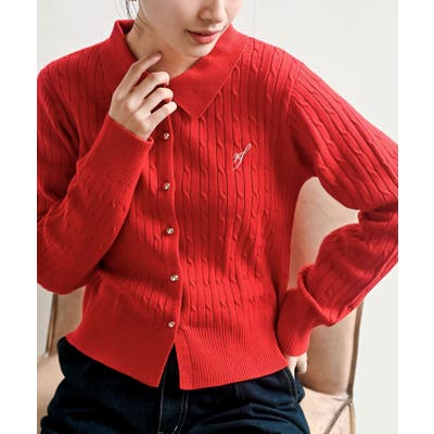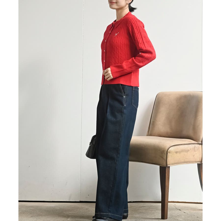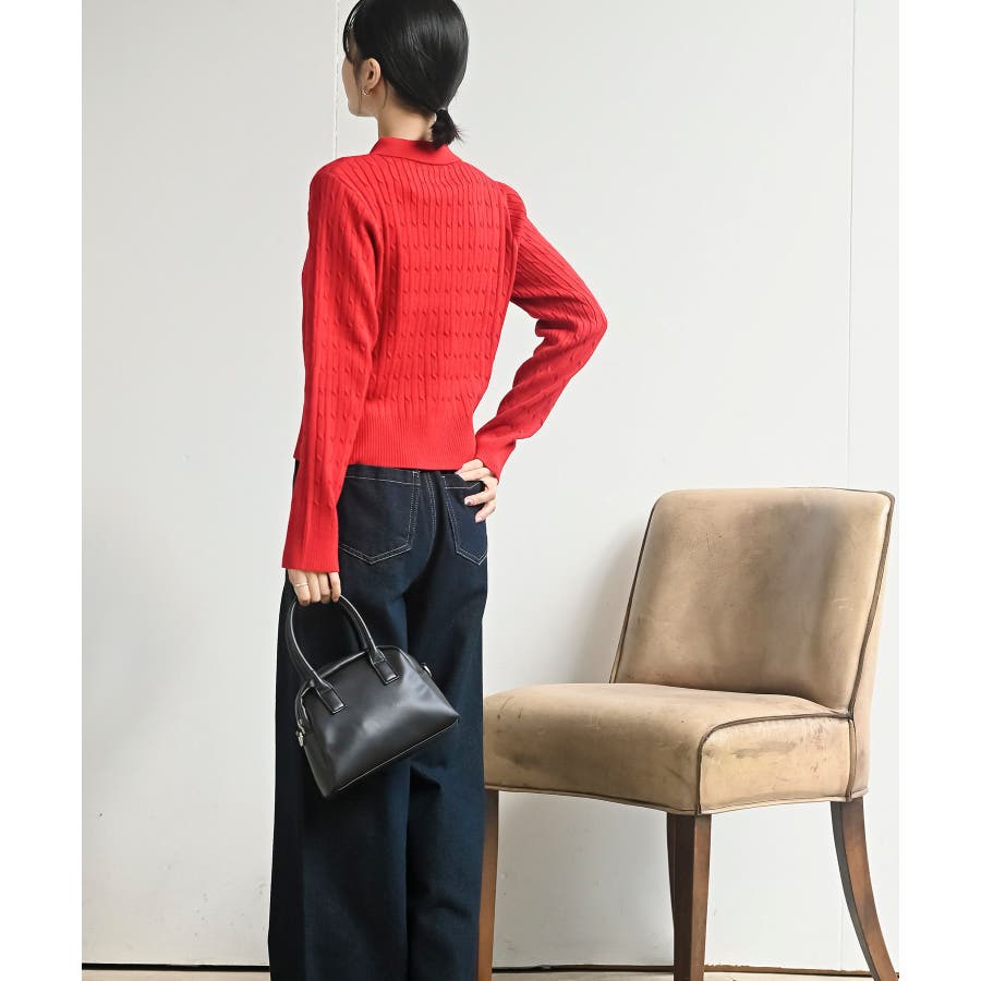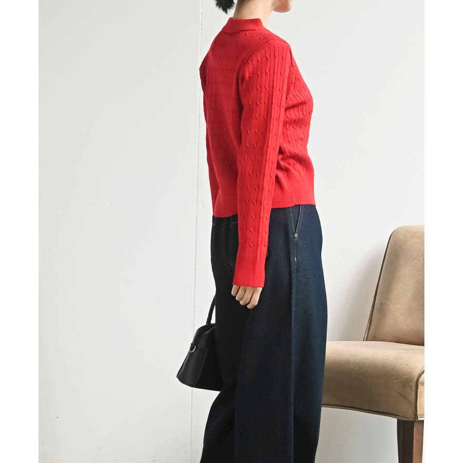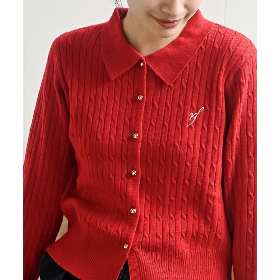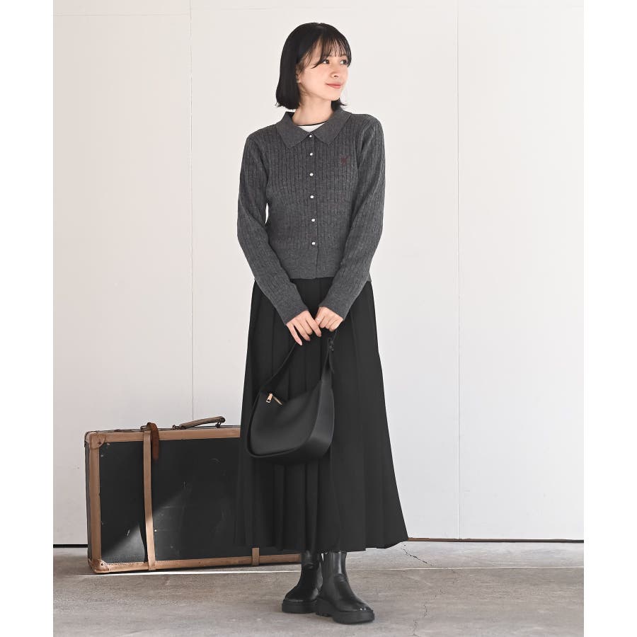 ケーブルポロニットカーディガン