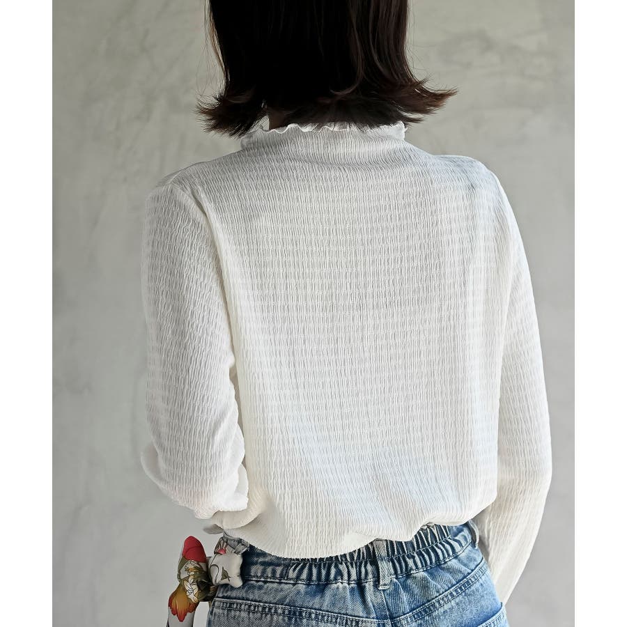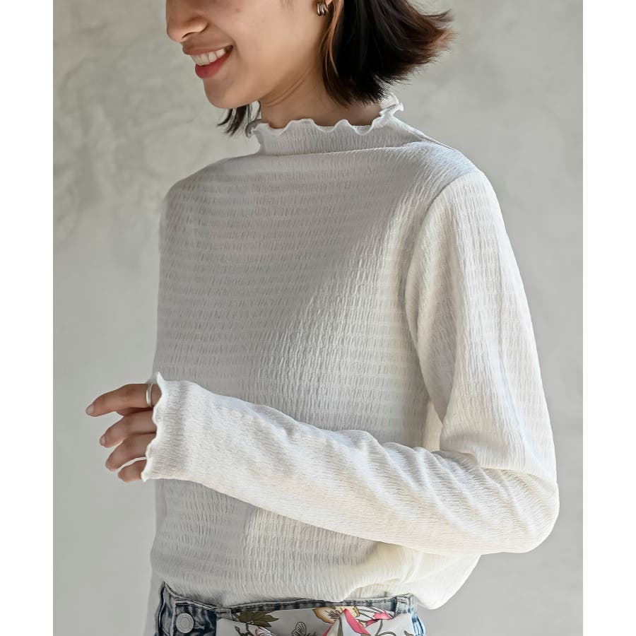 白色を選び、やさしげなフリルネックがいいかんじです。