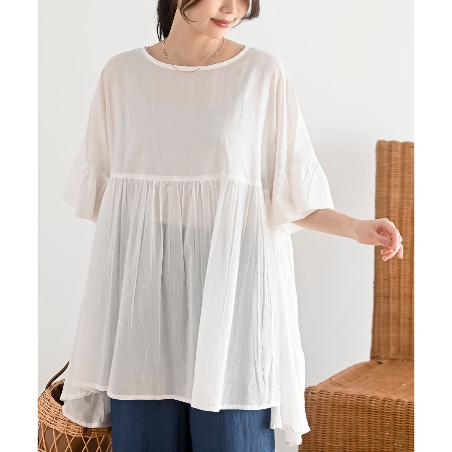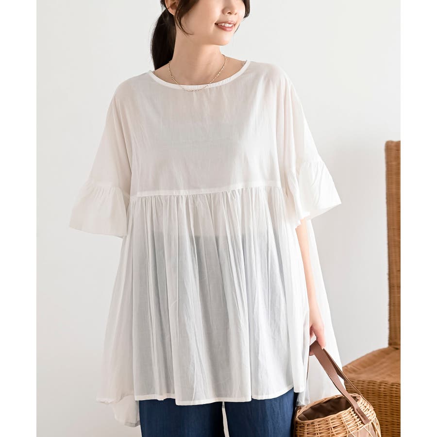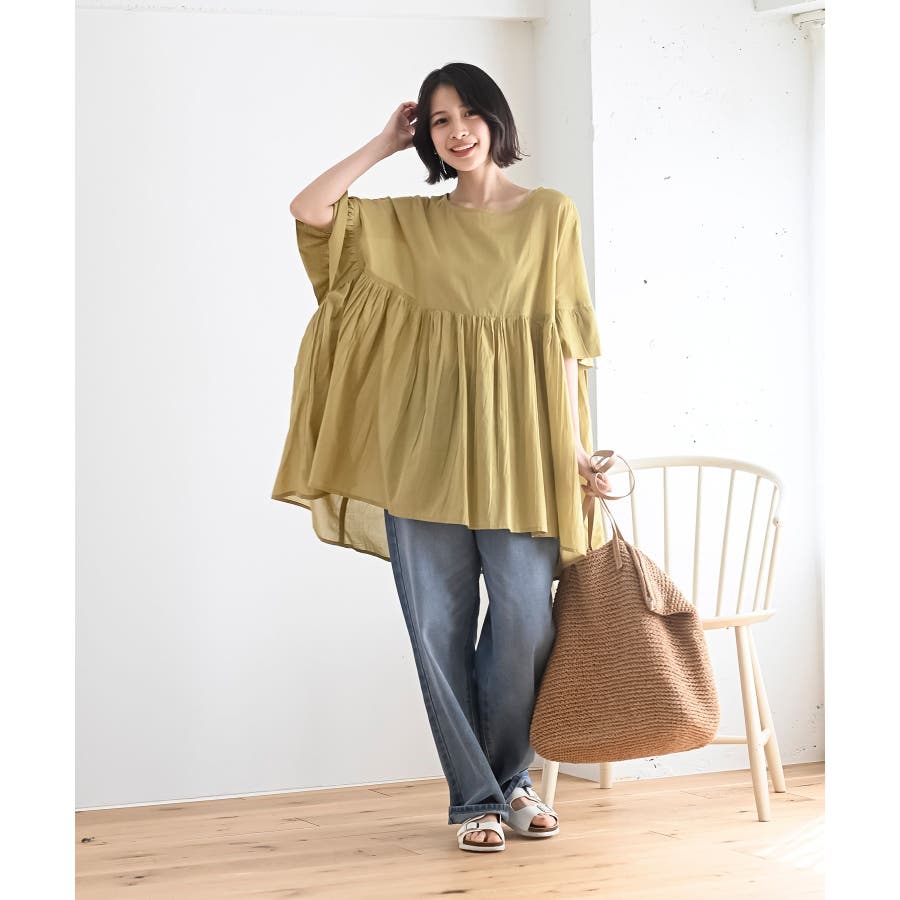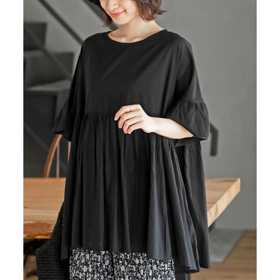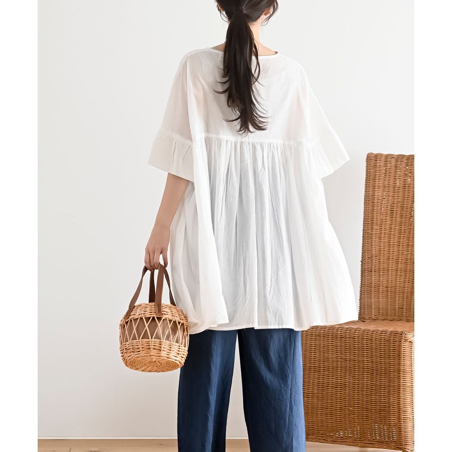 コットンボイルワイドギャザープルオーバー