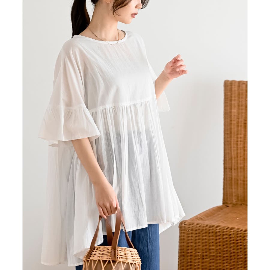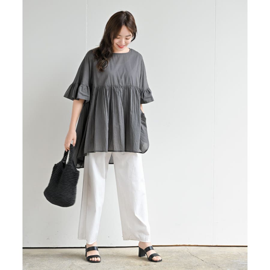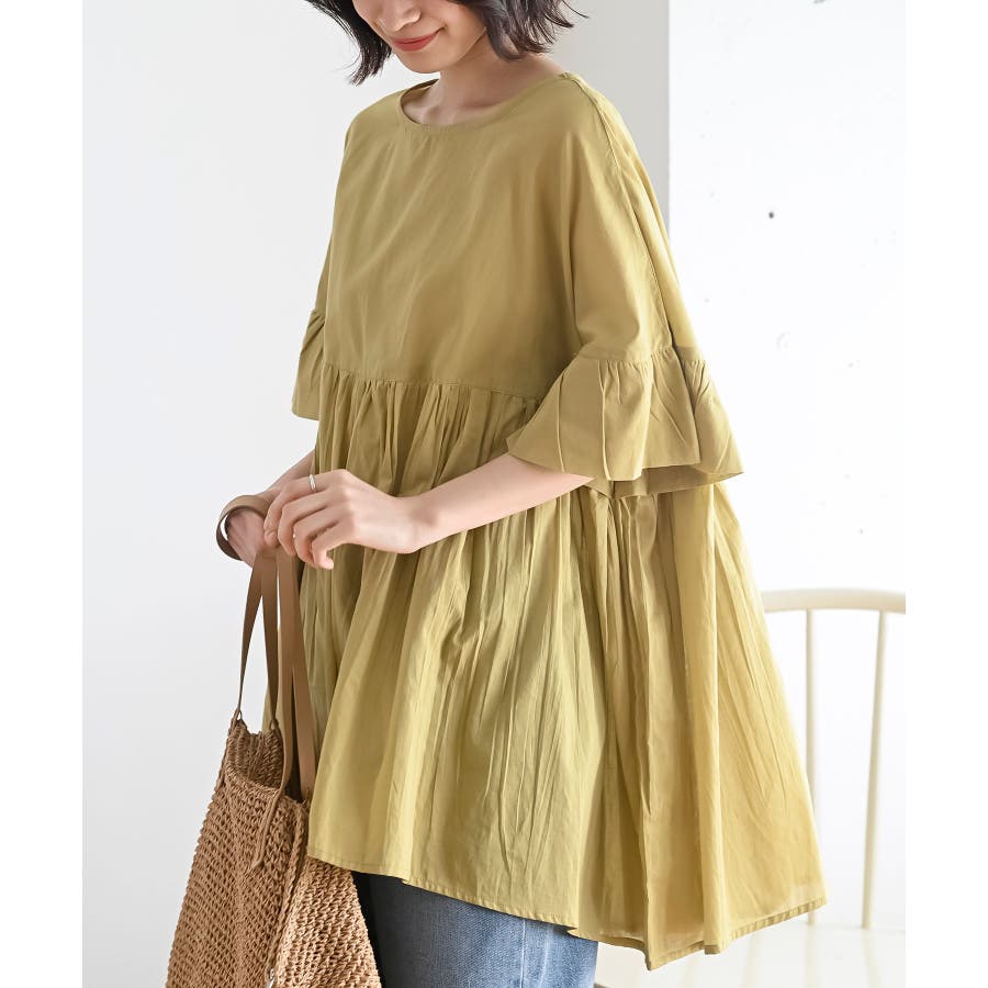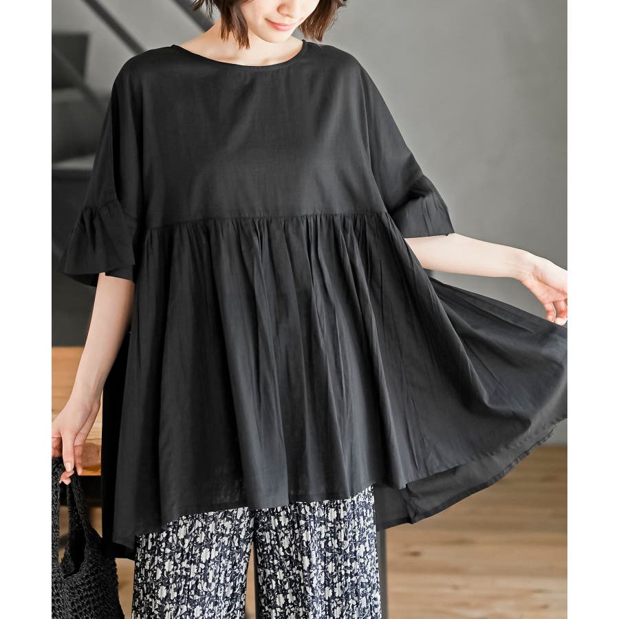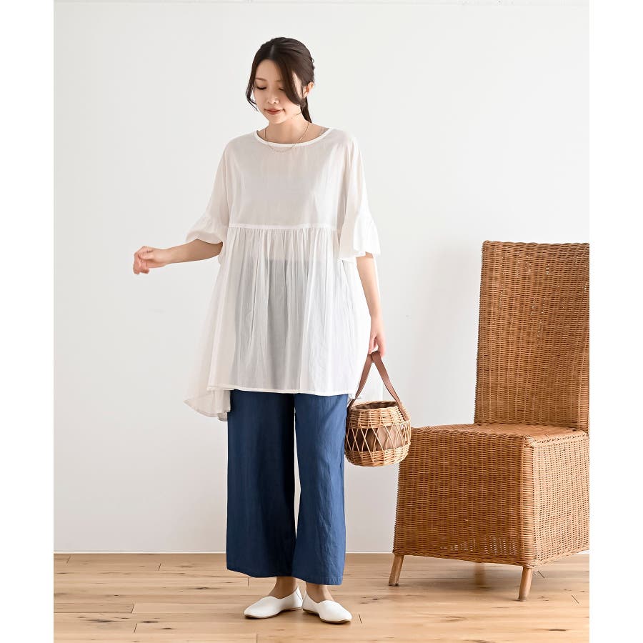 コットンボイルワイドギャザープルオーバー