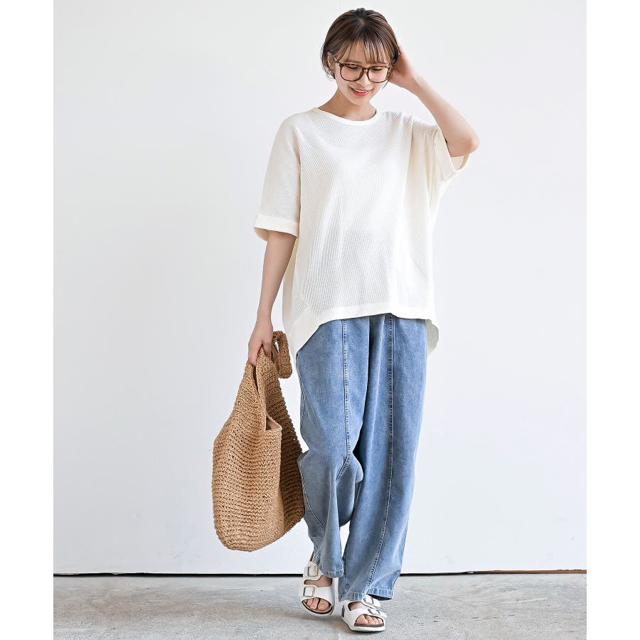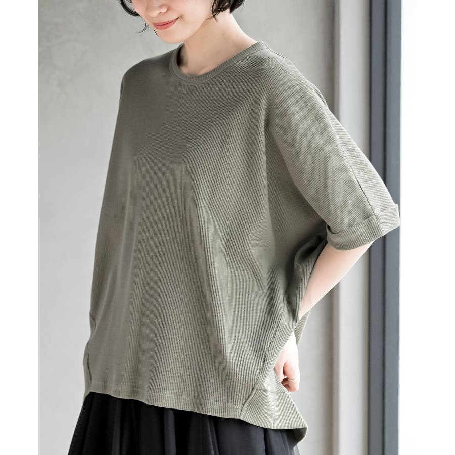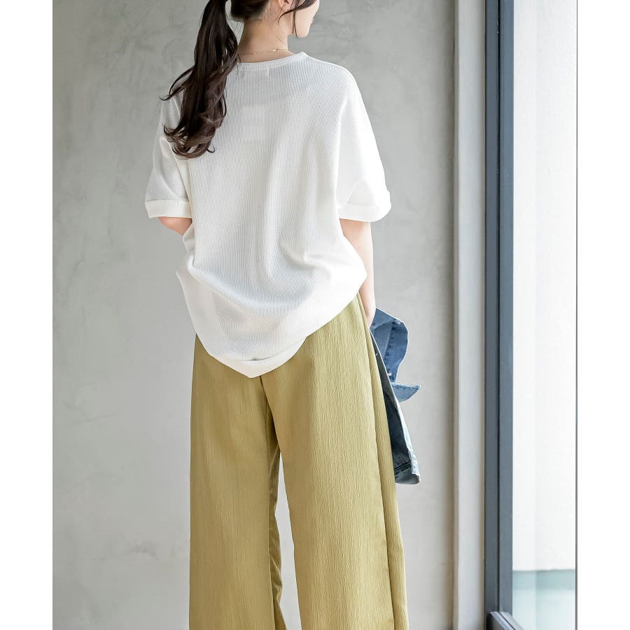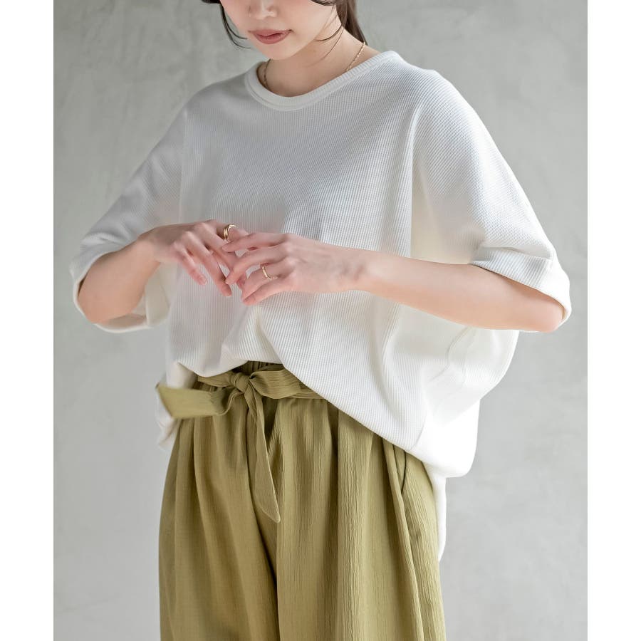 普通の生地かと思いきや ワッフルタイプの生地でした。 結構薄く 涼しいだろうけど 下着は透けるかな。キャミソール着て着用します。