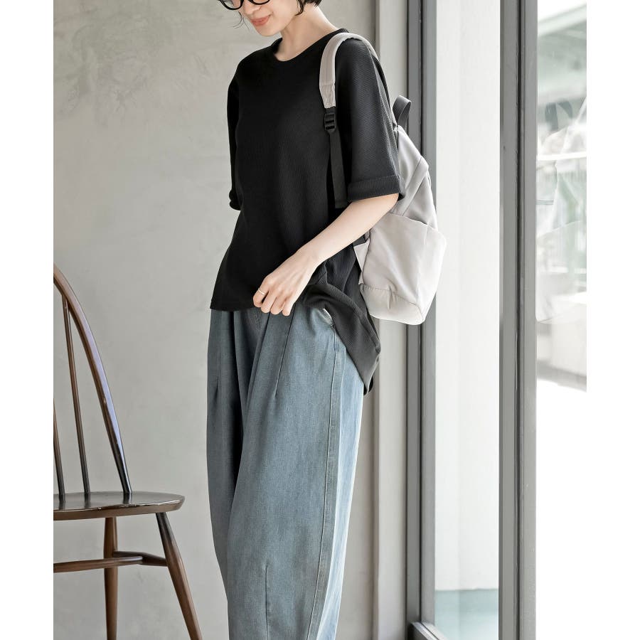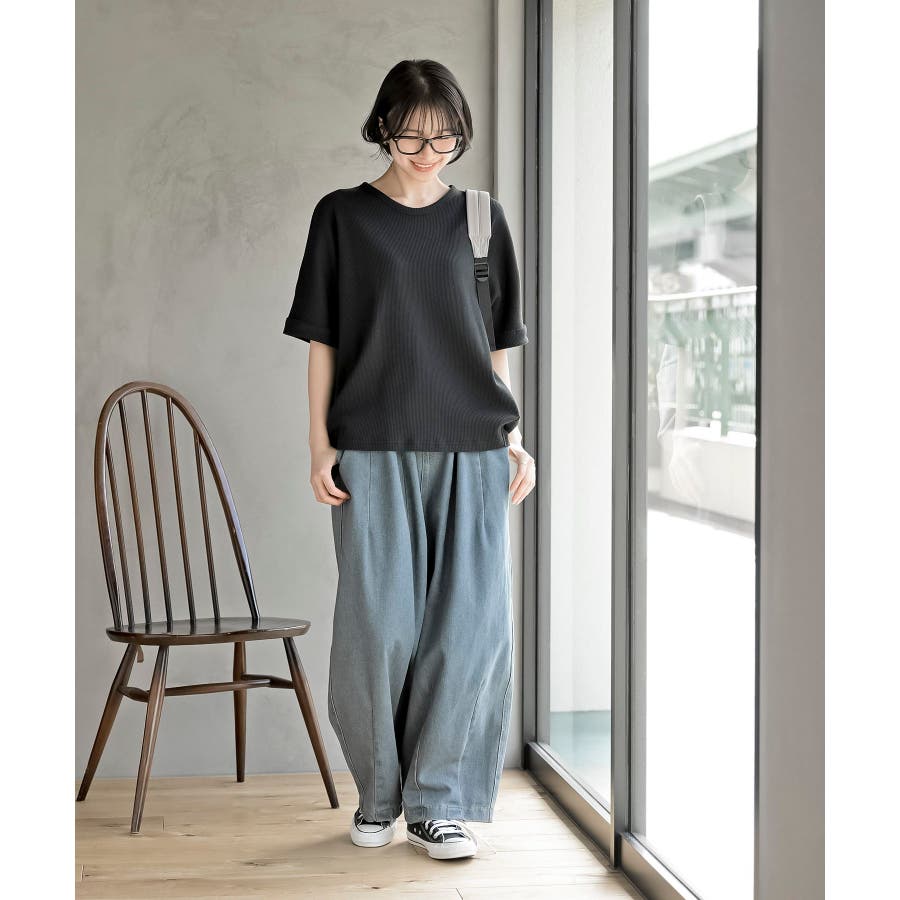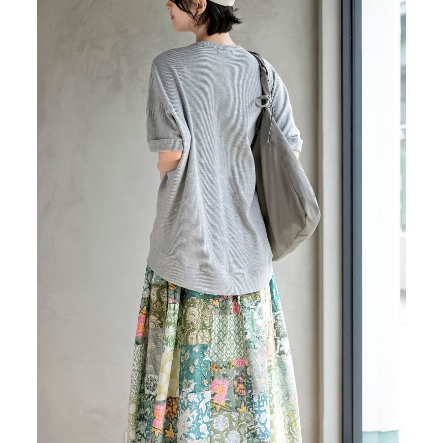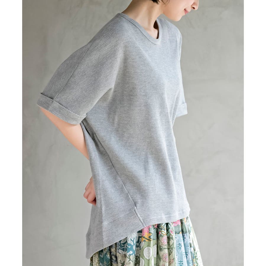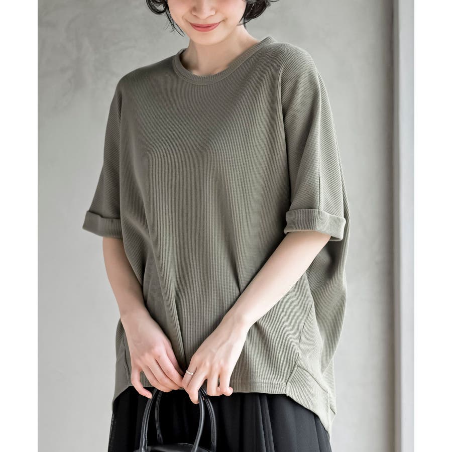 普通の生地かと思いきや ワッフルタイプの生地でした。 結構薄く 涼しいだろうけど 下着は透けるかな。キャミソール着て着用します。