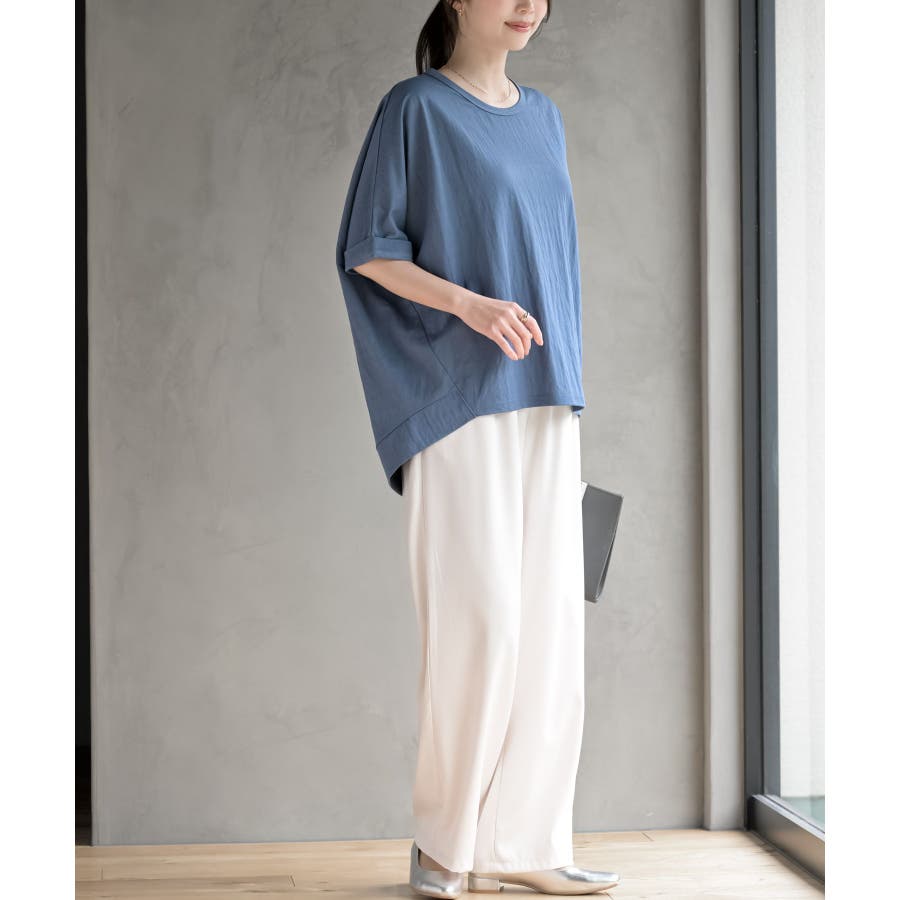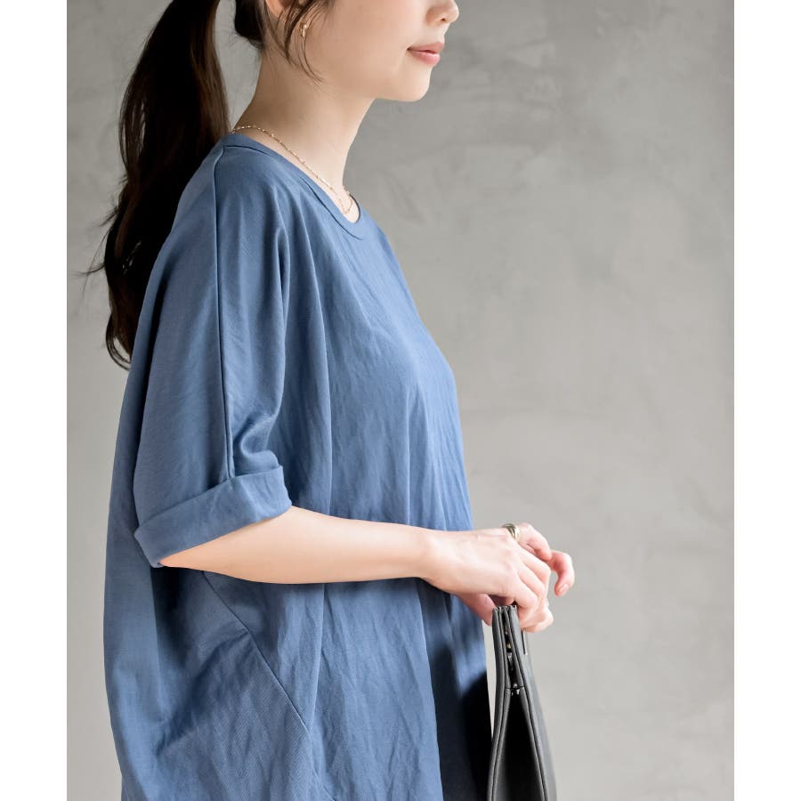 ストンと落ちて、とてもキレイに着られる生地です。化繊特有のシャラっとした手触りなので、綿の手触りでないとイヤな人にはオススメできません。私はきれいに着こなせるので気に入りました!