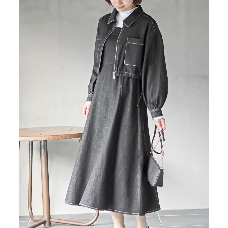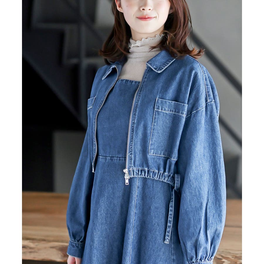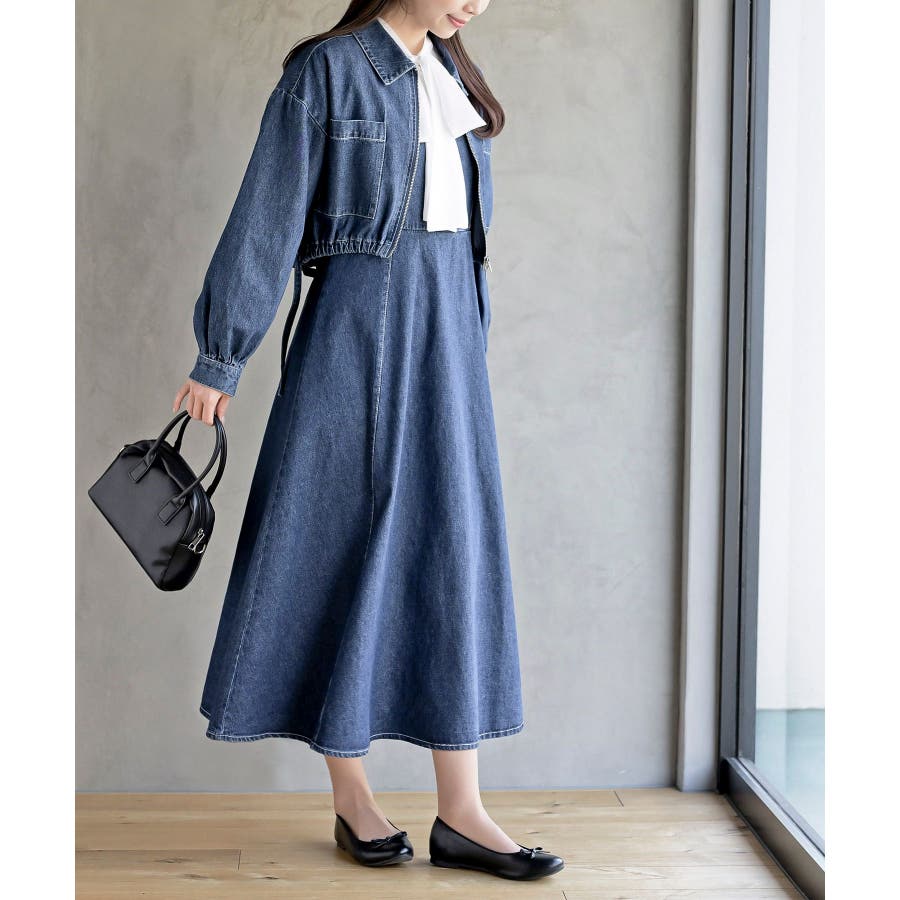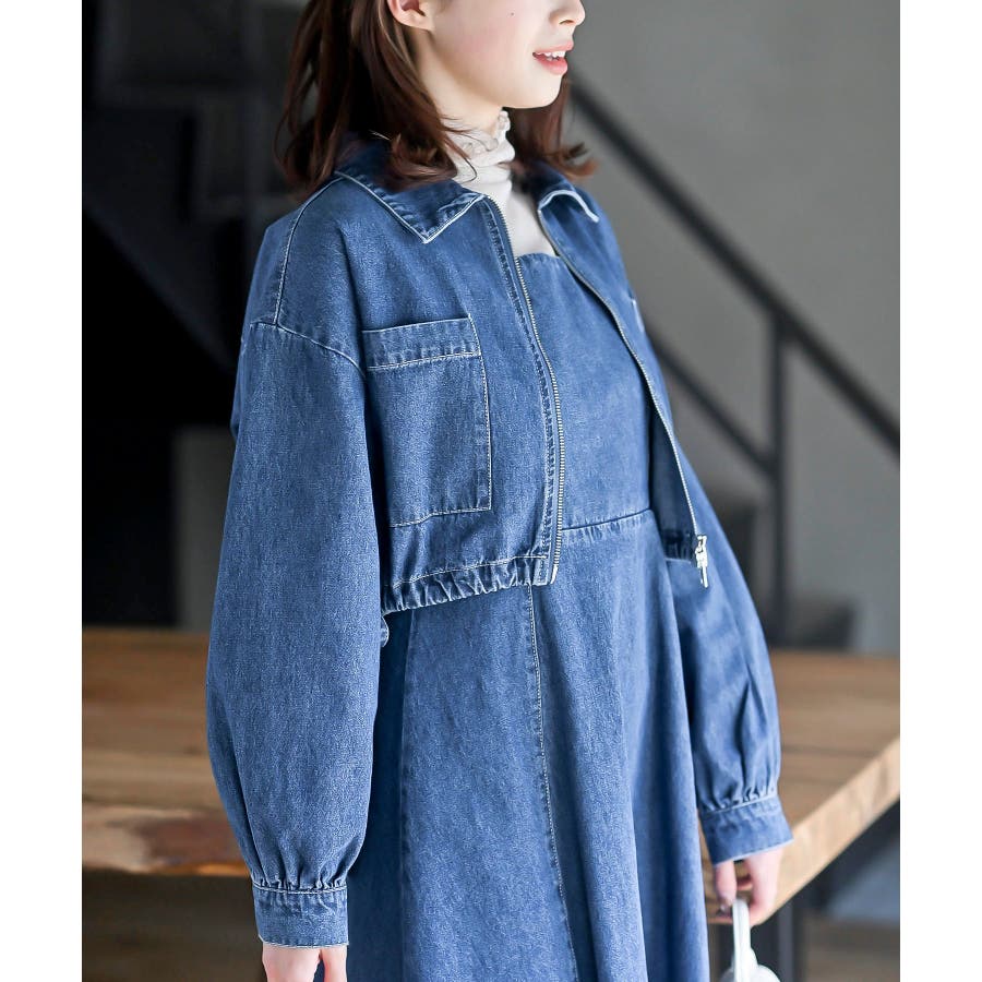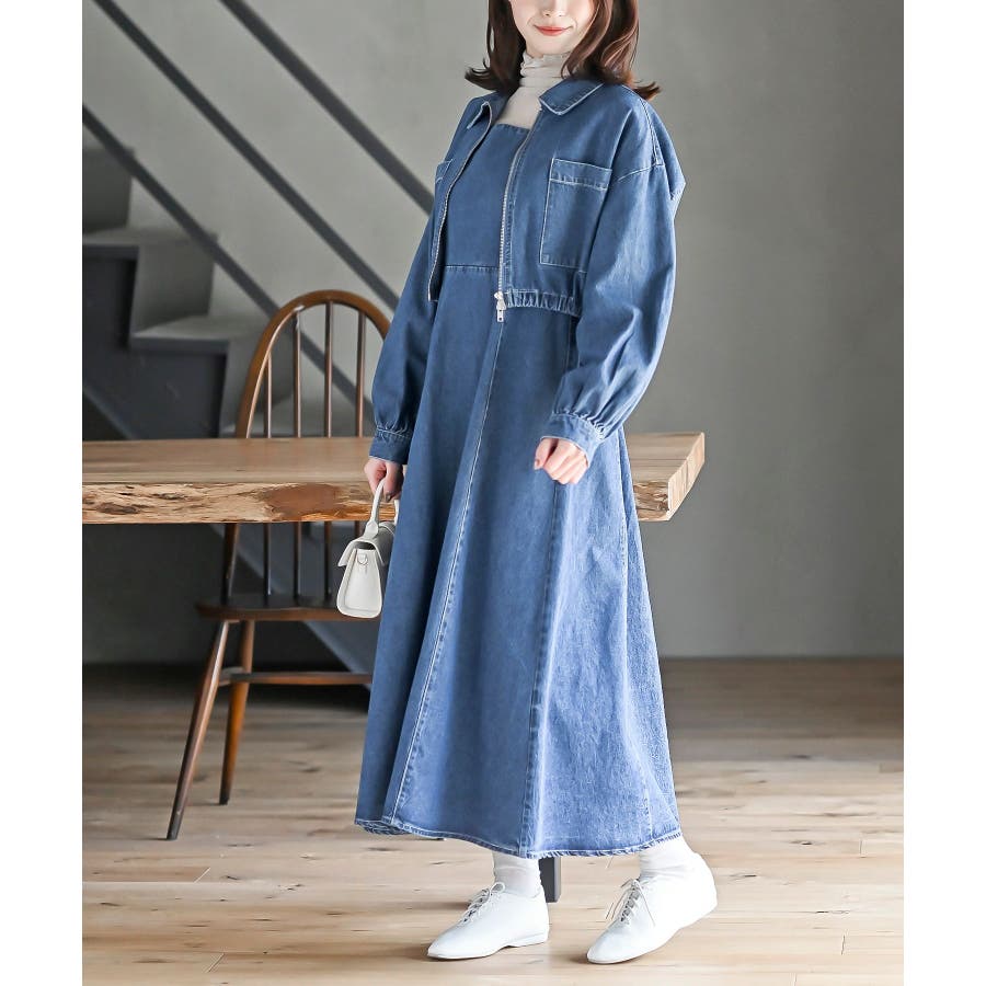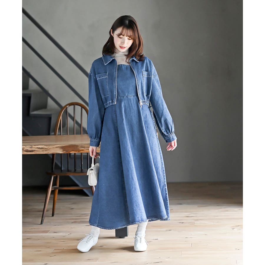 デニムブルゾン×キャミワンピースセットアップ