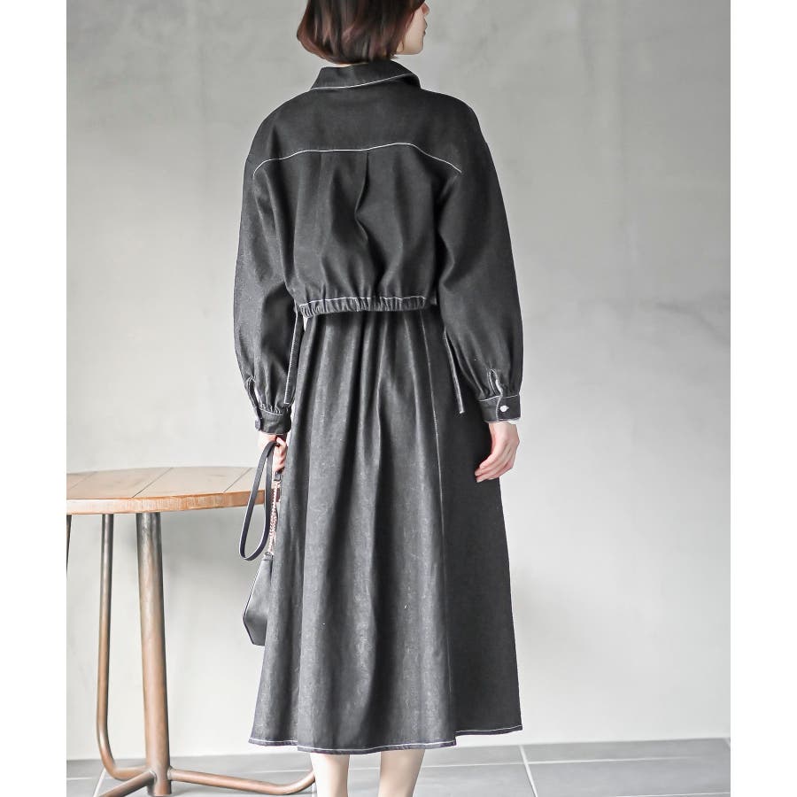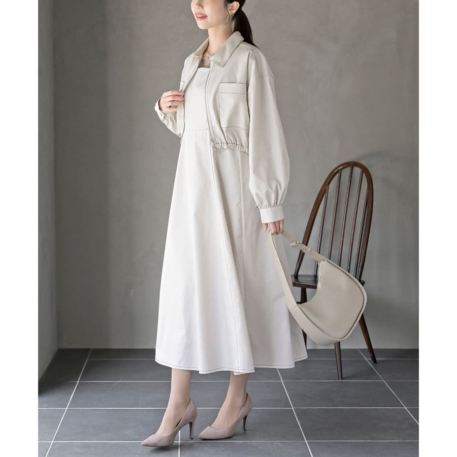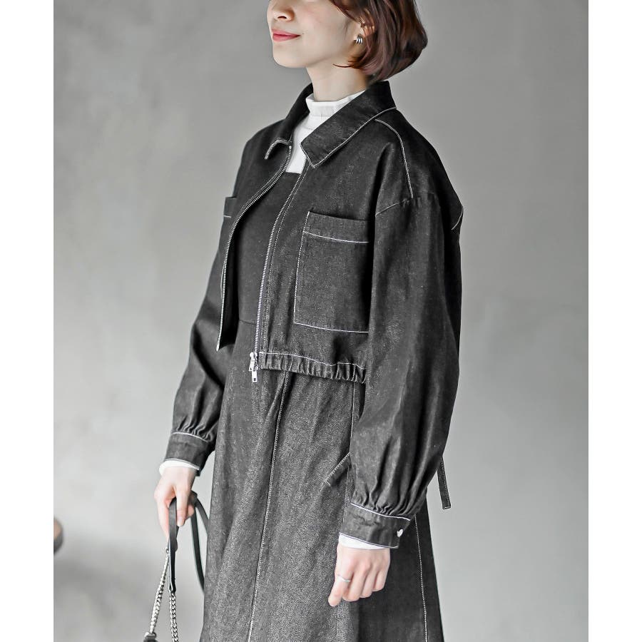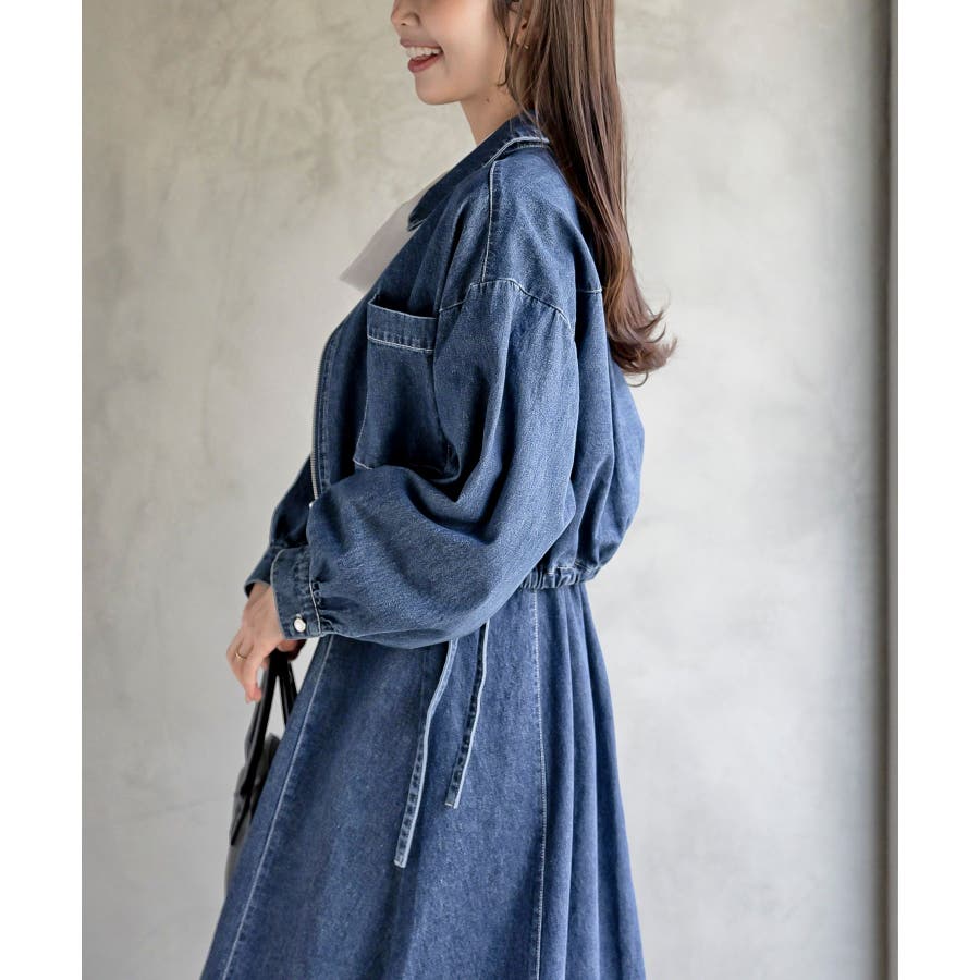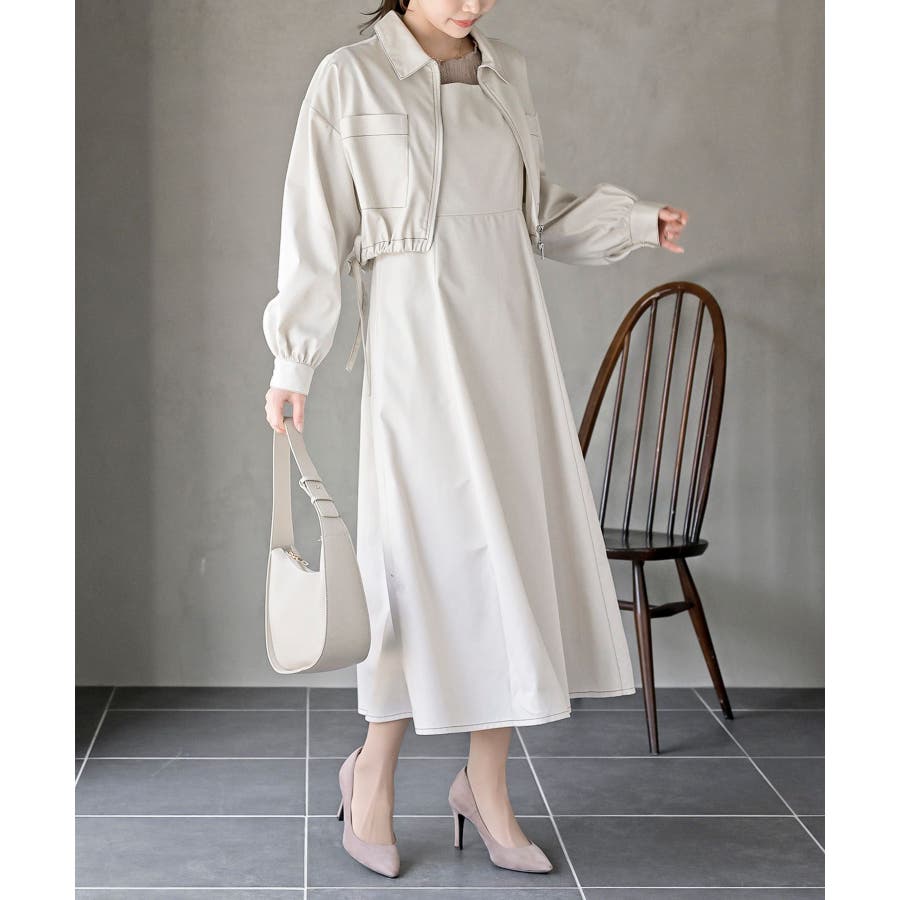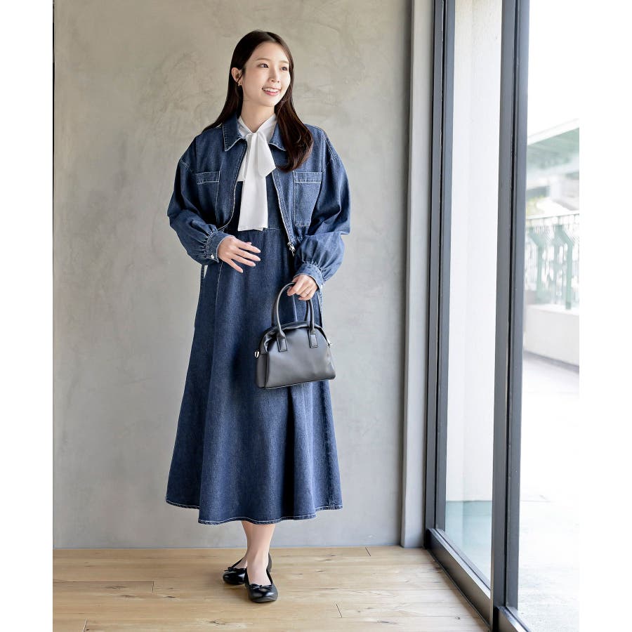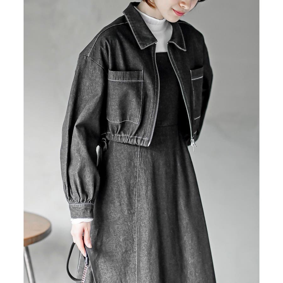 デニムブルゾン×キャミワンピースセットアップ