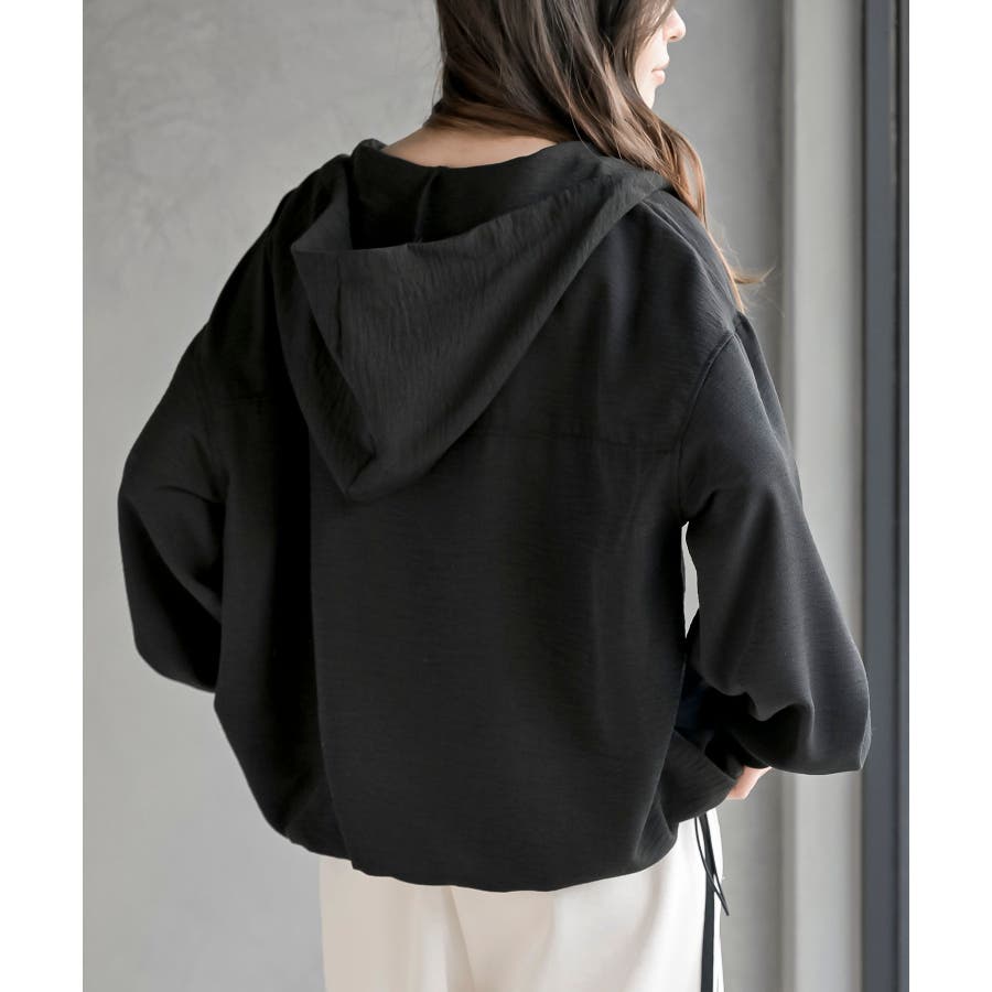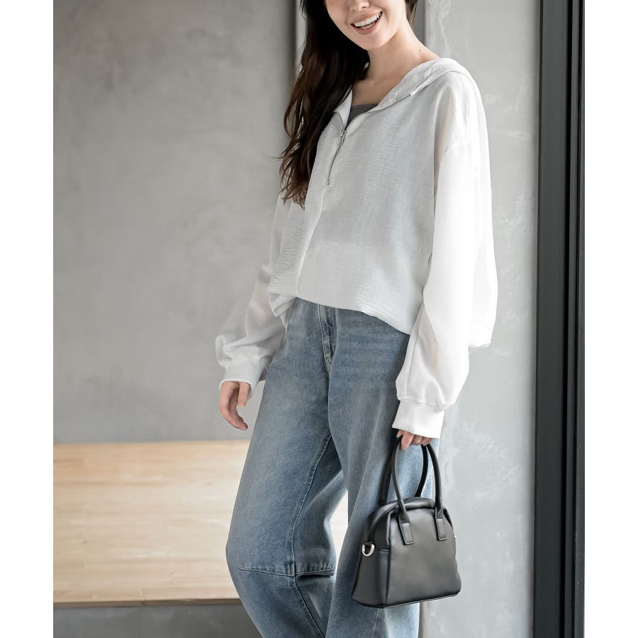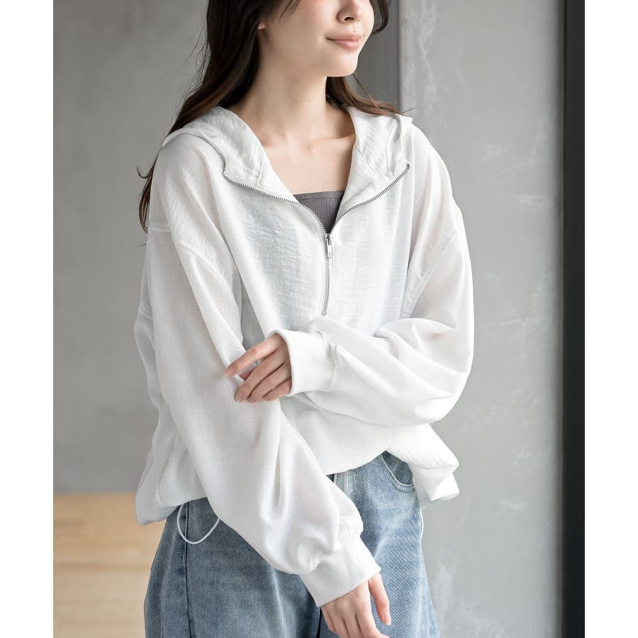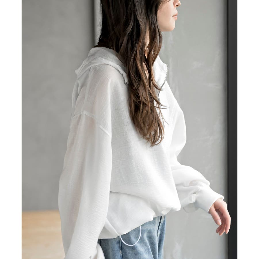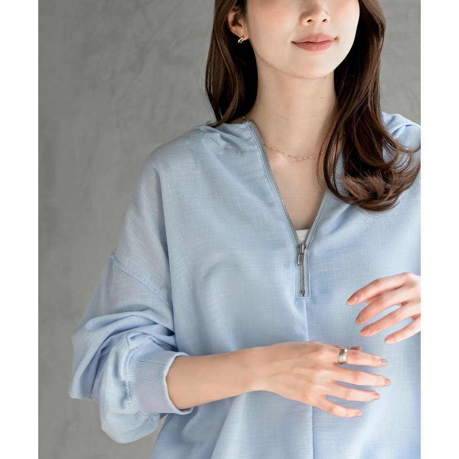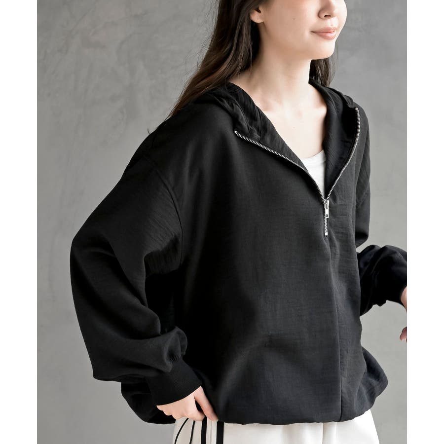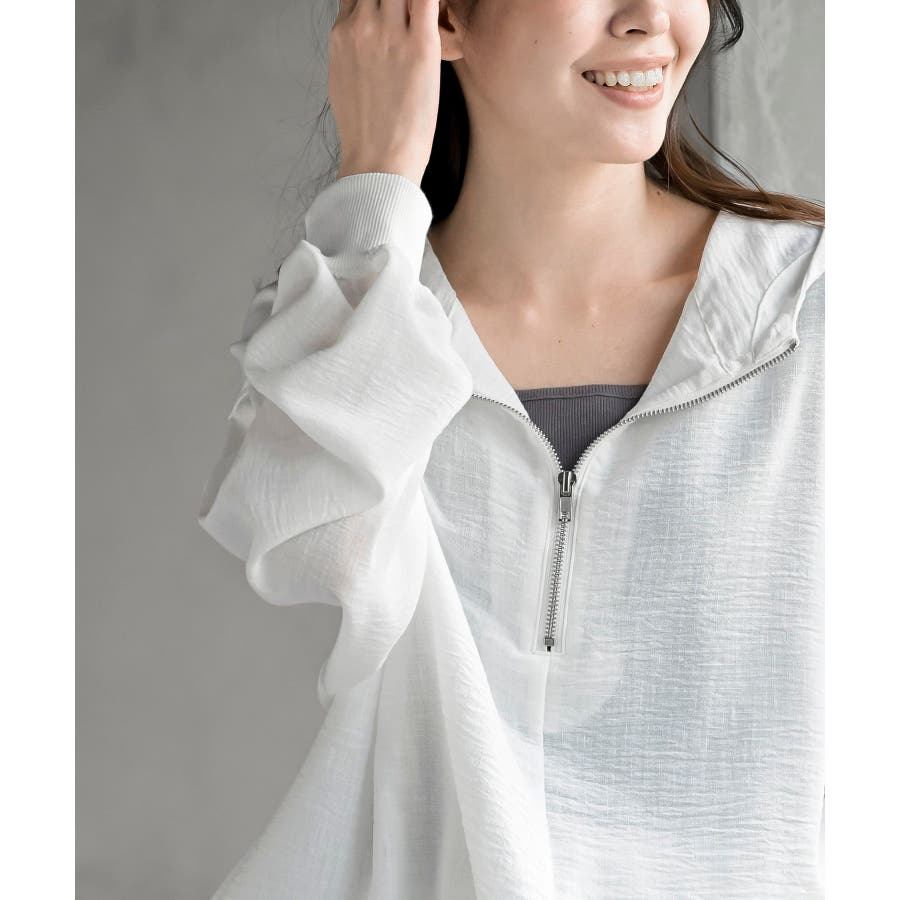 ハーフジップフードプルオーバー