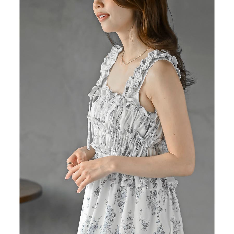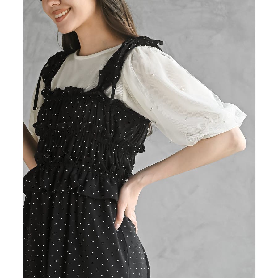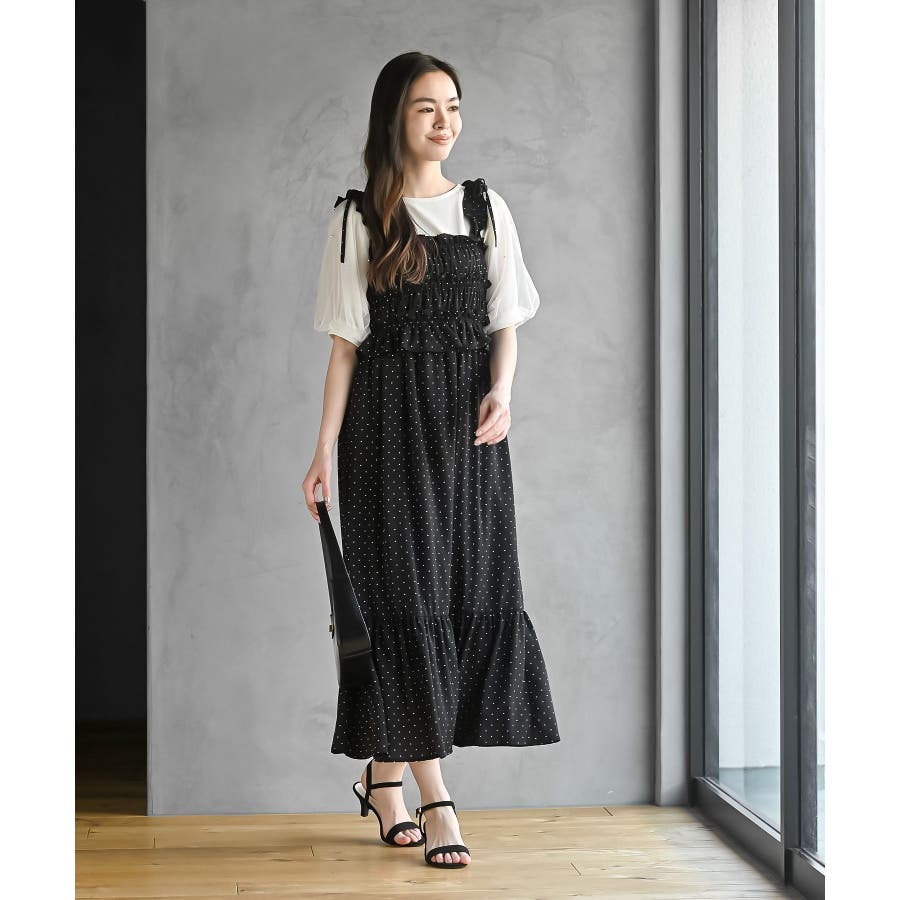 リボン付きシャーリングキャミワンピース