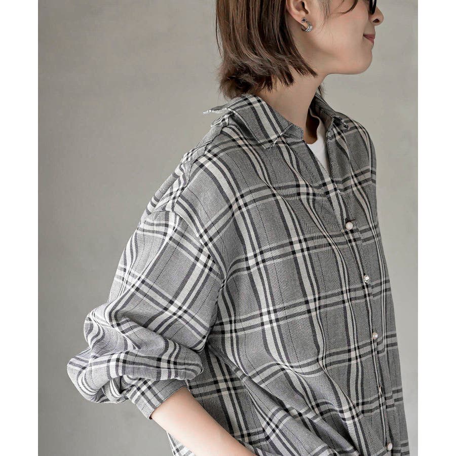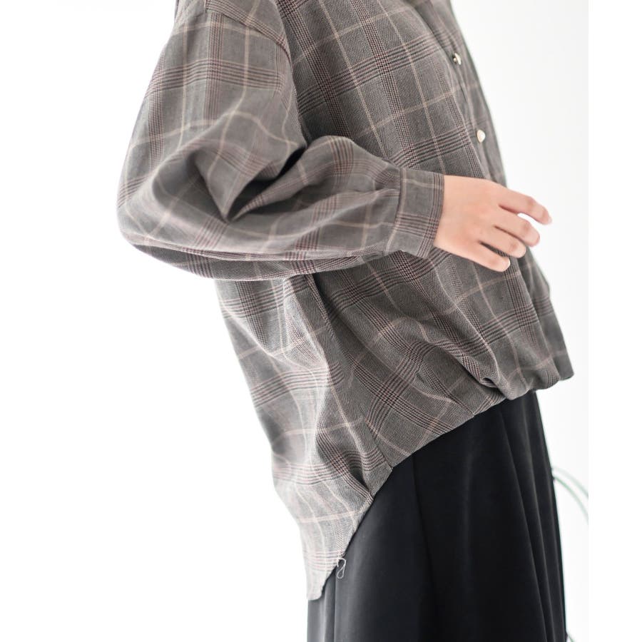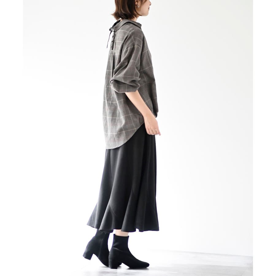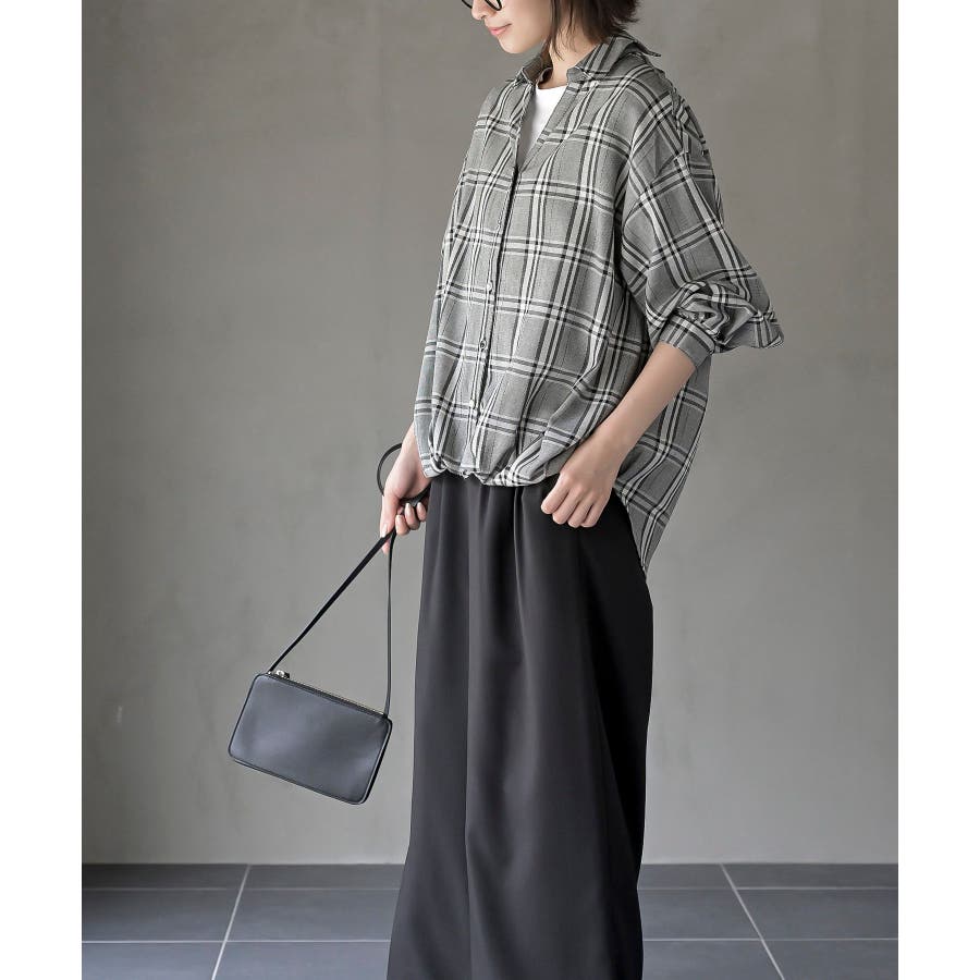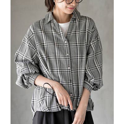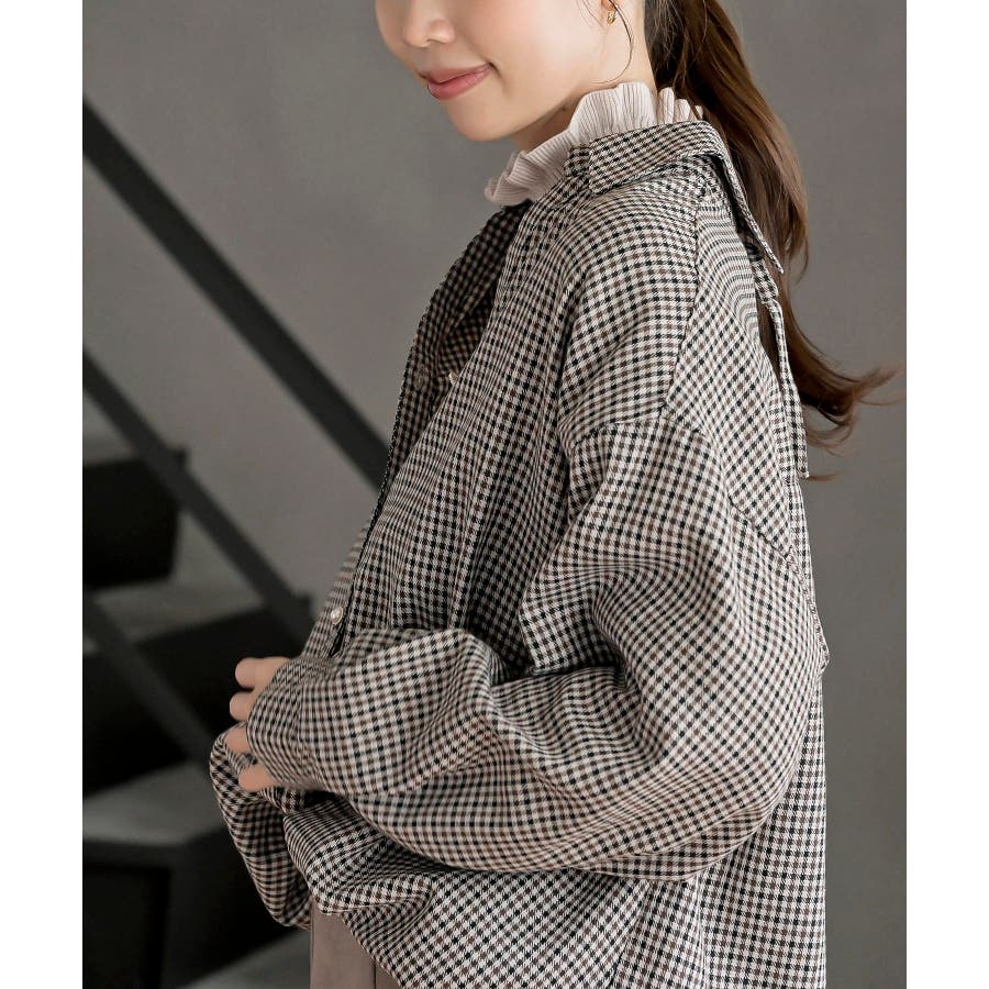 BACKレースアップ裾タックチェックブラウス