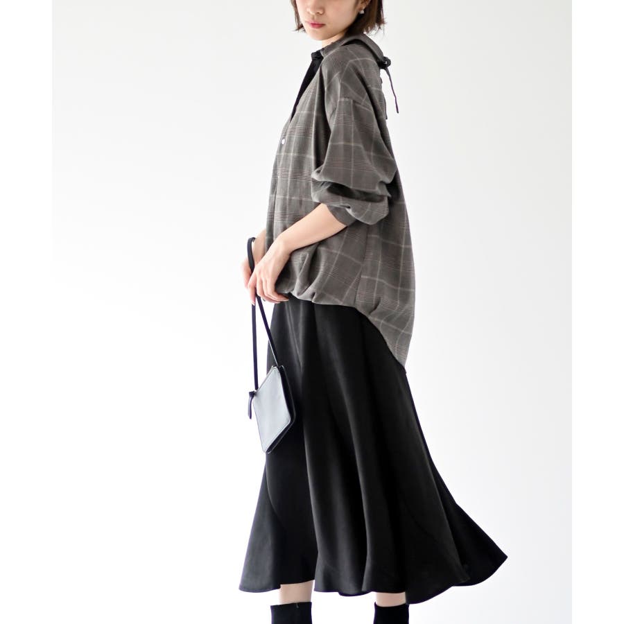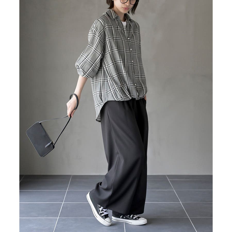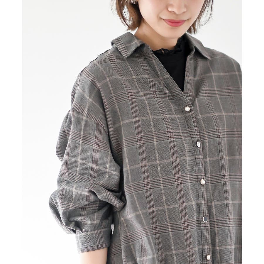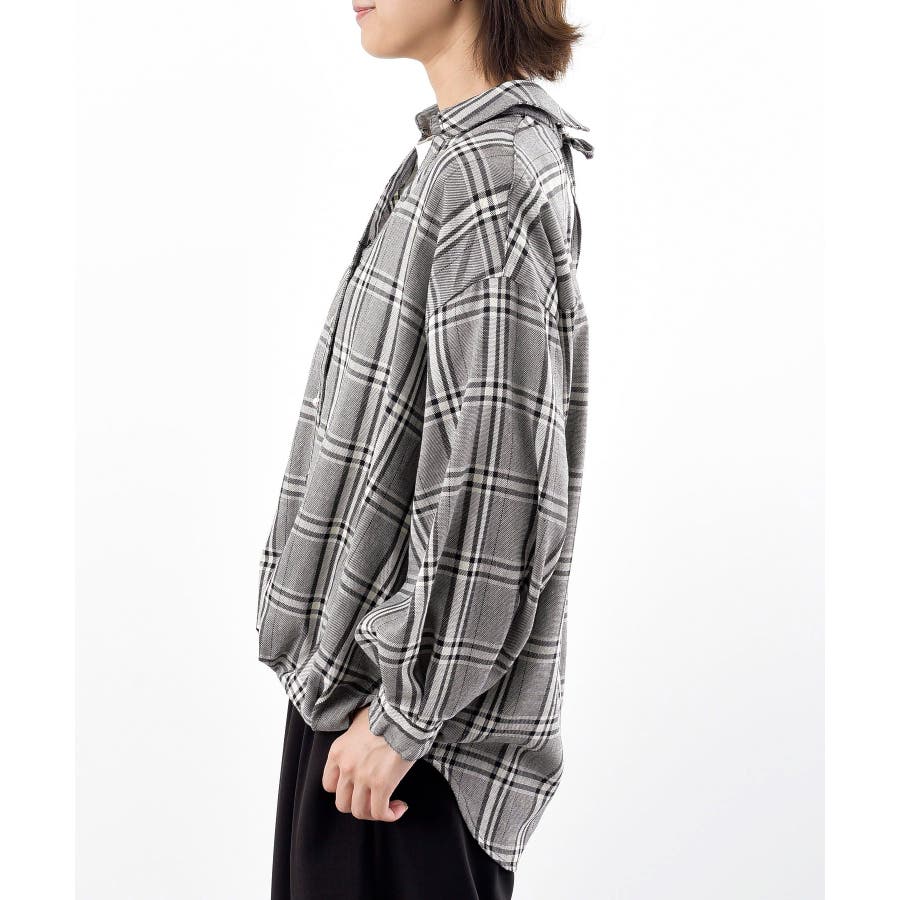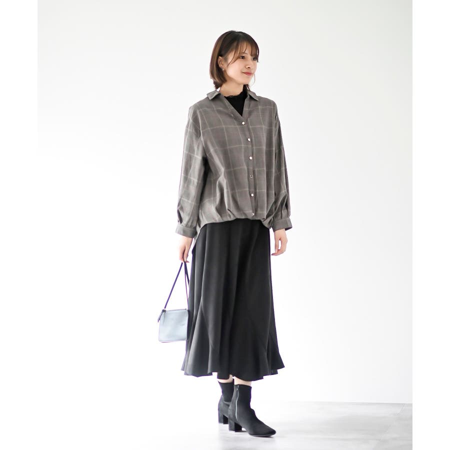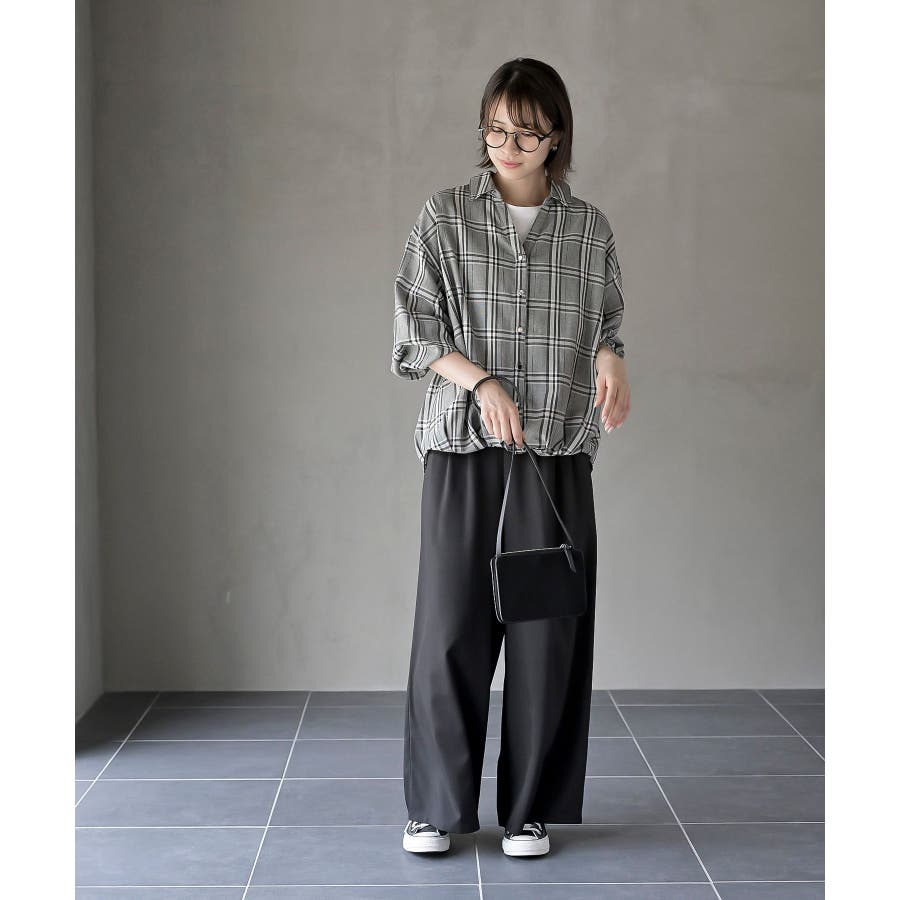 BACKレースアップ裾タックチェックブラウス