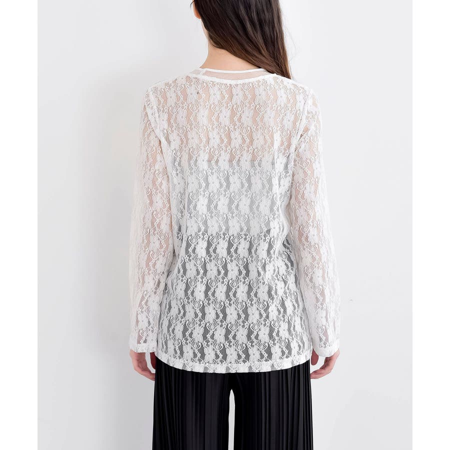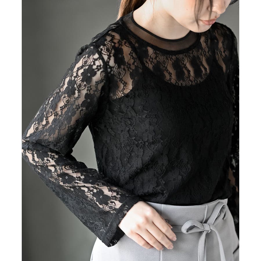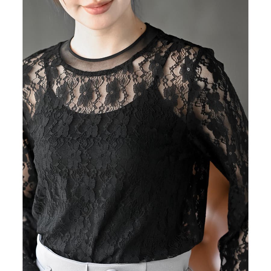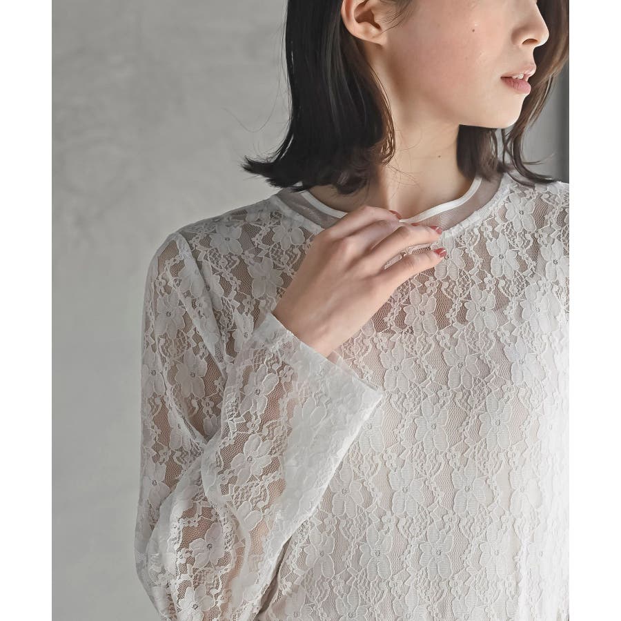 シアーネック総レースカットソー
