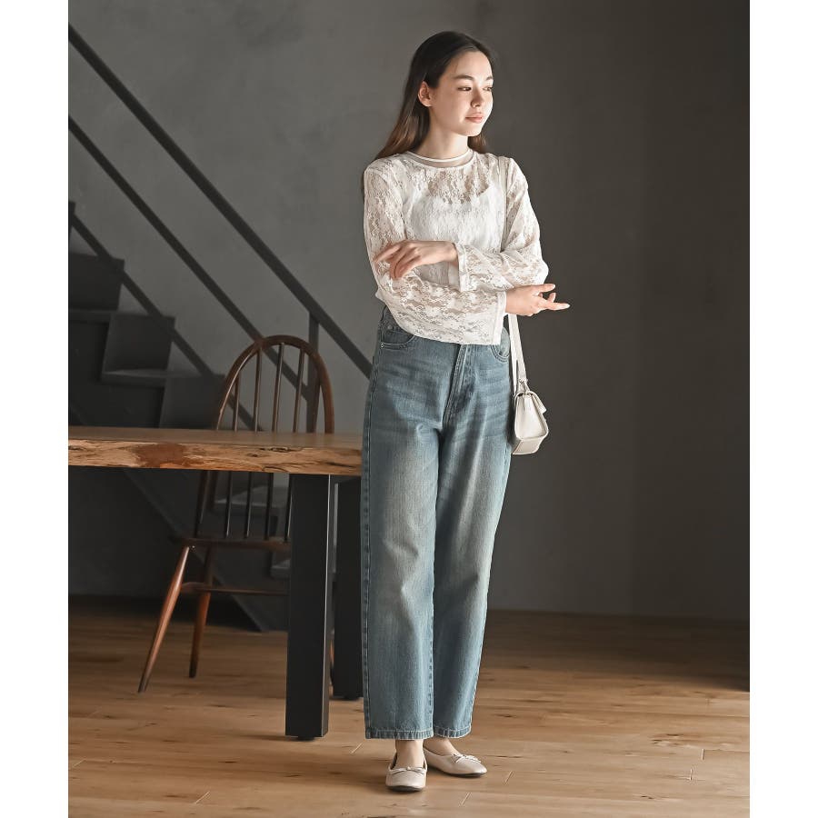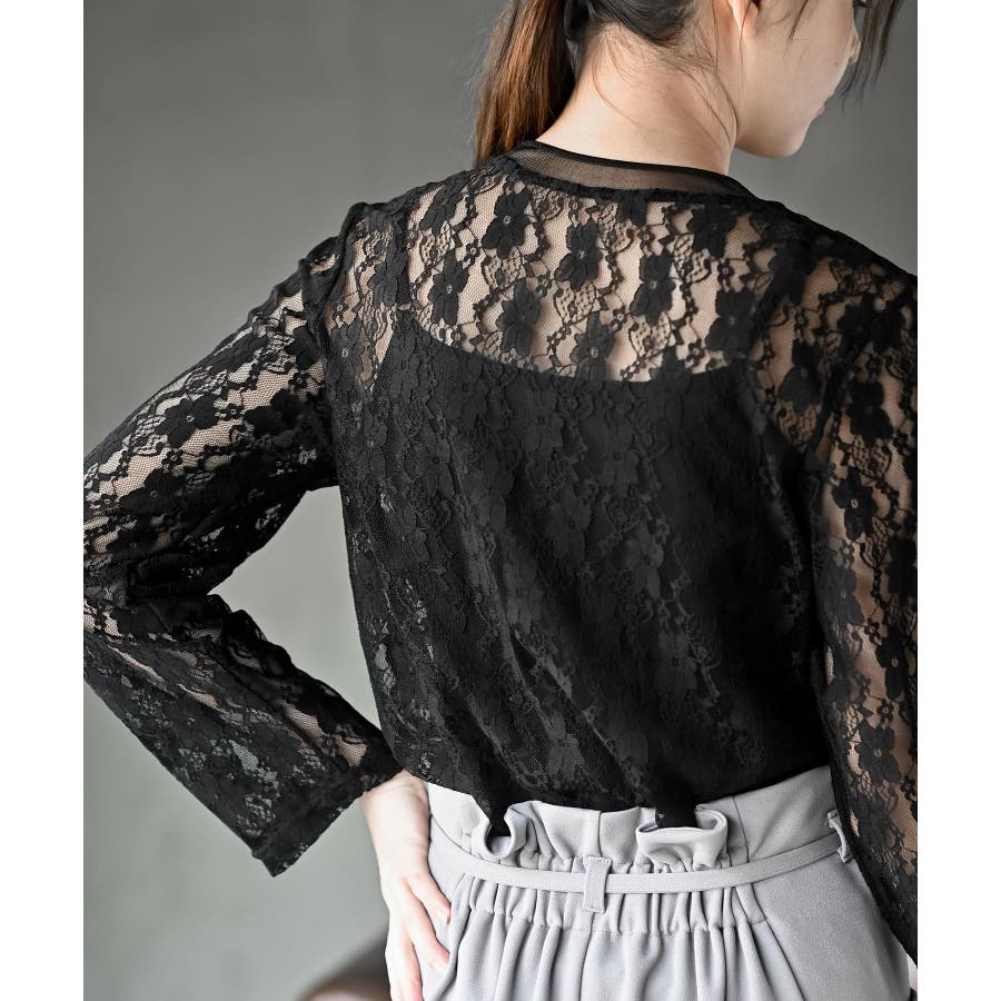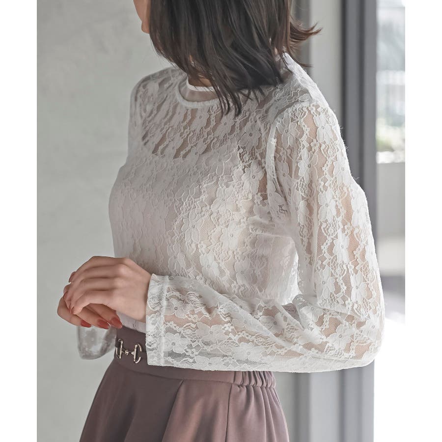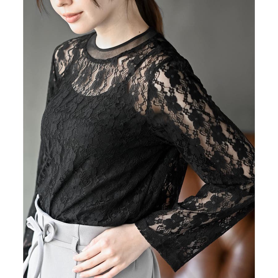 シアーネック総レースカットソー