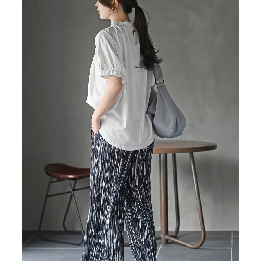 投稿日:2024.06.15首と袖口のギャザーがあまり見かけないデザインでオシャレな感じです。ハイネックもわりと緩めなのがイイですね。袖口は広すぎて中が見えたのでボタンで調節しました。