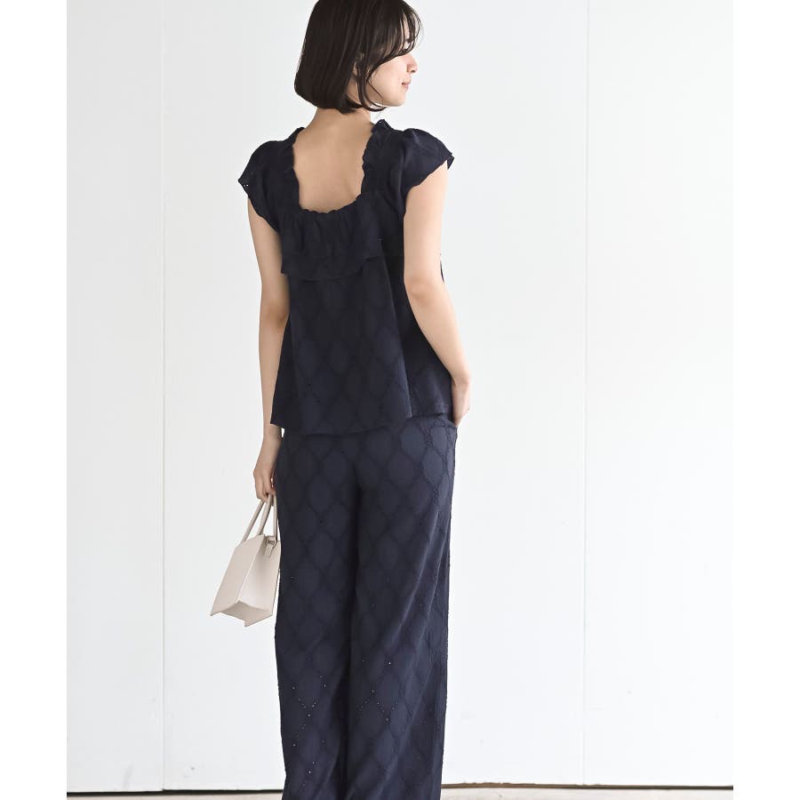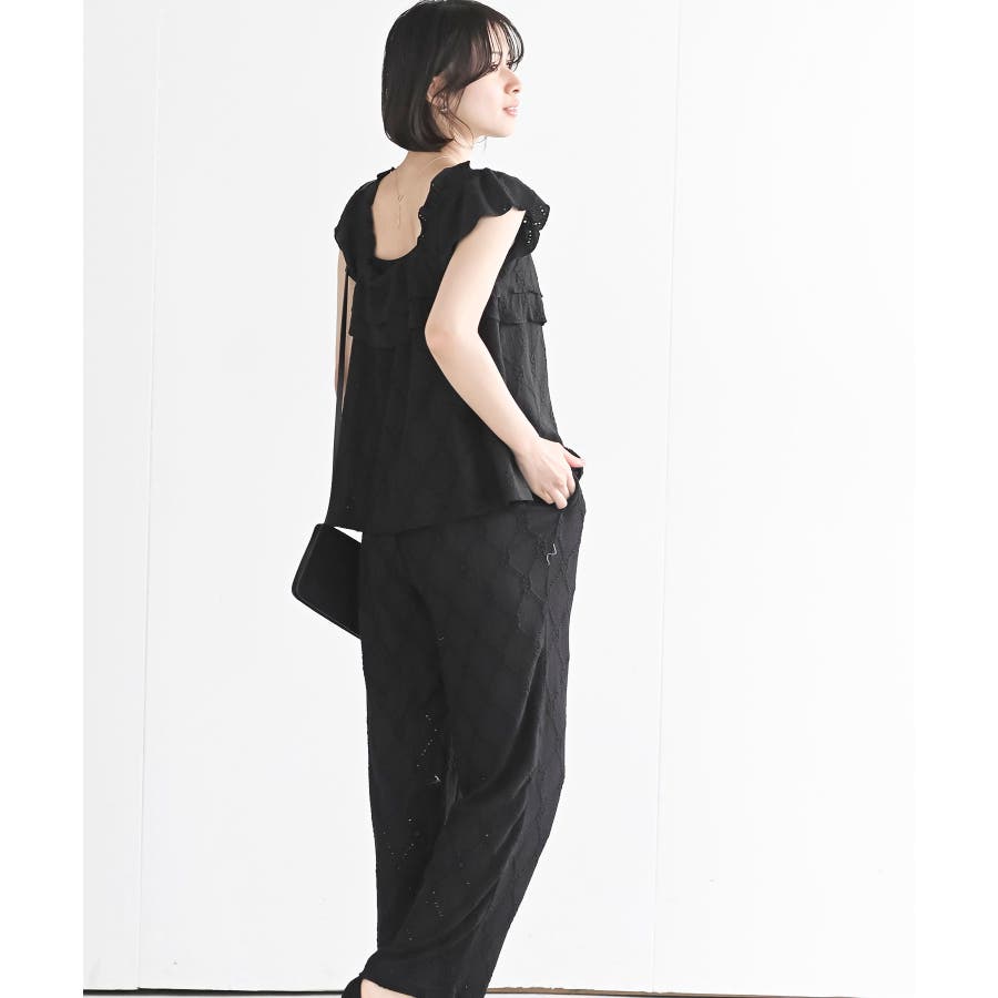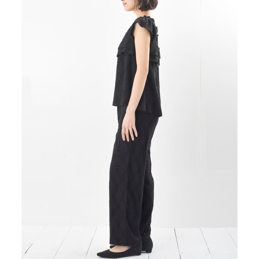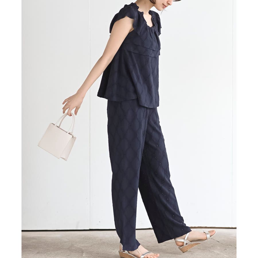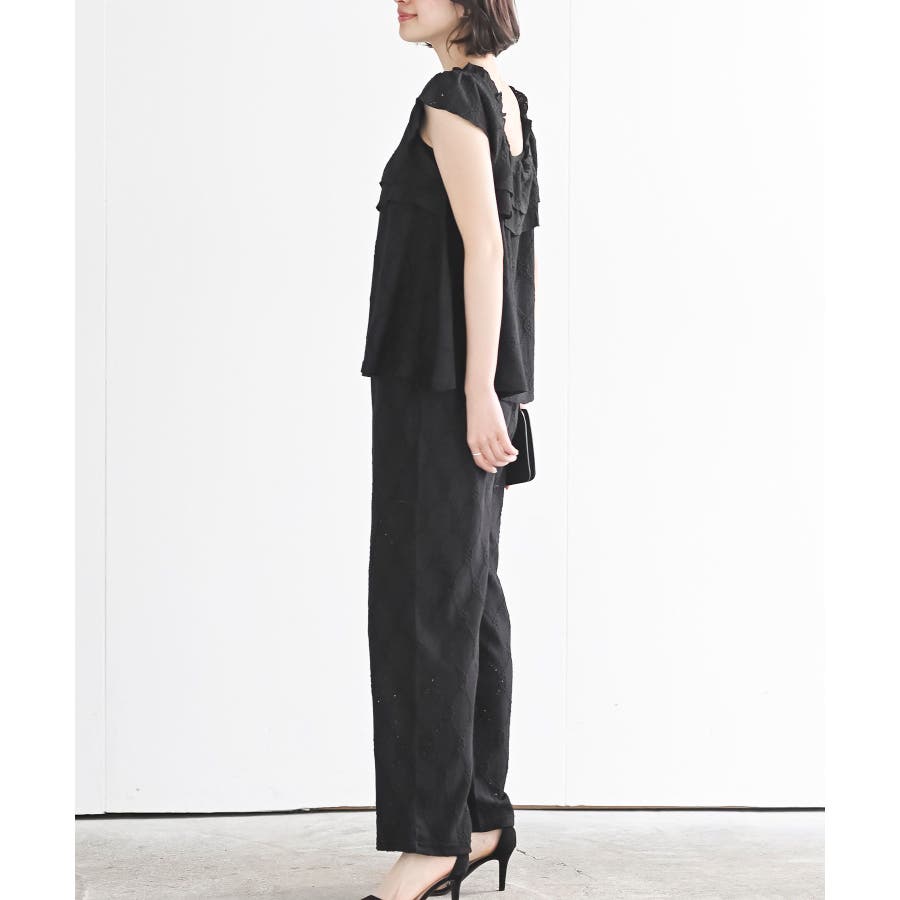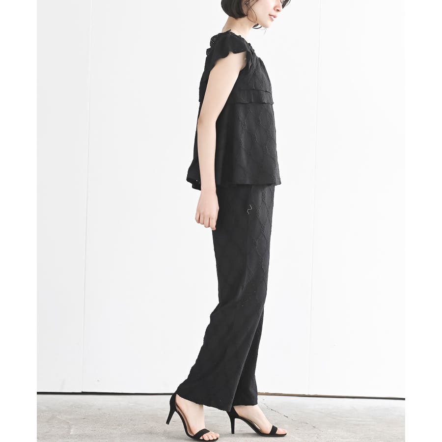 フリルブラウス×ワイドパンツレースセットアップ