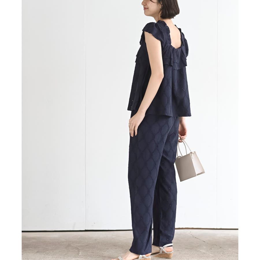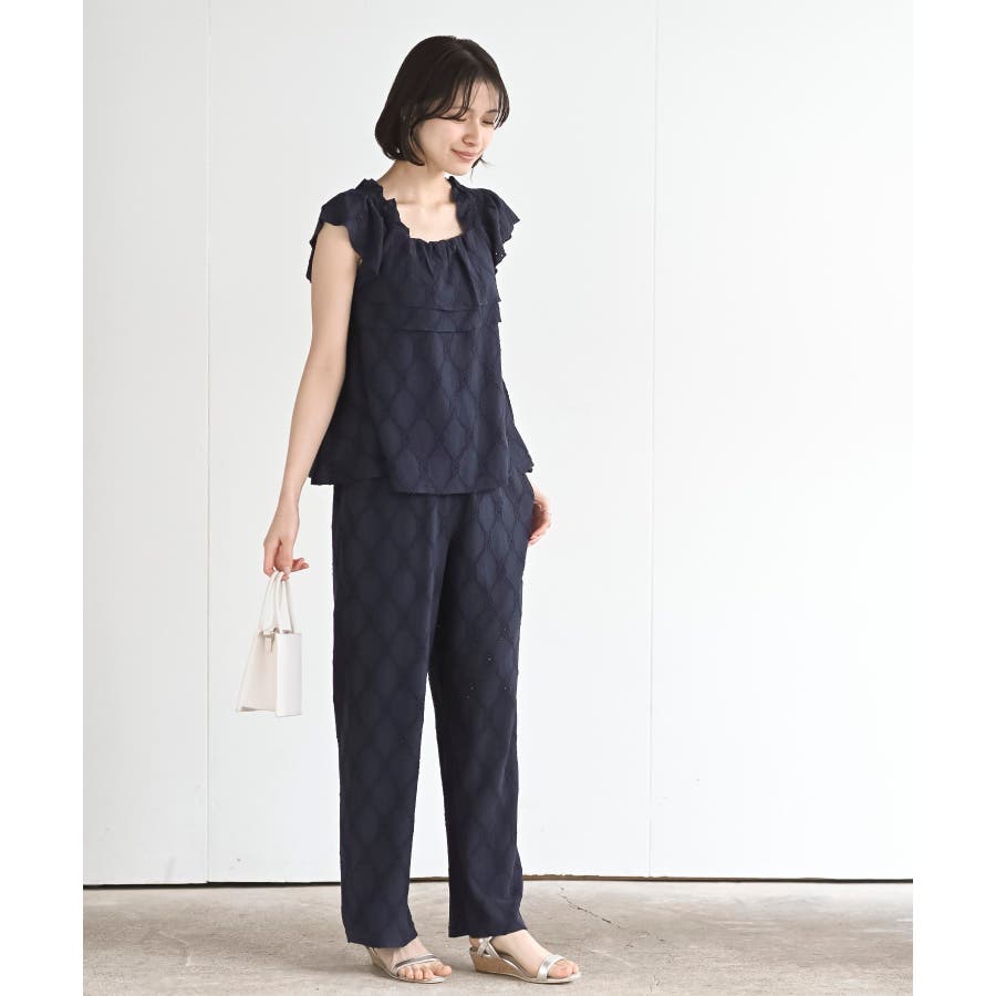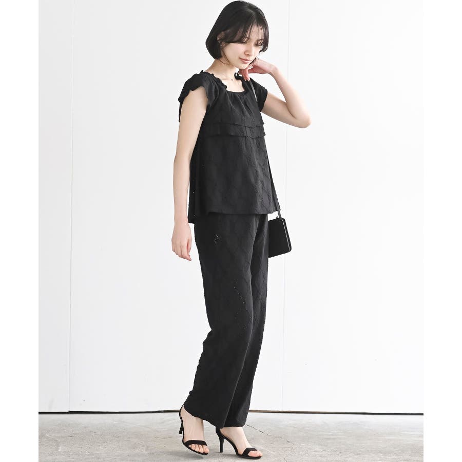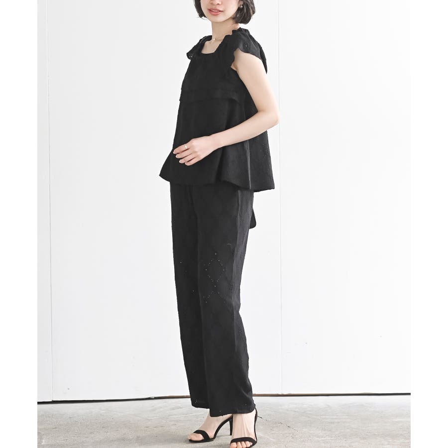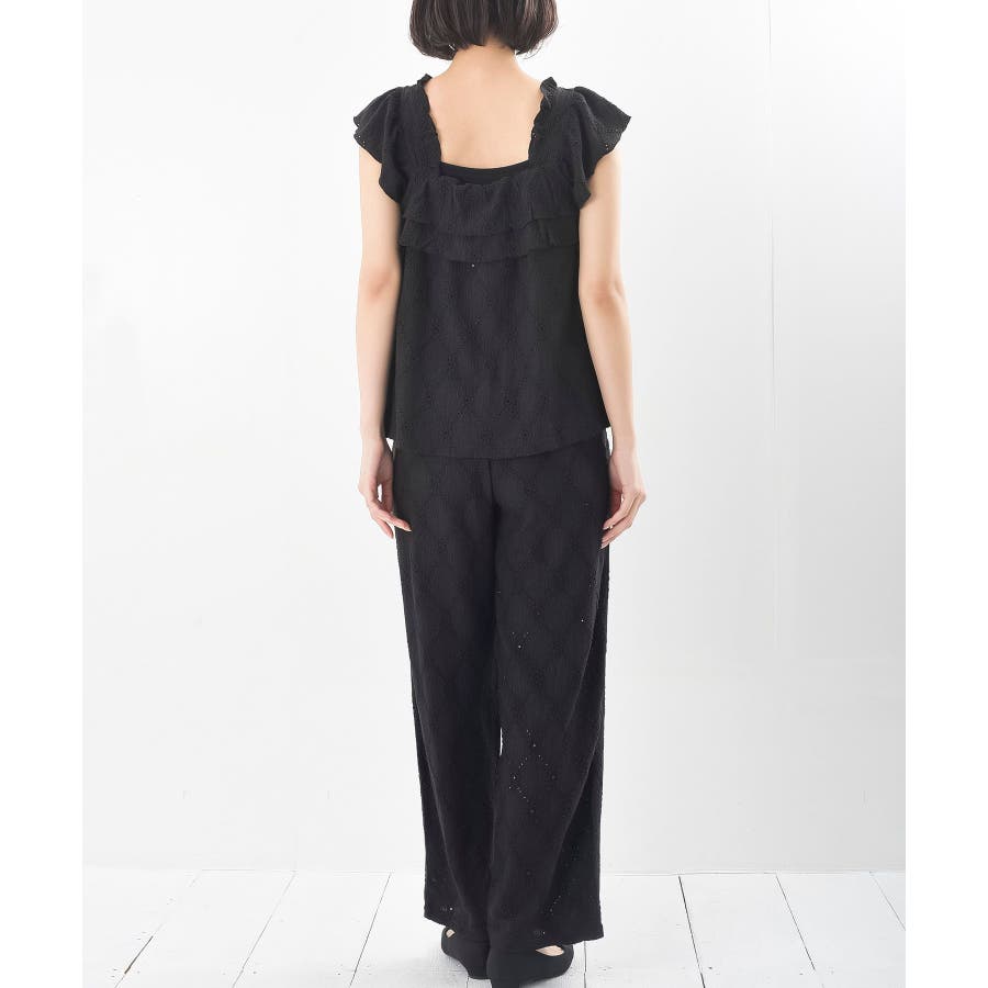 フリルブラウス×ワイドパンツレースセットアップ