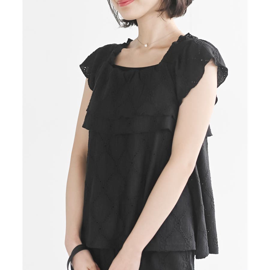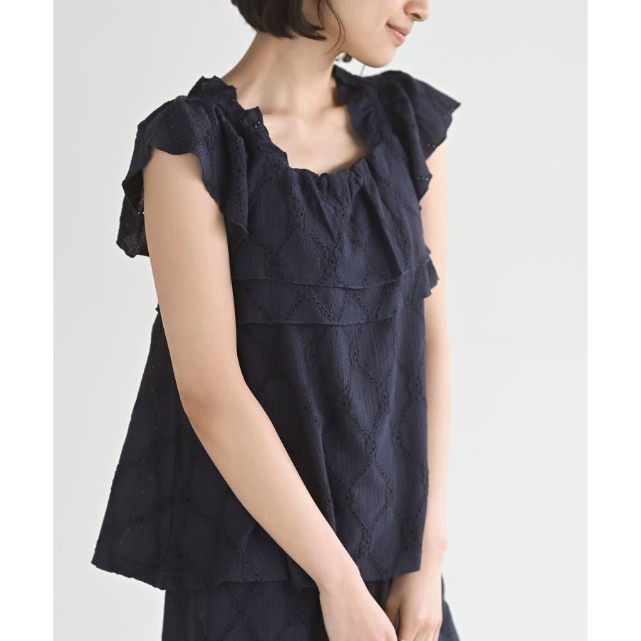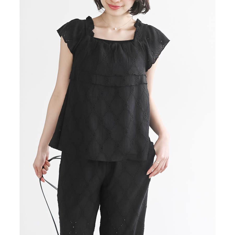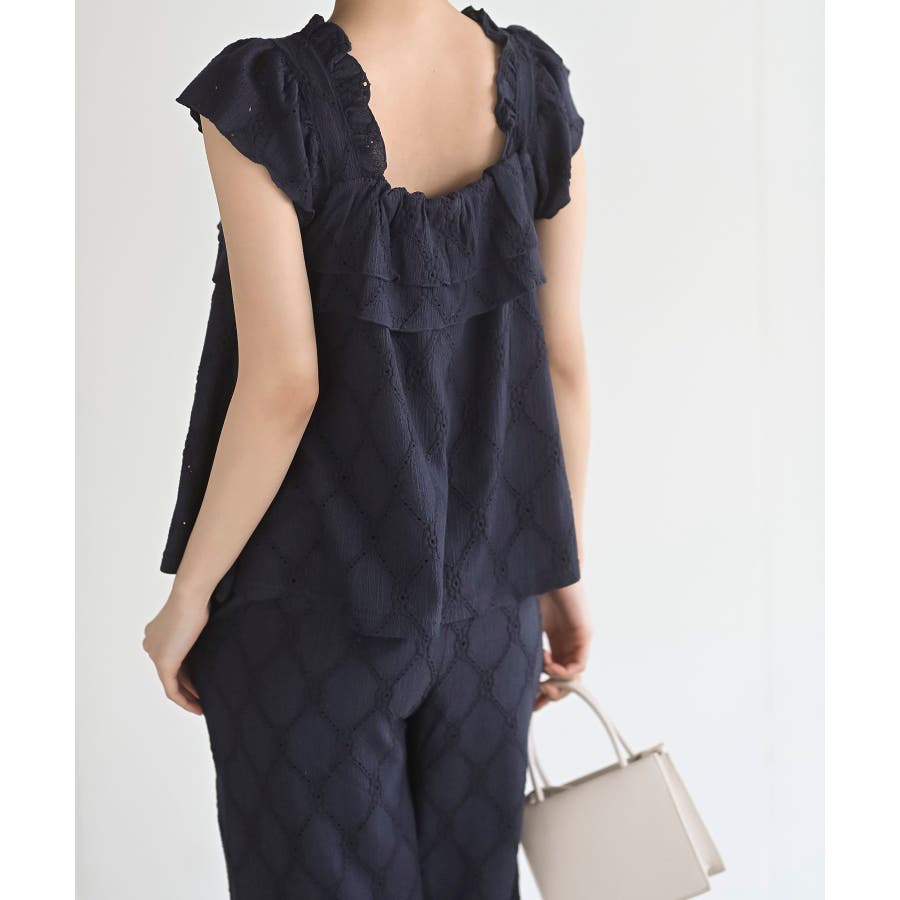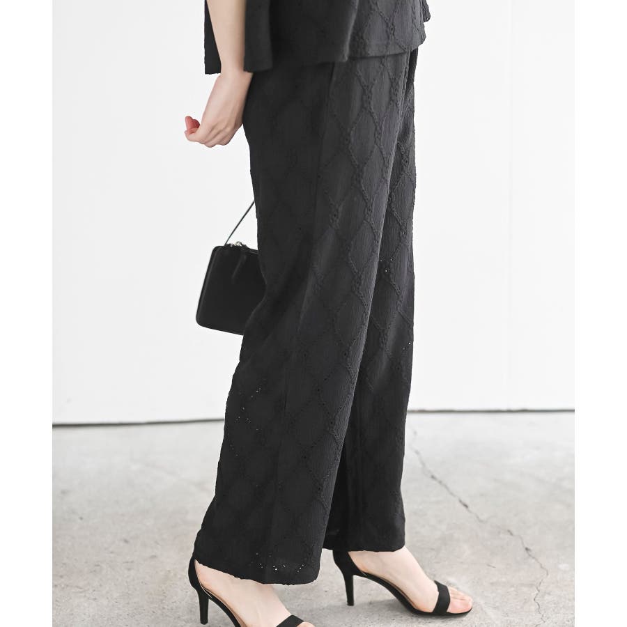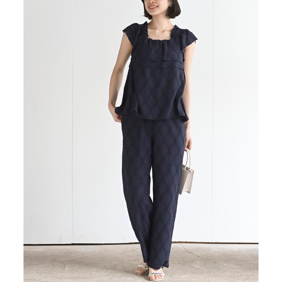 フリルブラウス×ワイドパンツレースセットアップ