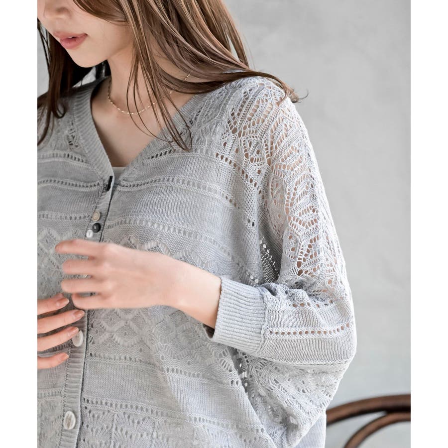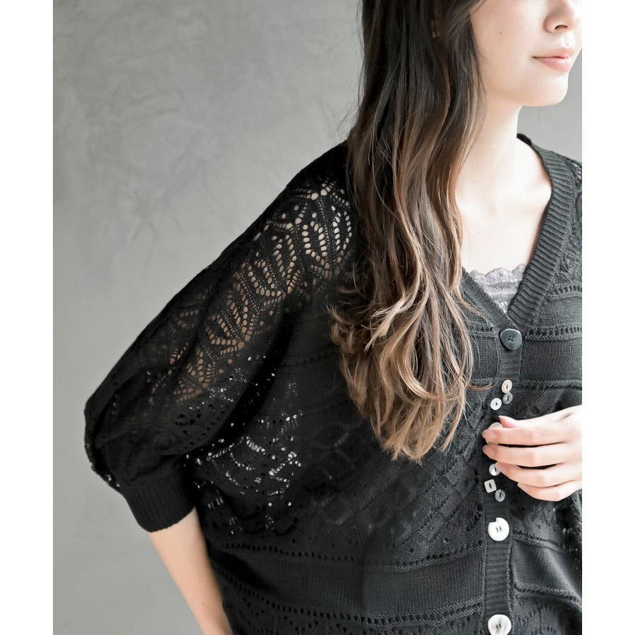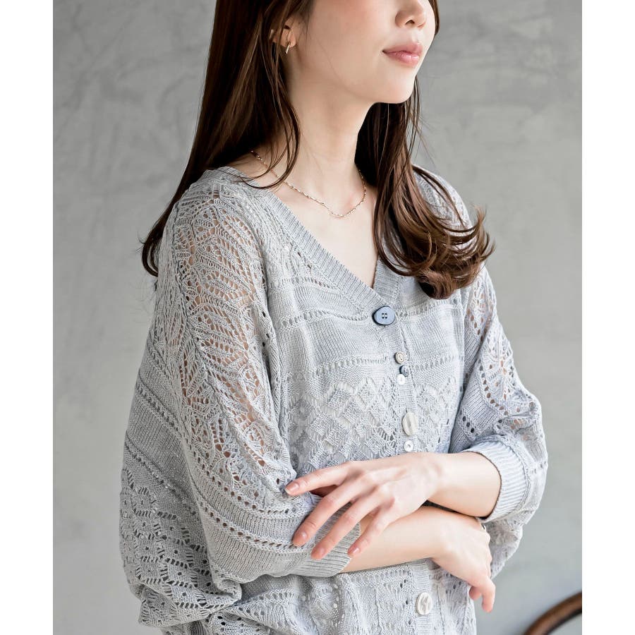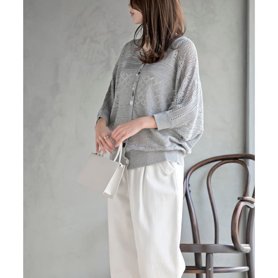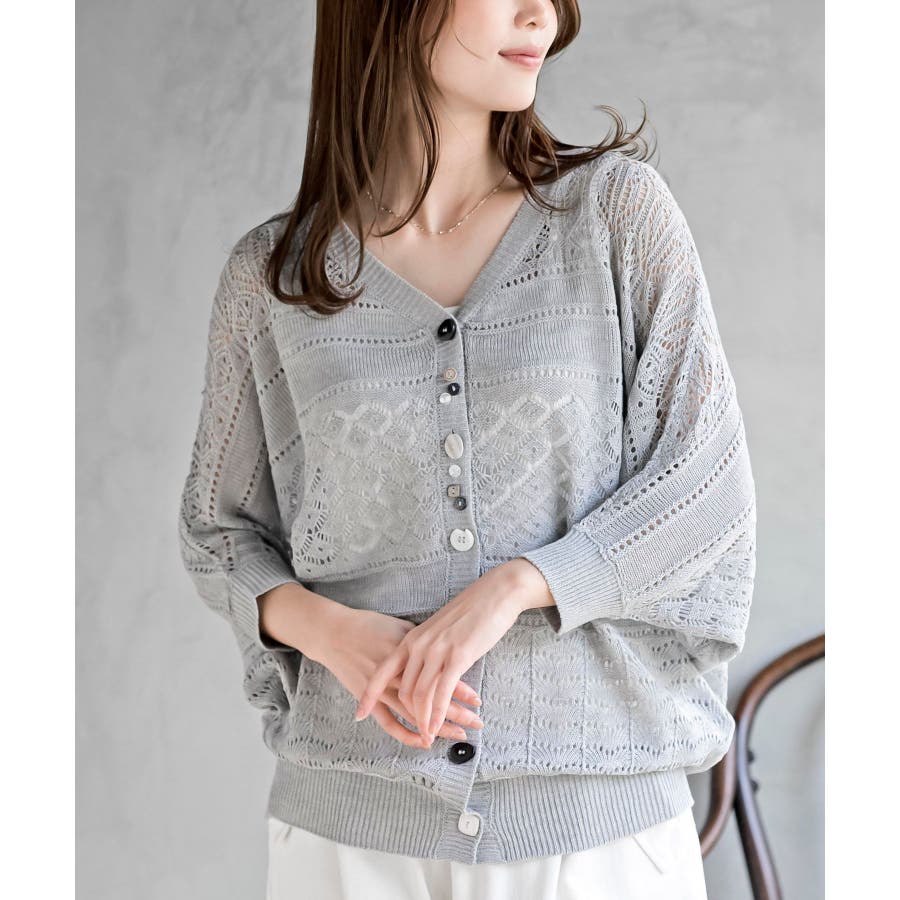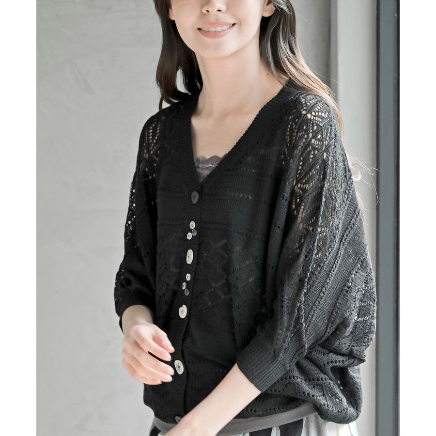 多釦透かしドルマンニットカーディガン