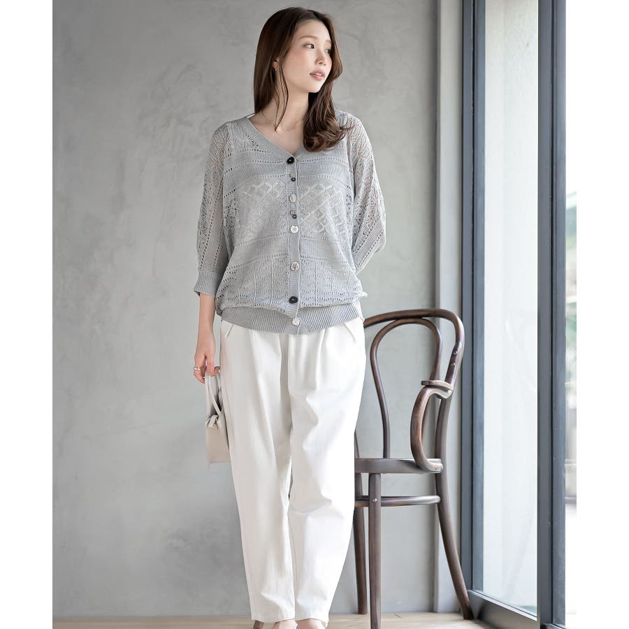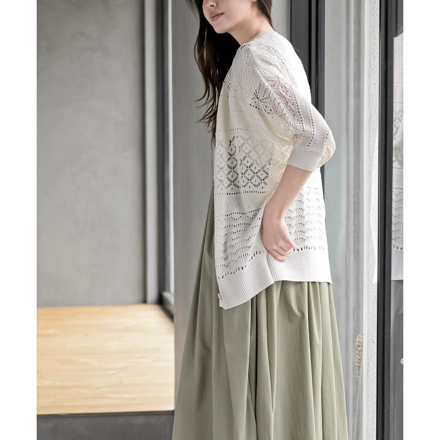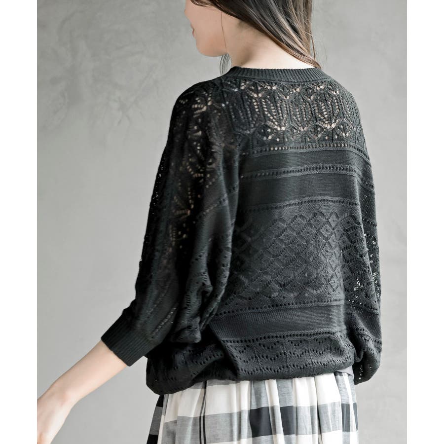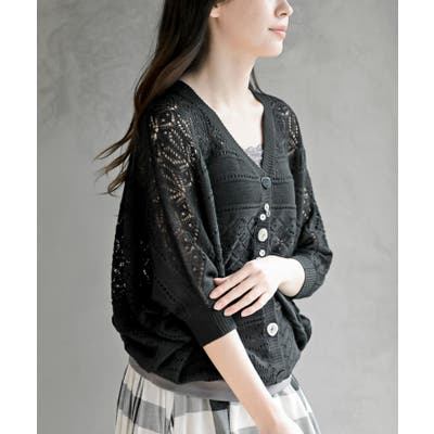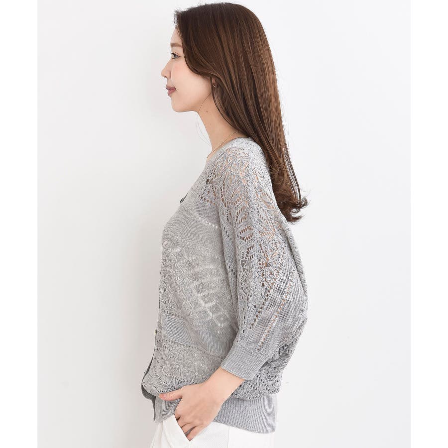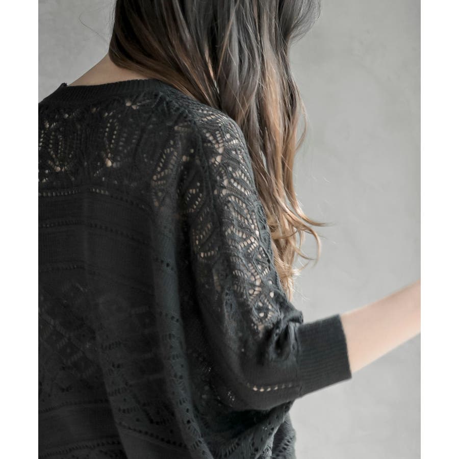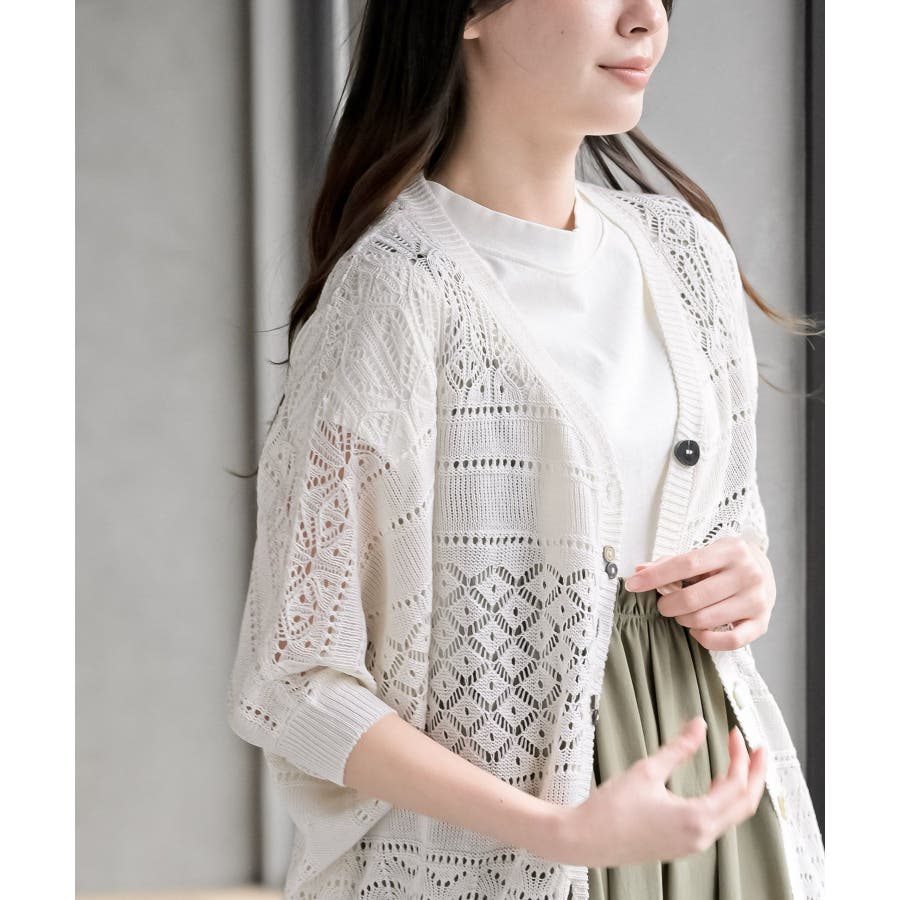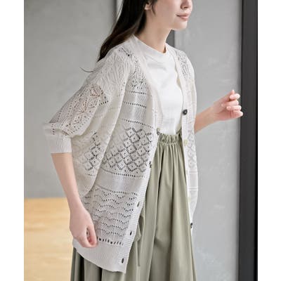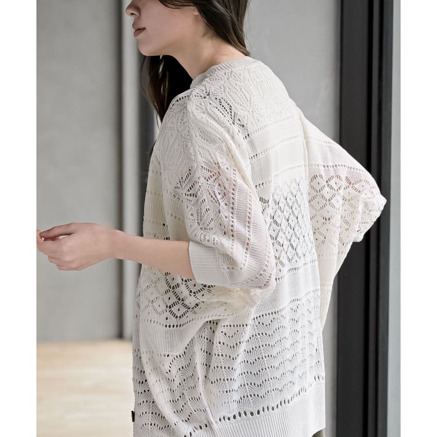 多釦透かしドルマンニットカーディガン