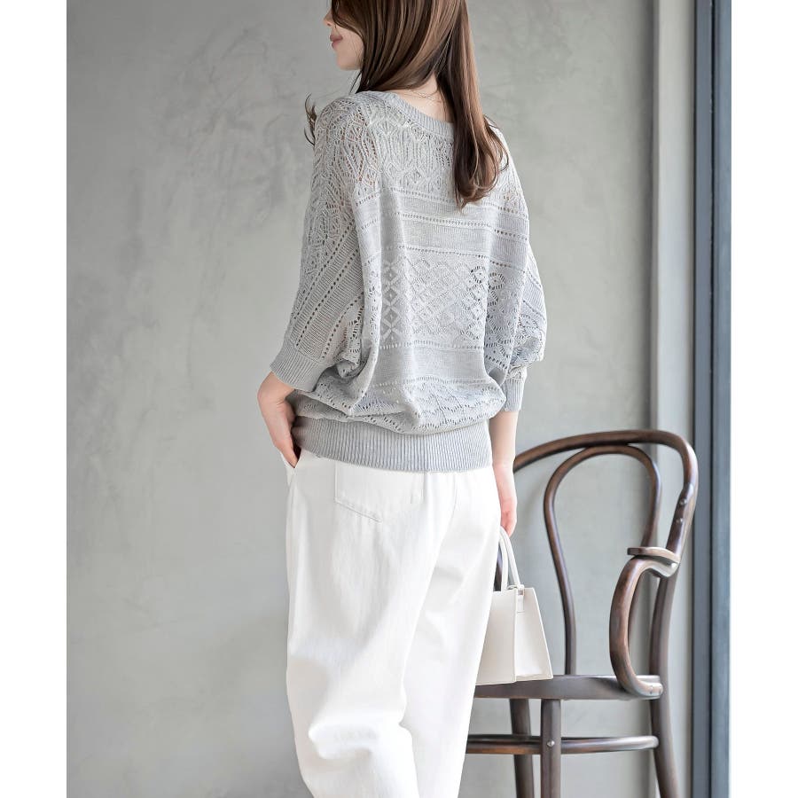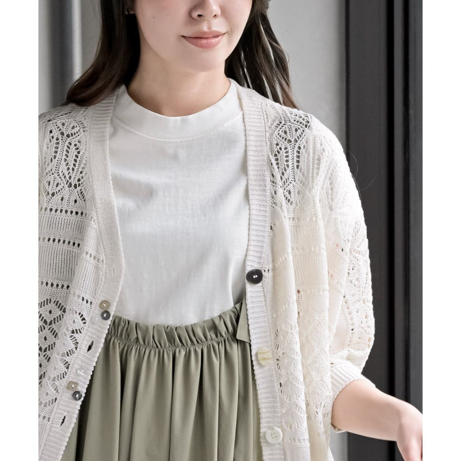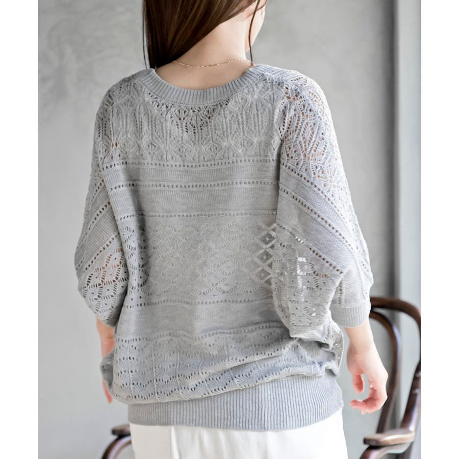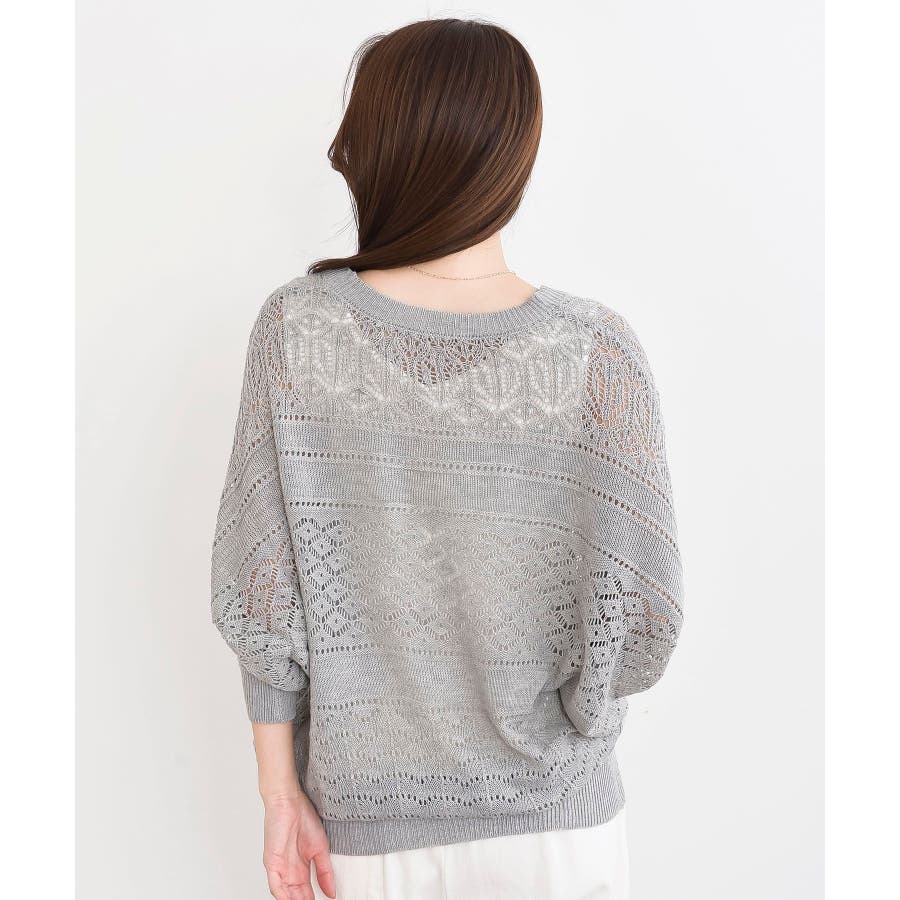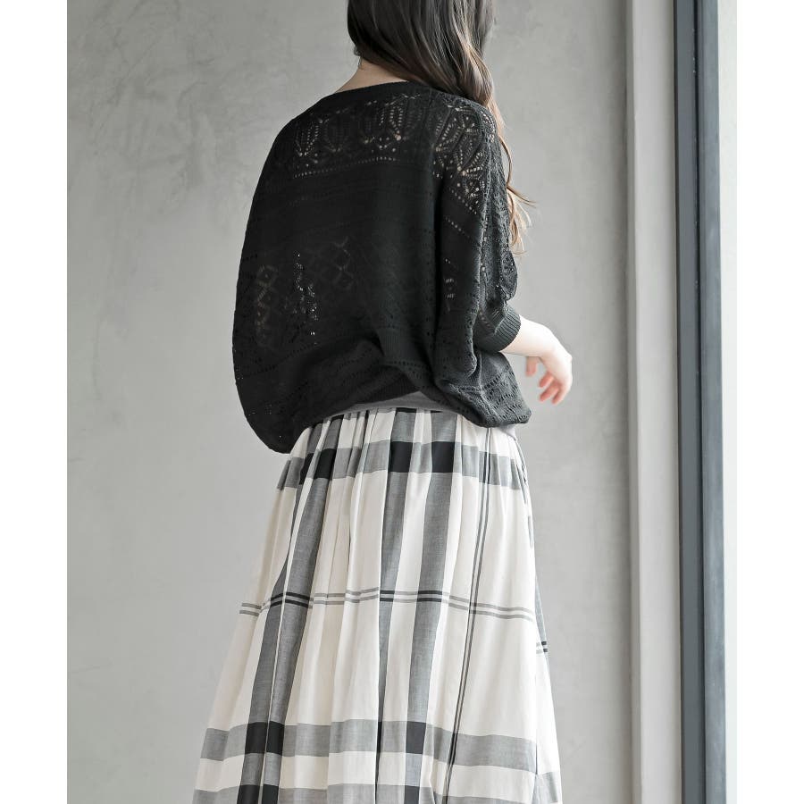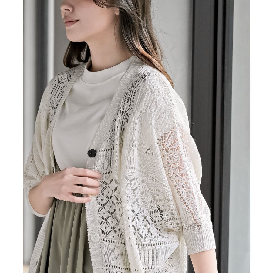 多釦透かしドルマンニットカーディガン