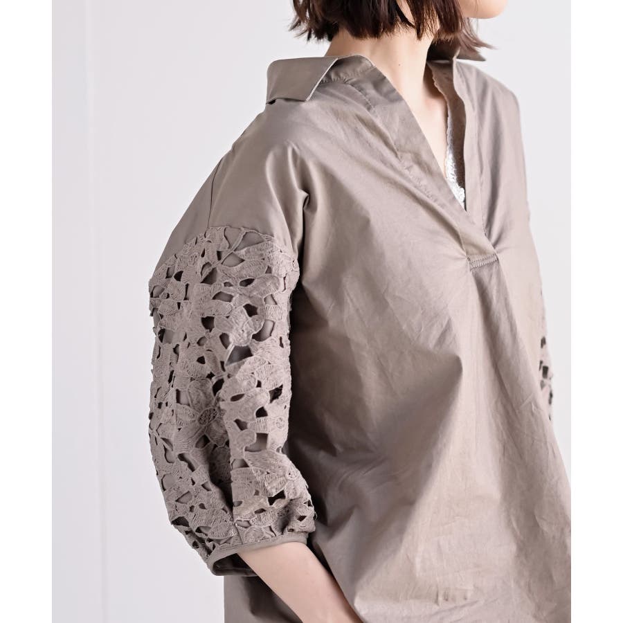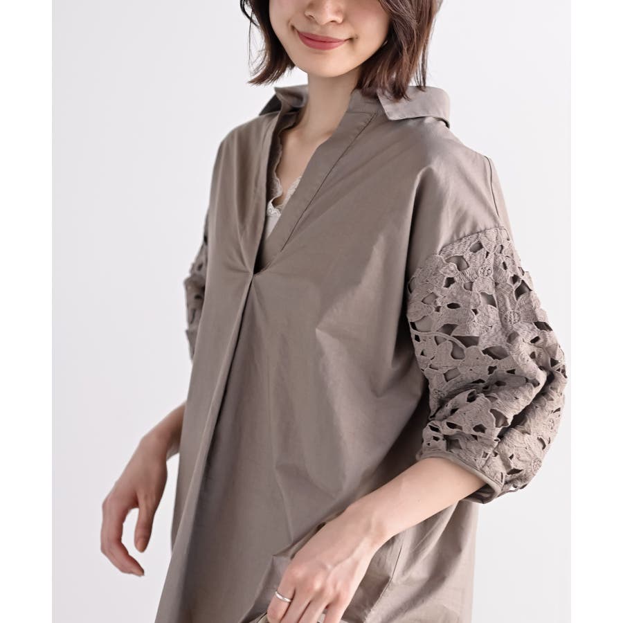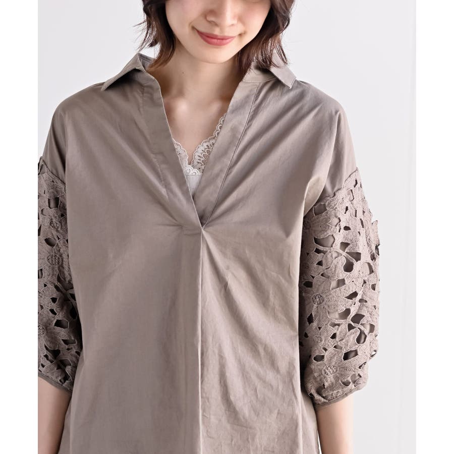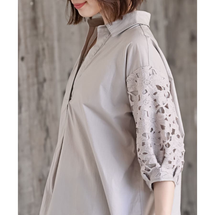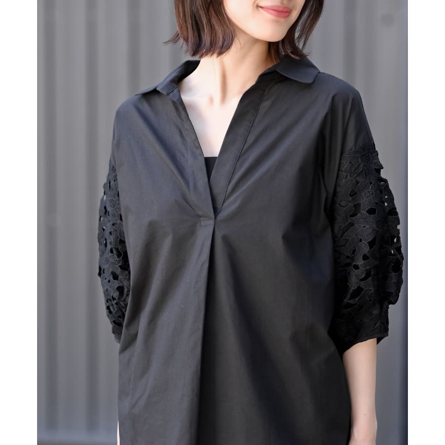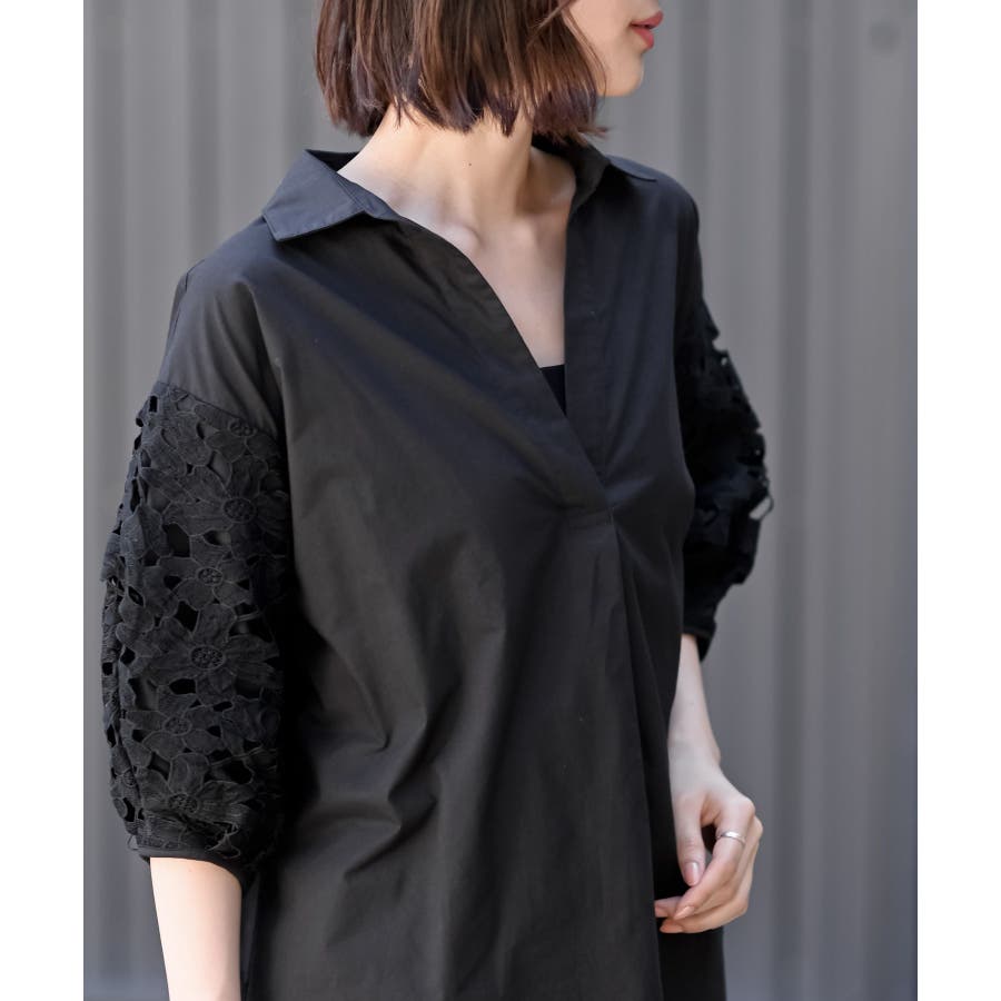 レース7分袖スキッパーチュニック