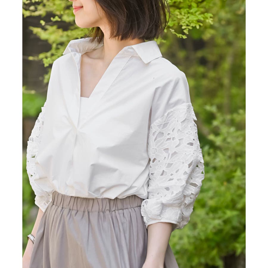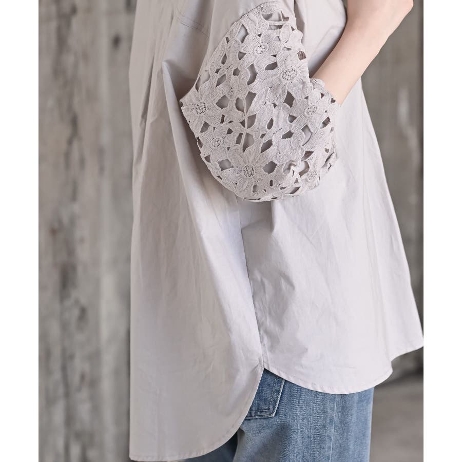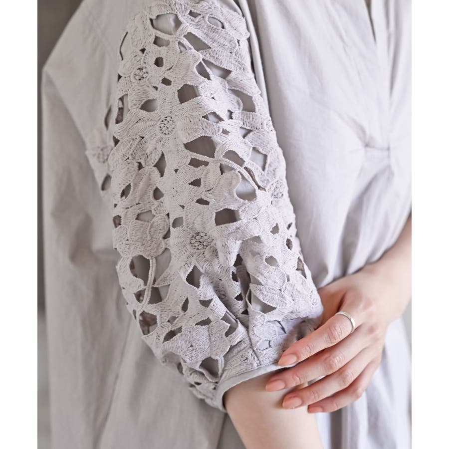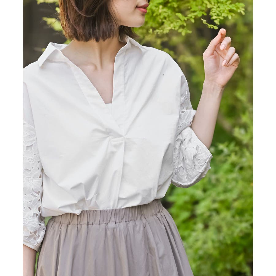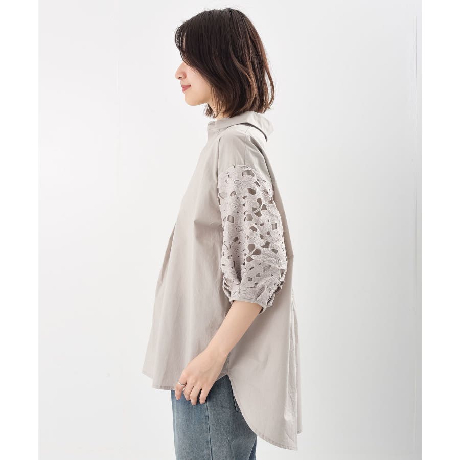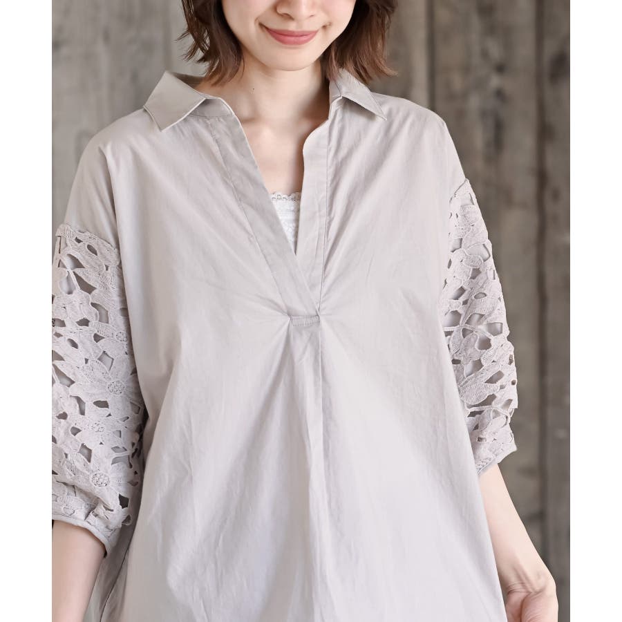 レース7分袖スキッパーチュニック