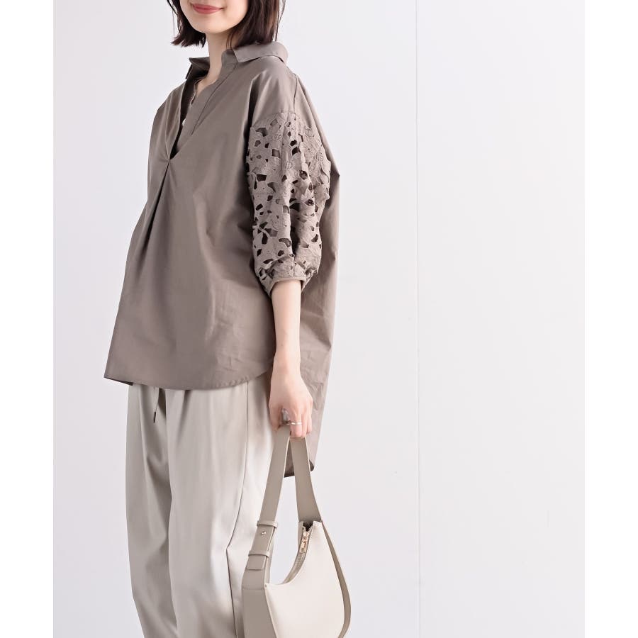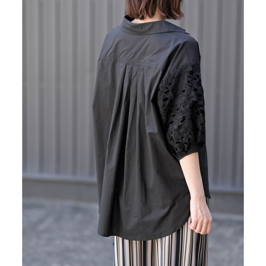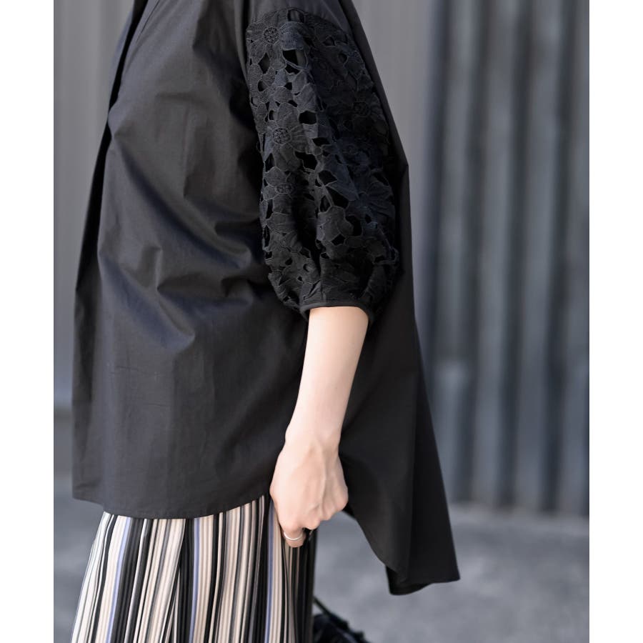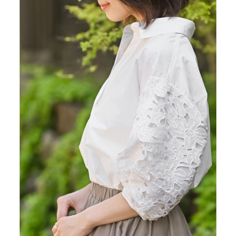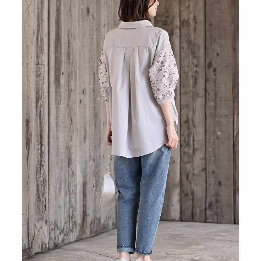 レース7分袖スキッパーチュニック