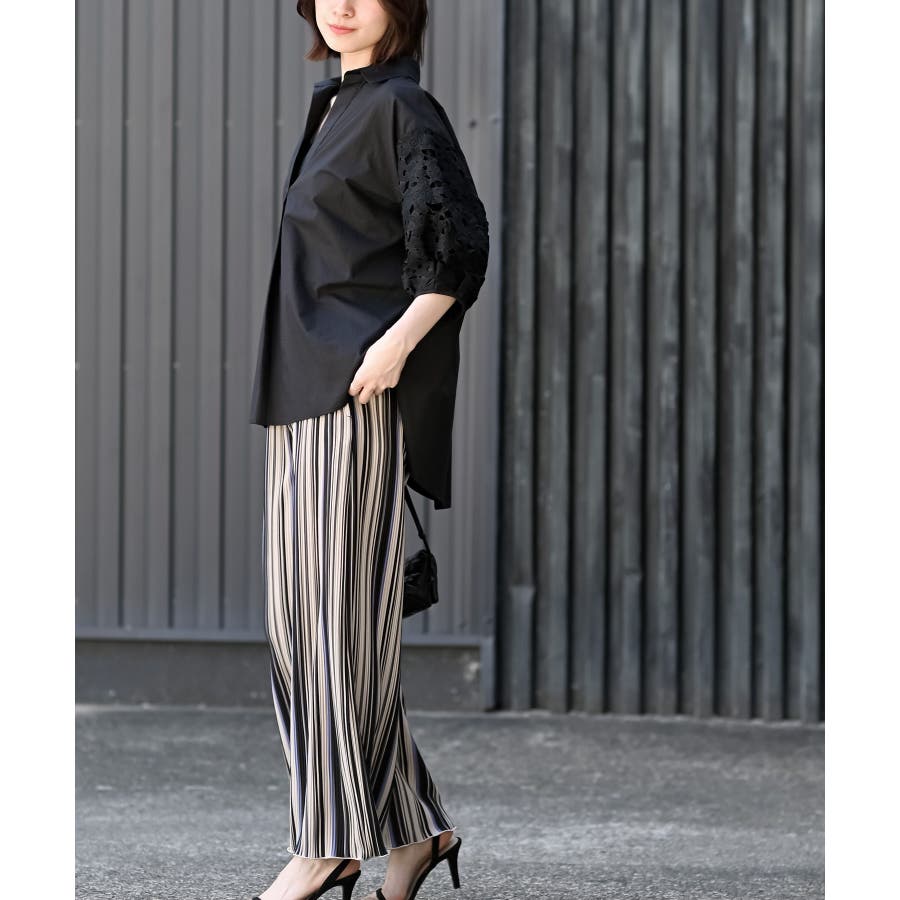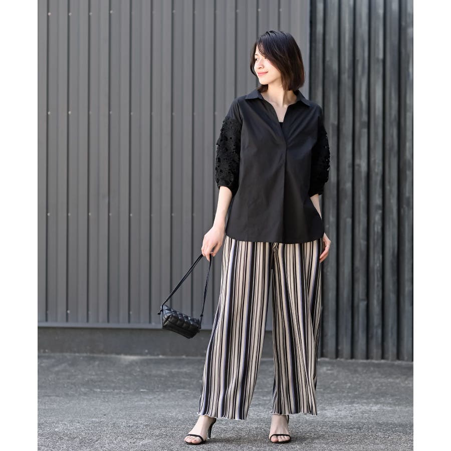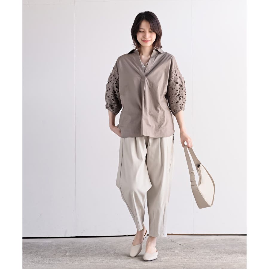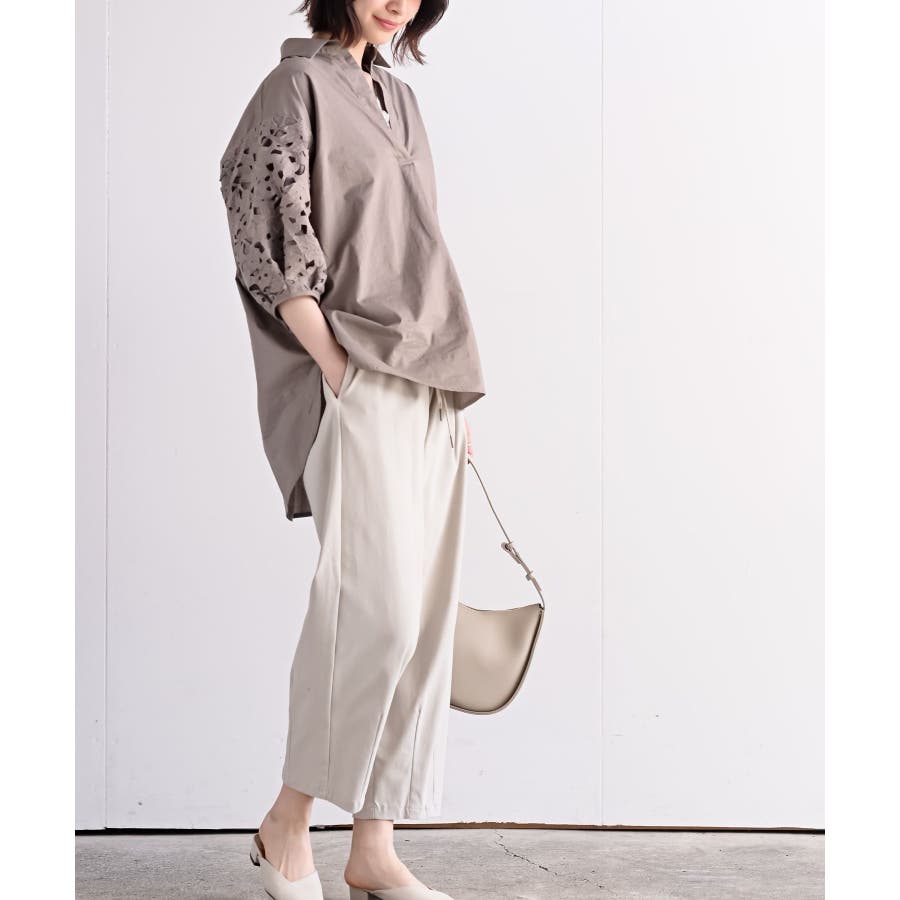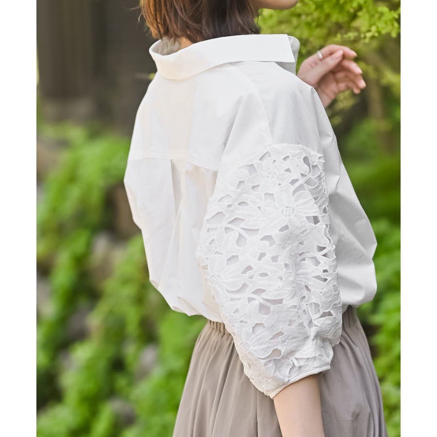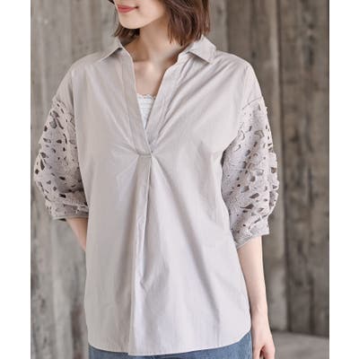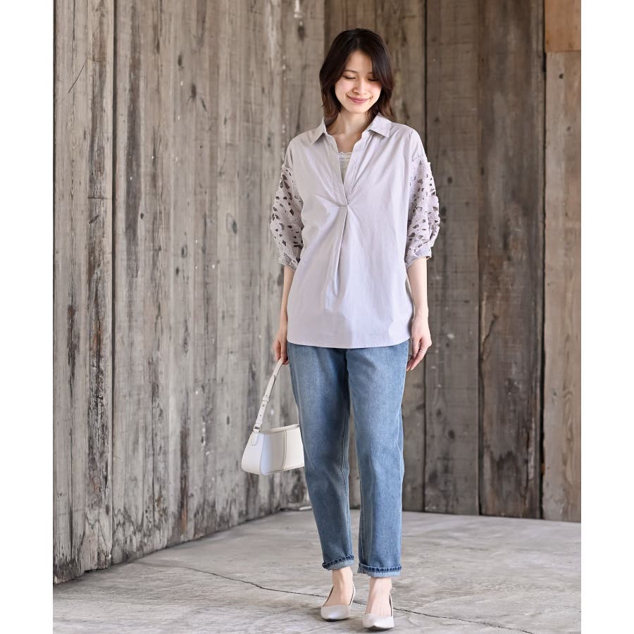 レース7分袖スキッパーチュニック
