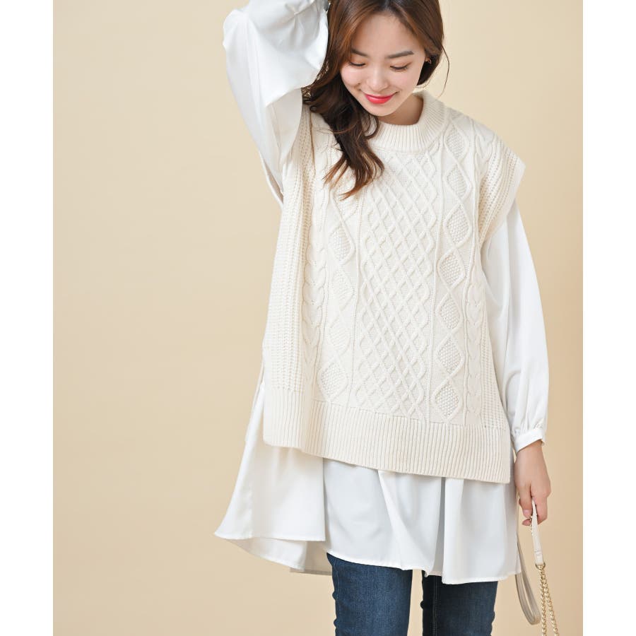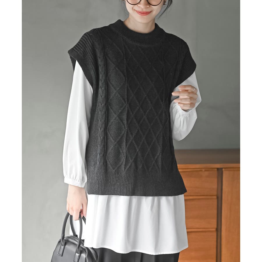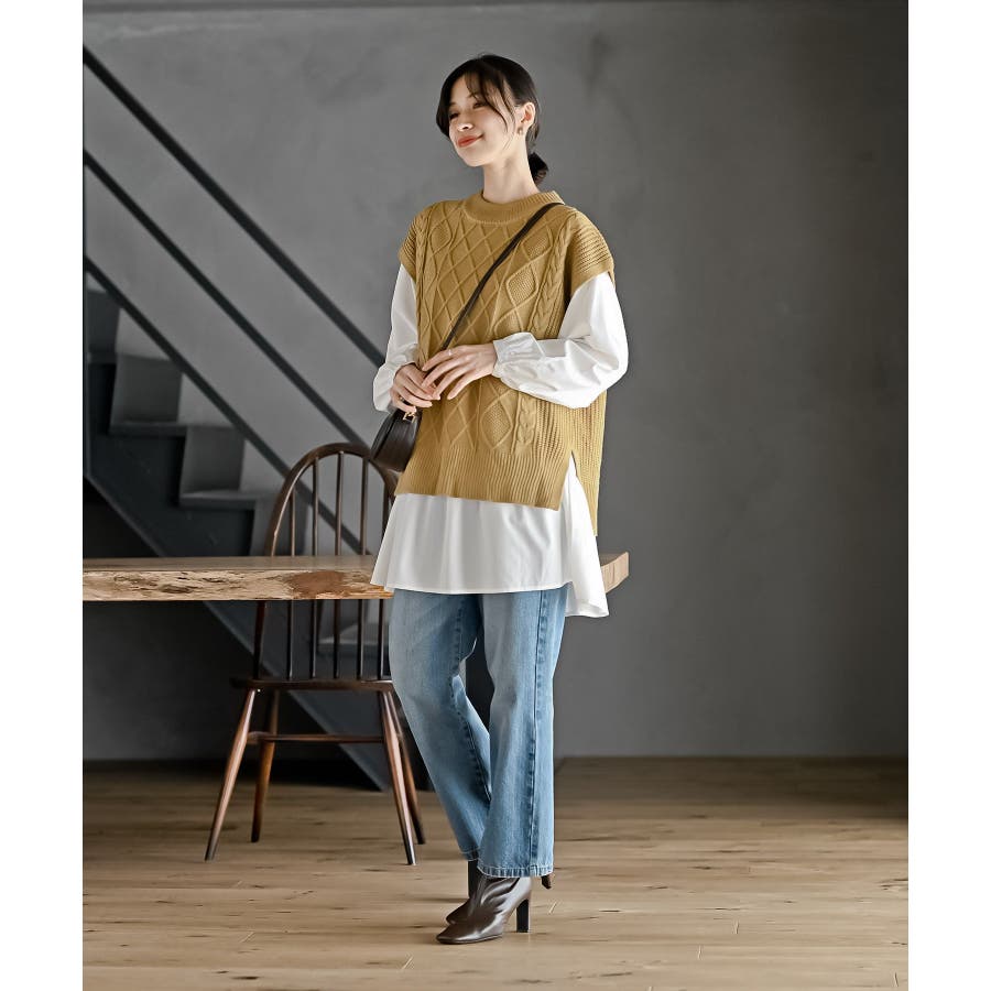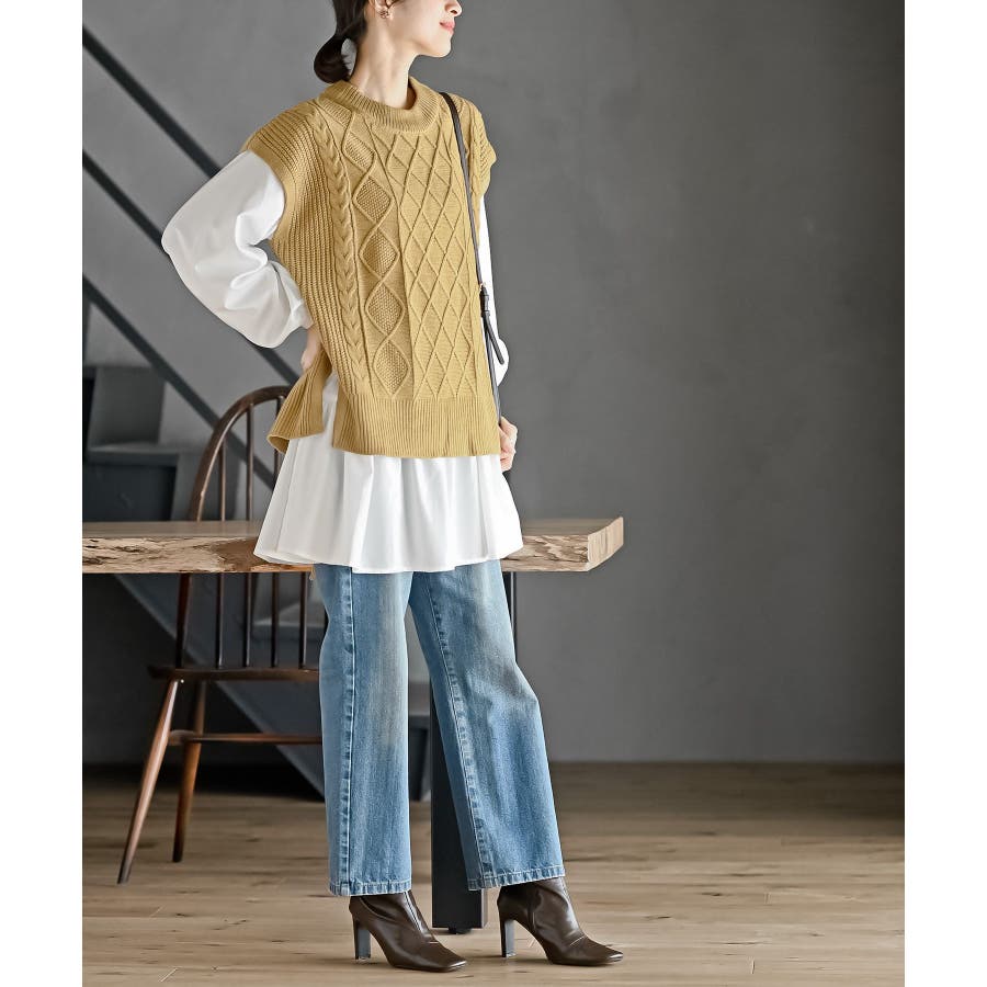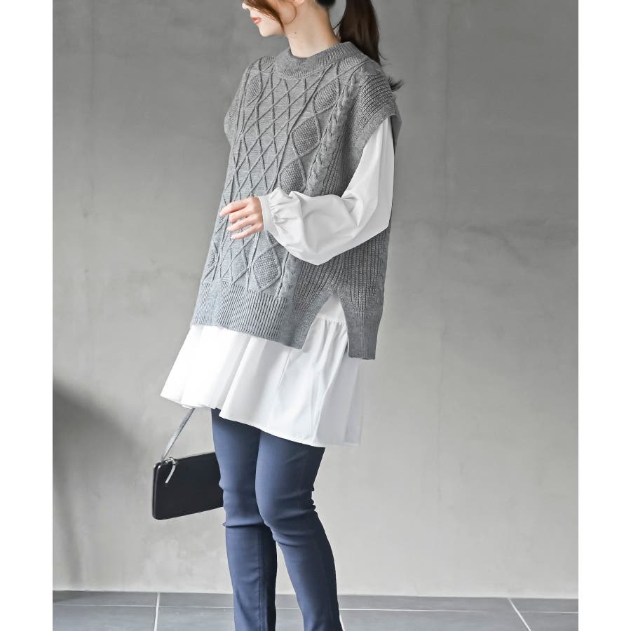 ニットベストとブラウスを別の服にも合わせられるので色々着回しできて嬉しいです!