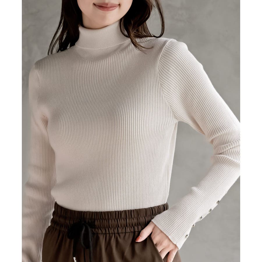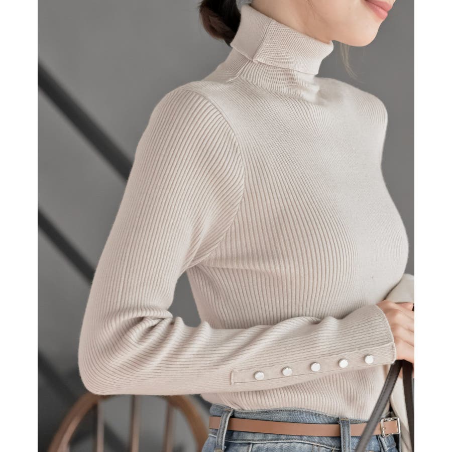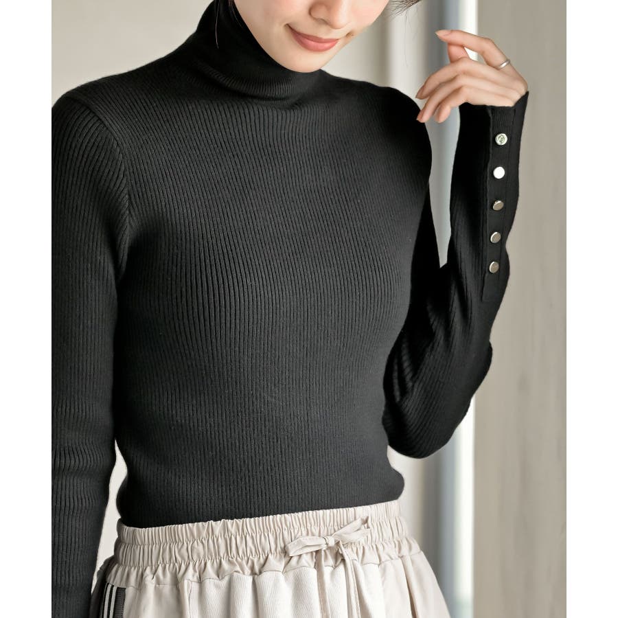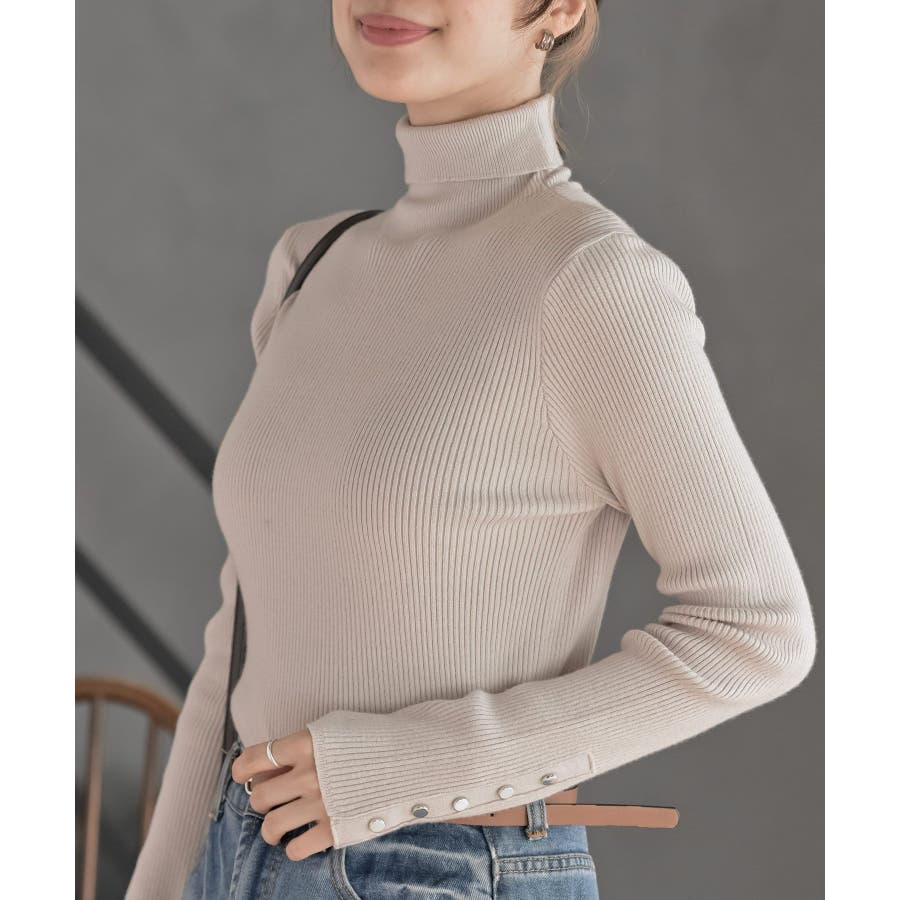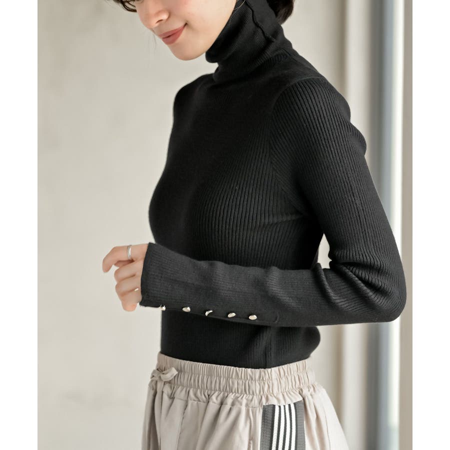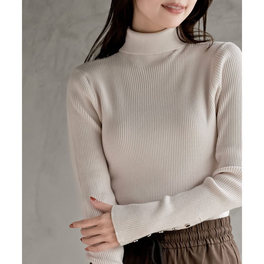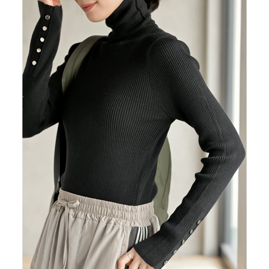 袖口ボタンタートルリブニットプルオーバー