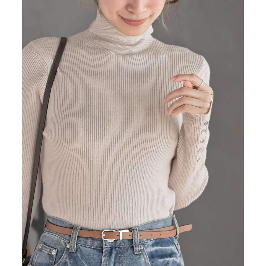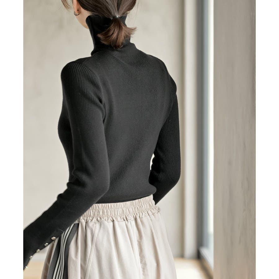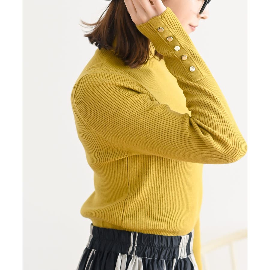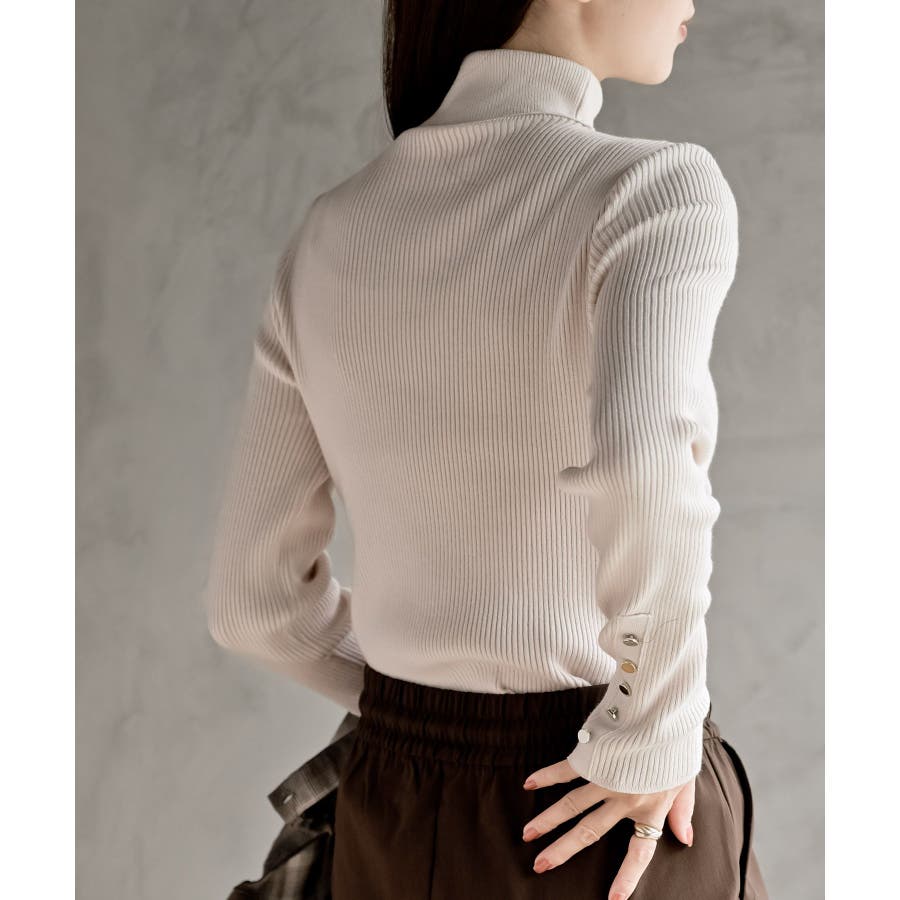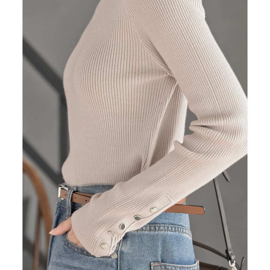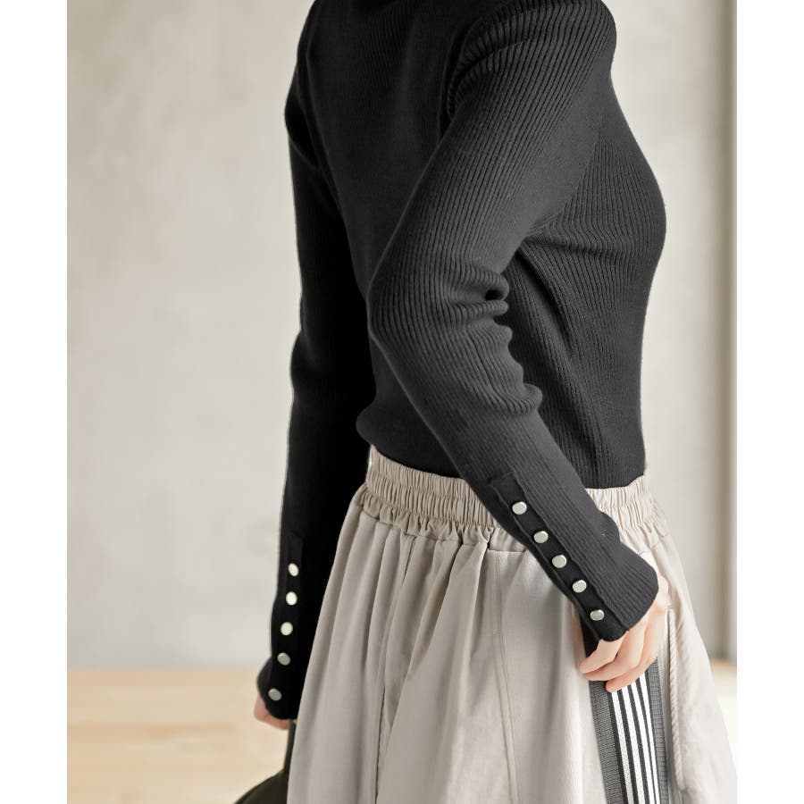 袖口ボタンタートルリブニットプルオーバー