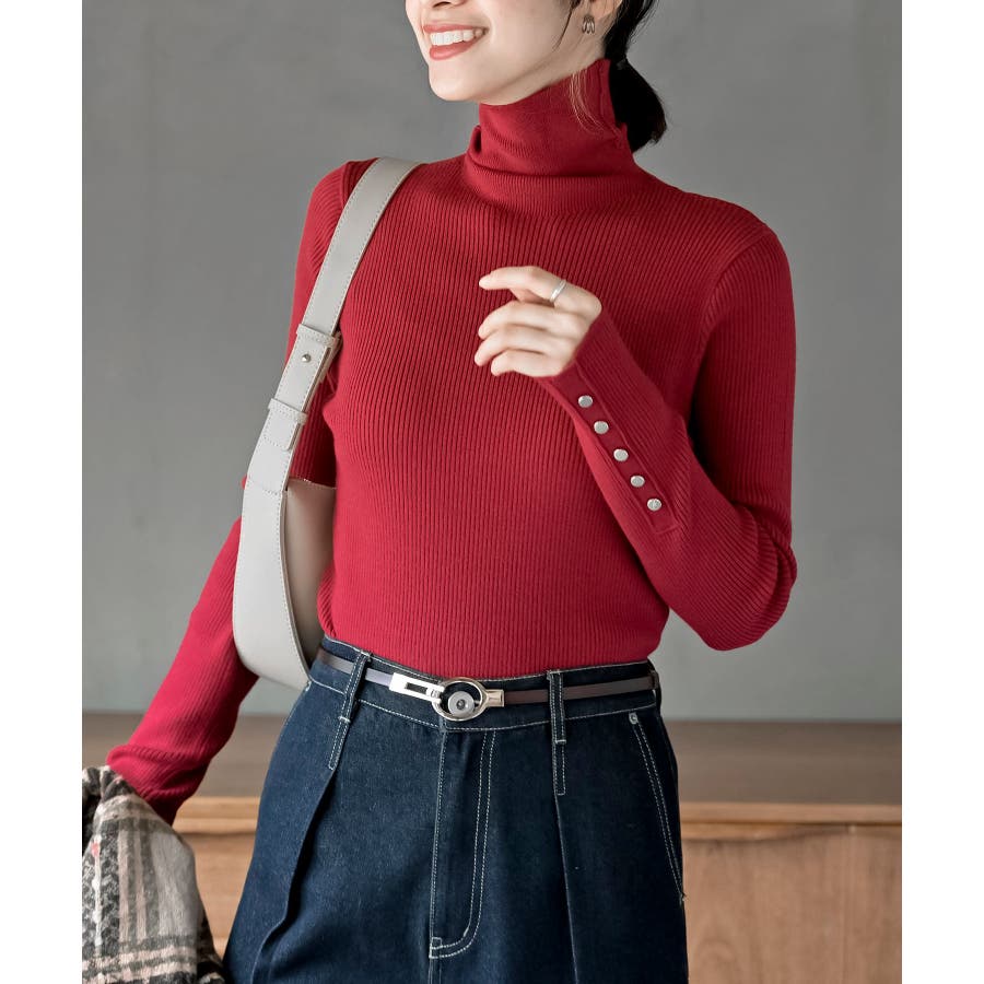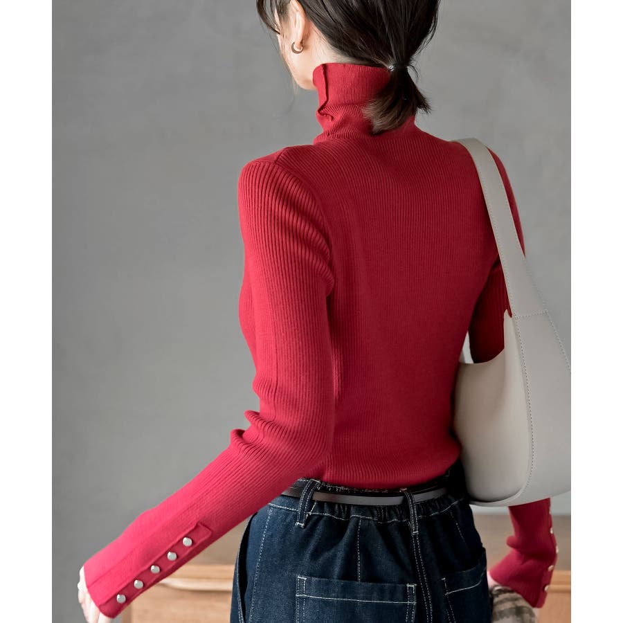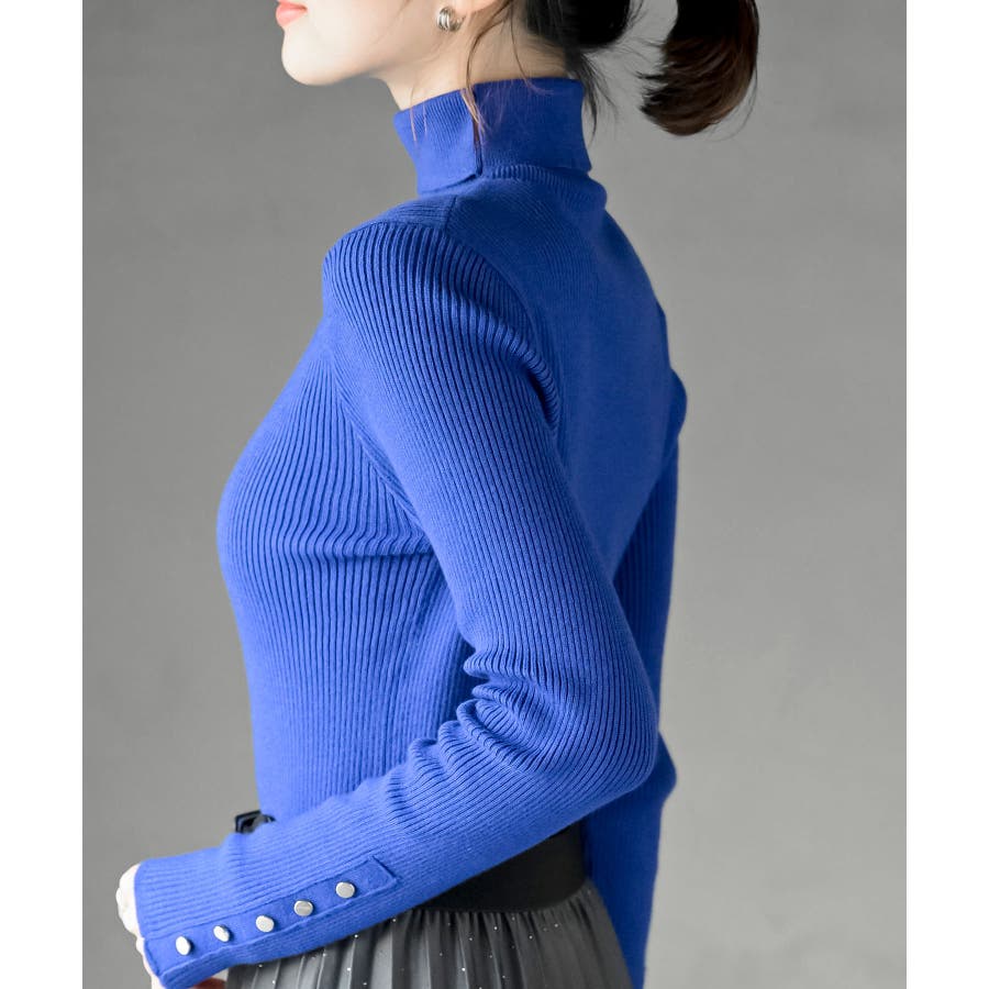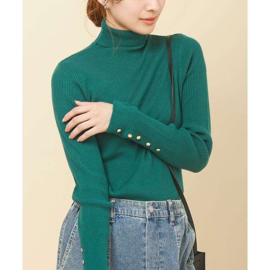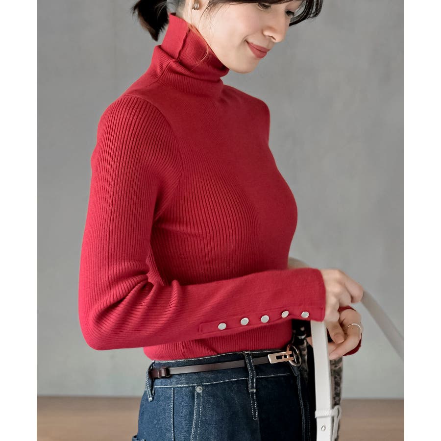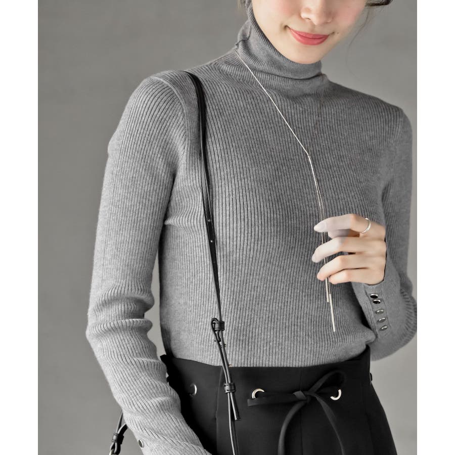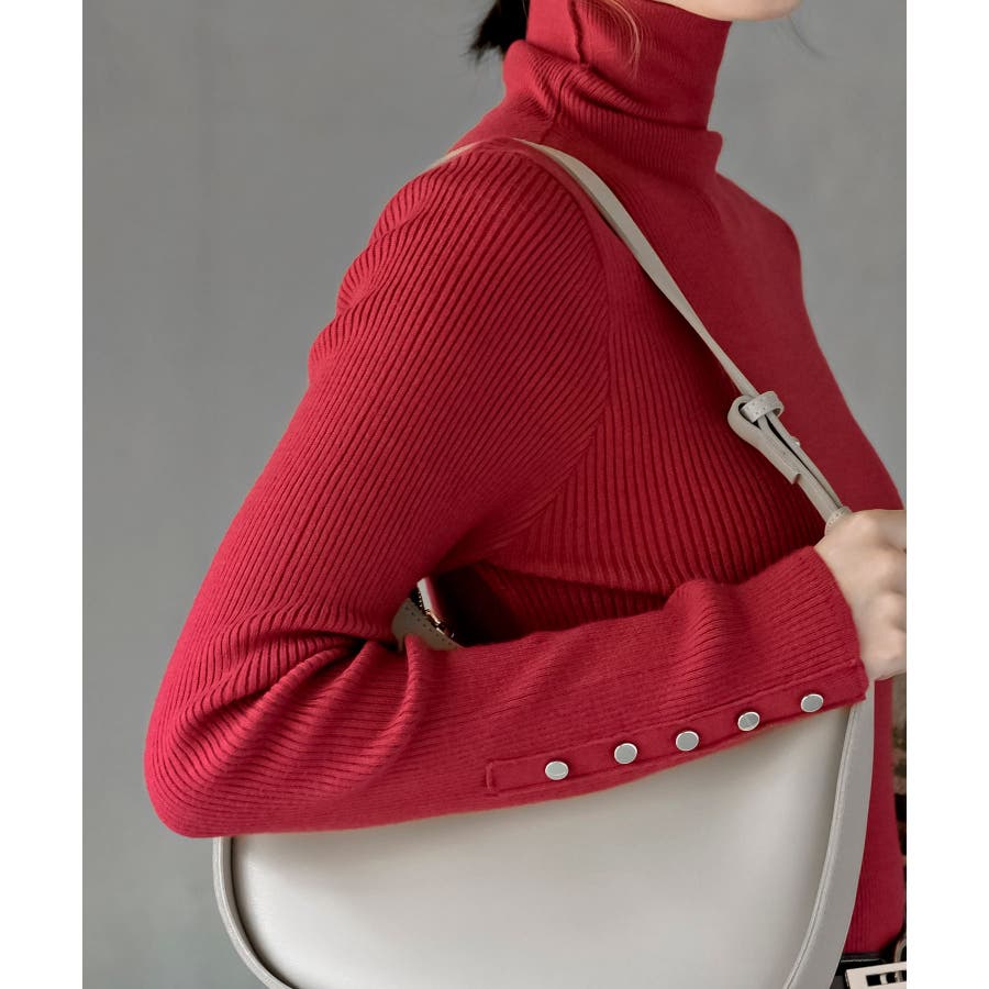 袖口ボタンタートルリブニットプルオーバー