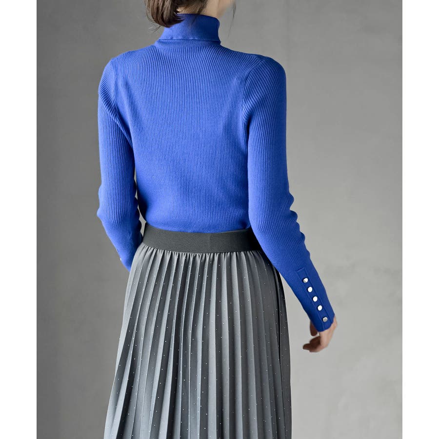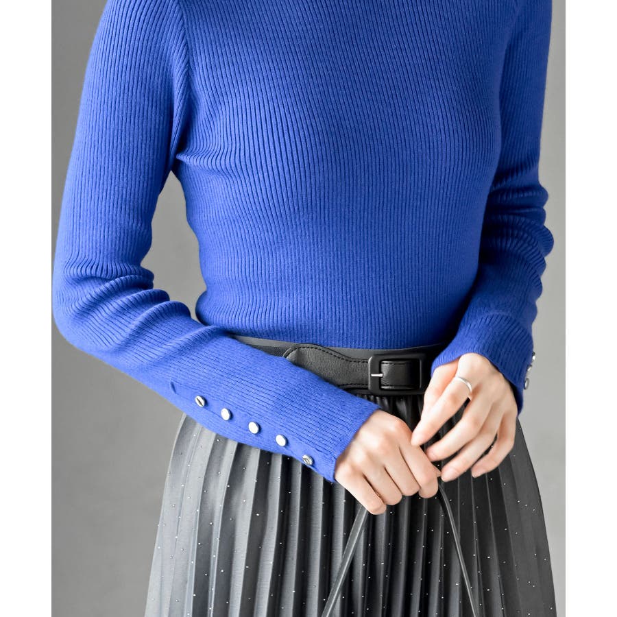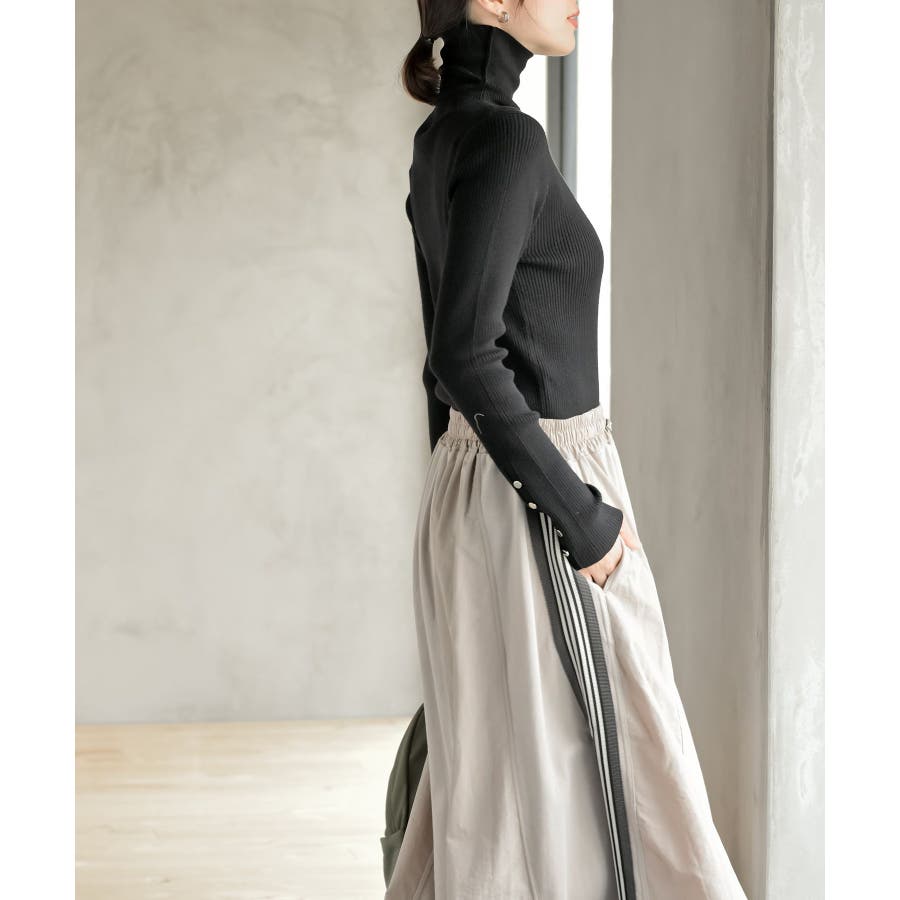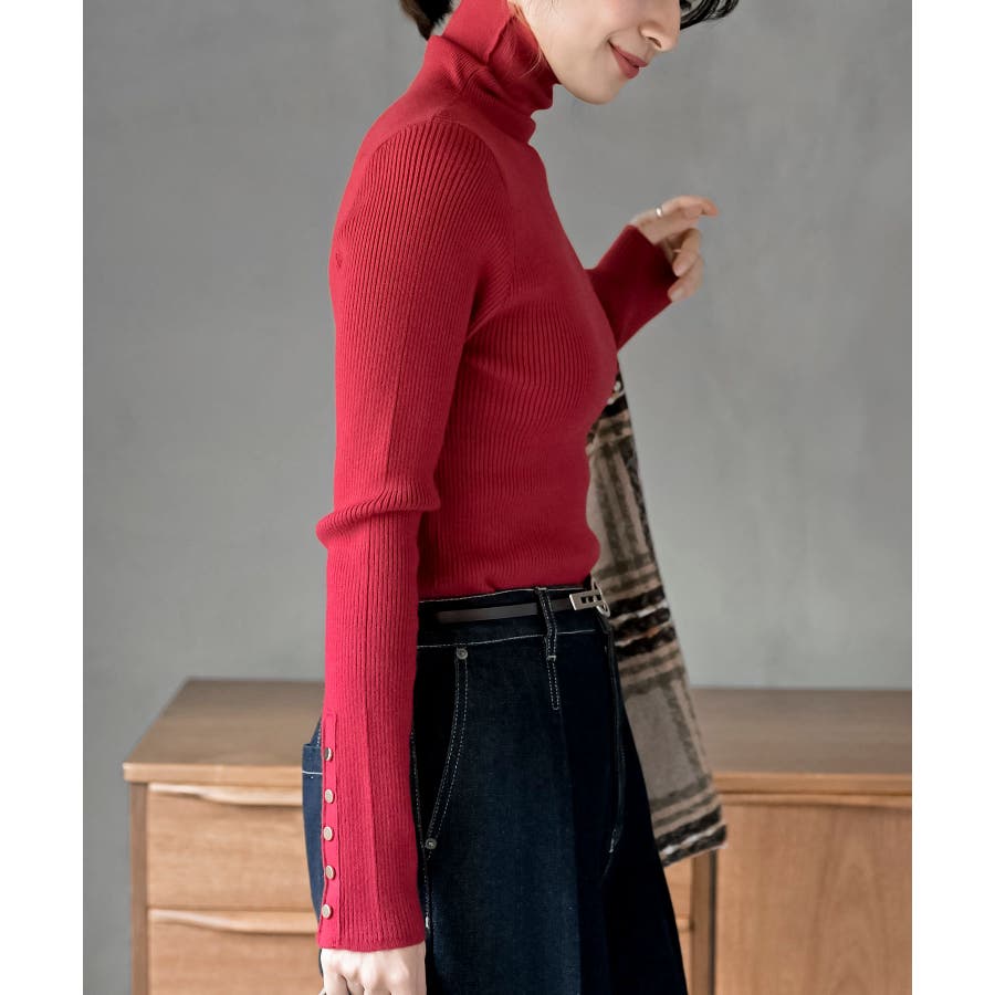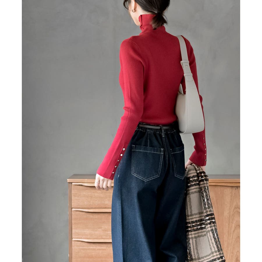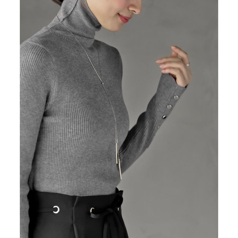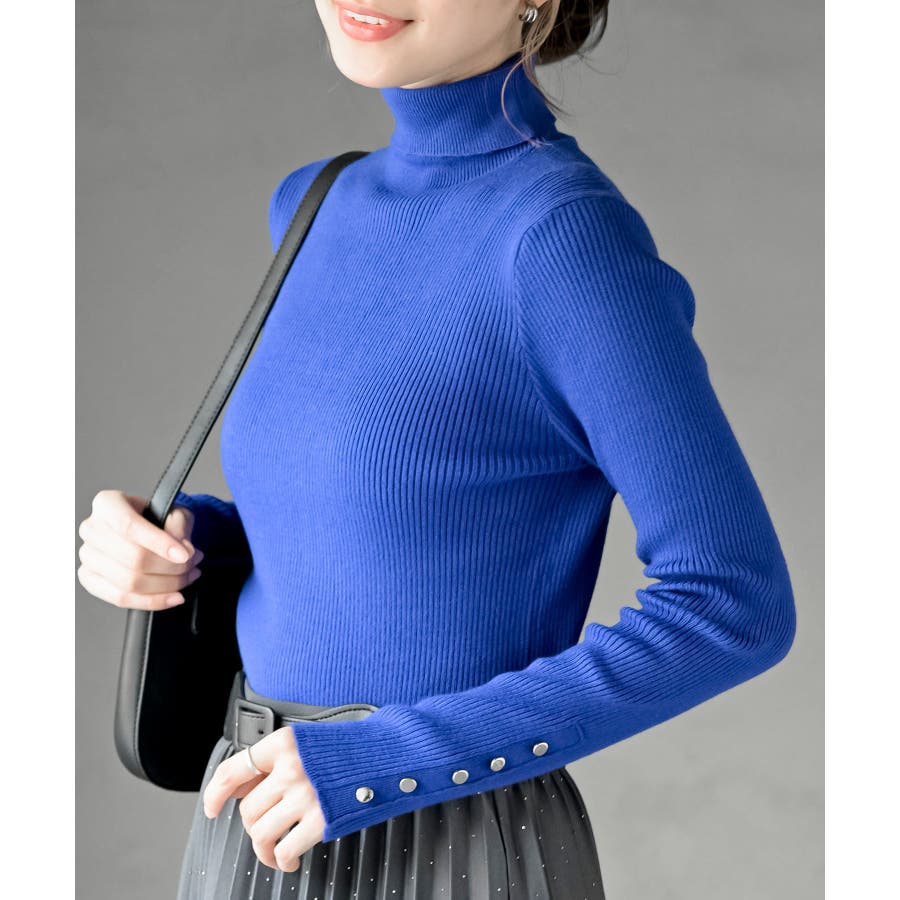 袖口ボタンタートルリブニットプルオーバー